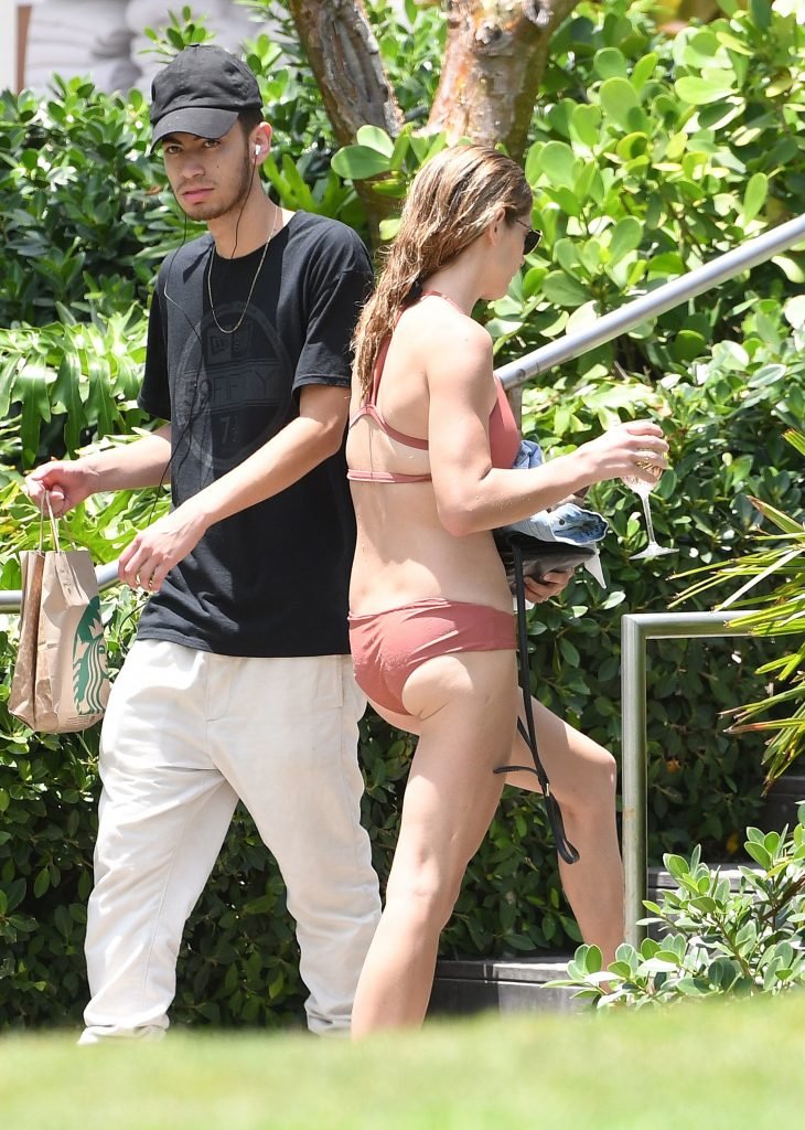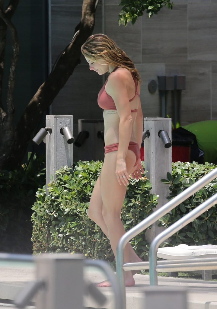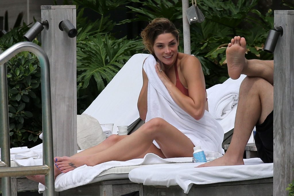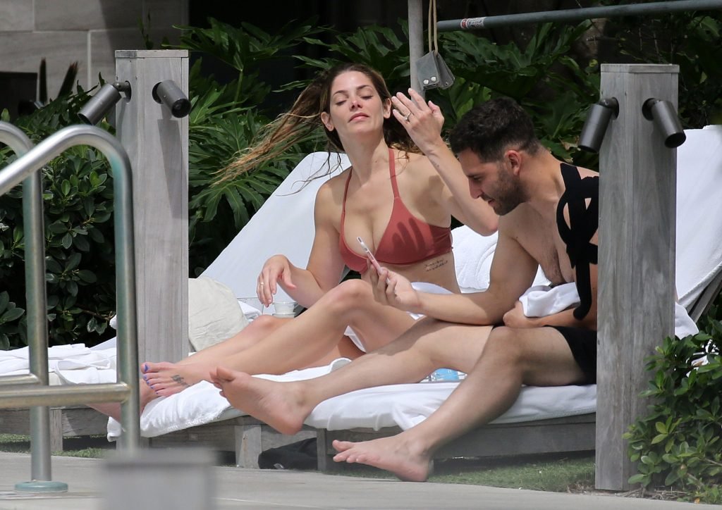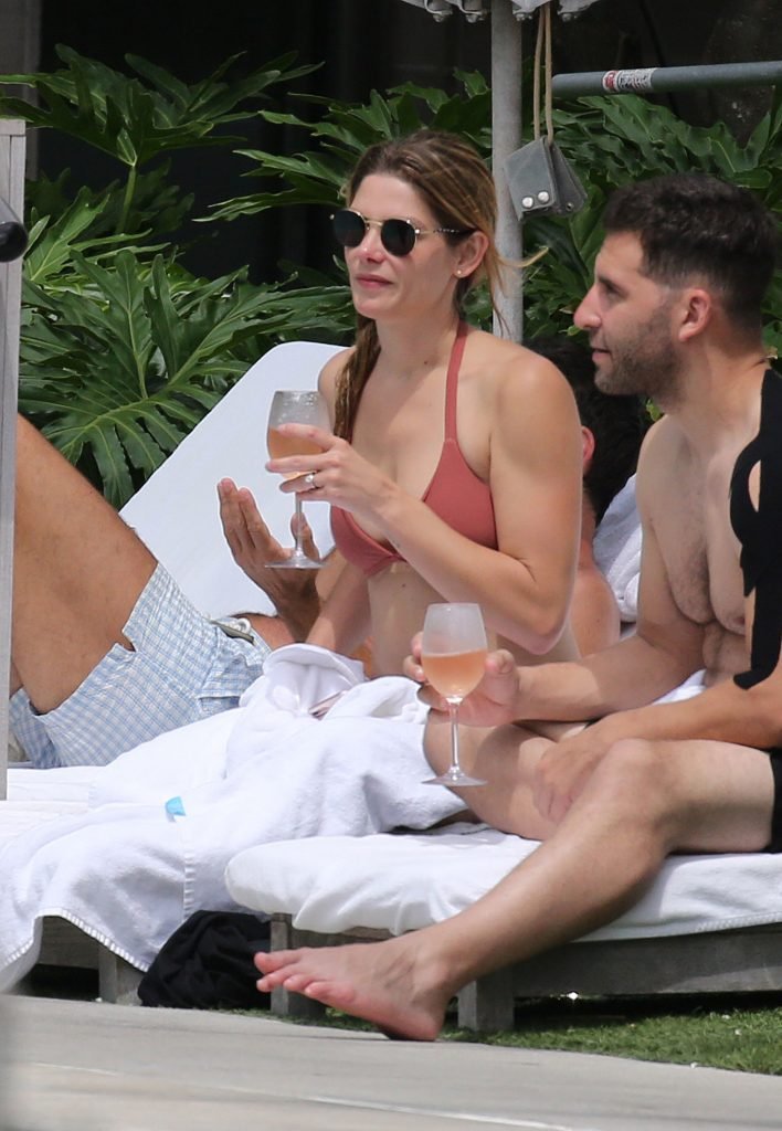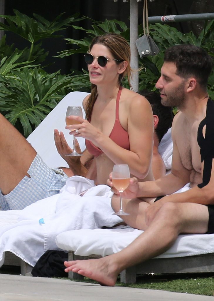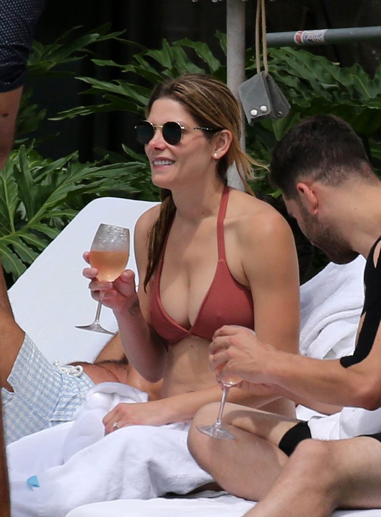 La star âgée de Twilight, Ashley Greene, boit du vin rosé dans un bikini rose sexy avant de se baigner dans la piscine à Miami Beach, le 10/05/2018. Ashley Greene est une actrice américaine (Rogue (2016- )) et mannequin. Âge : 31 ans (21 février 1987).