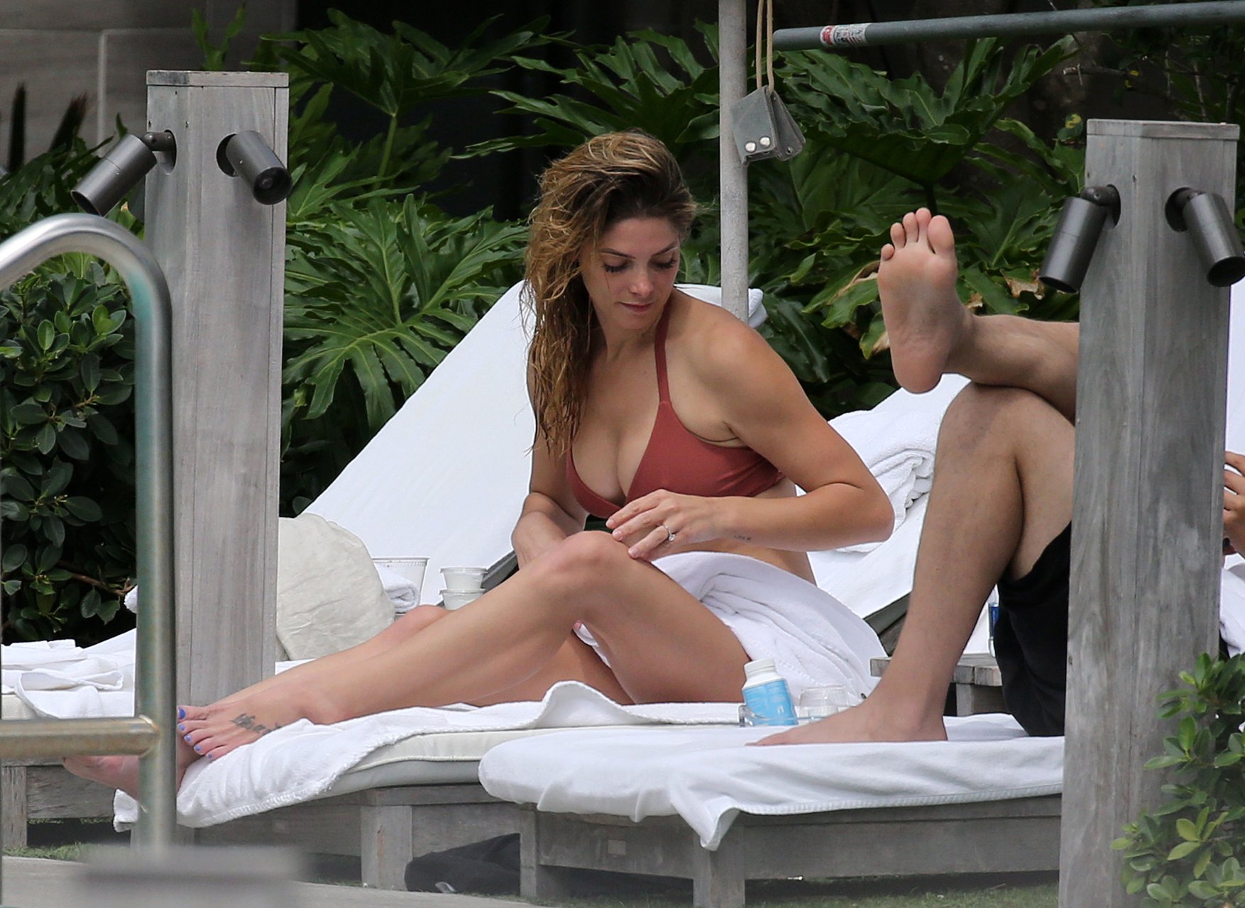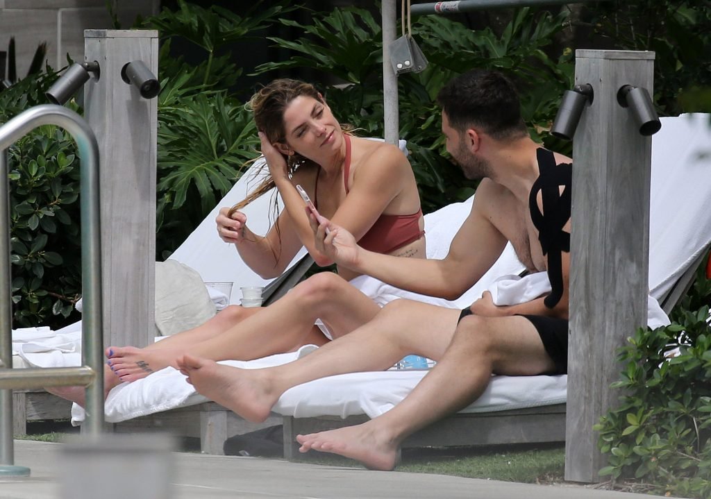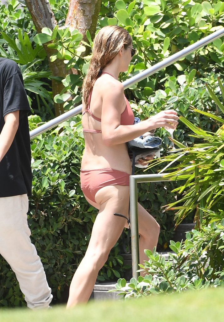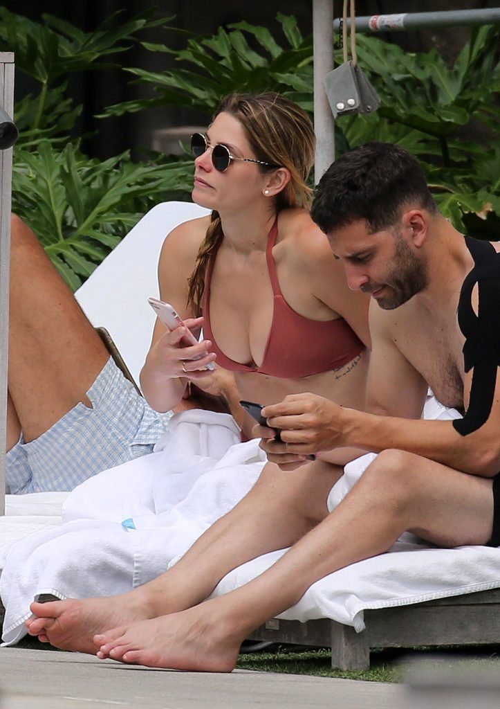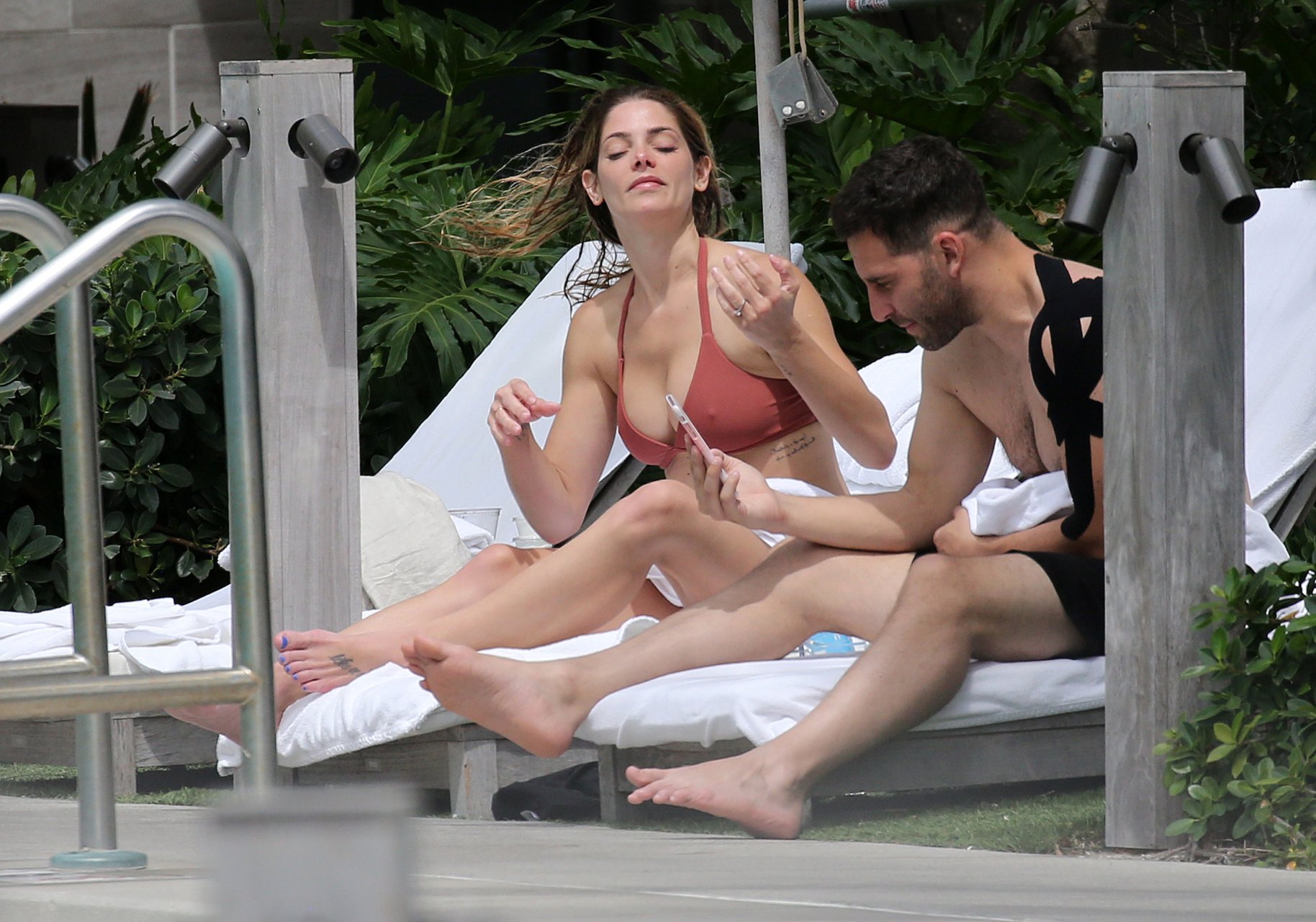 La star âgée de Twilight, Ashley Greene, boit du vin rosé dans un bikini rose sexy avant de se baigner dans la piscine à Miami Beach, le 10/05/2018. Ashley Greene est une actrice américaine (Rogue (2016- )) et mannequin. Âge : 31 ans (21 février 1987).