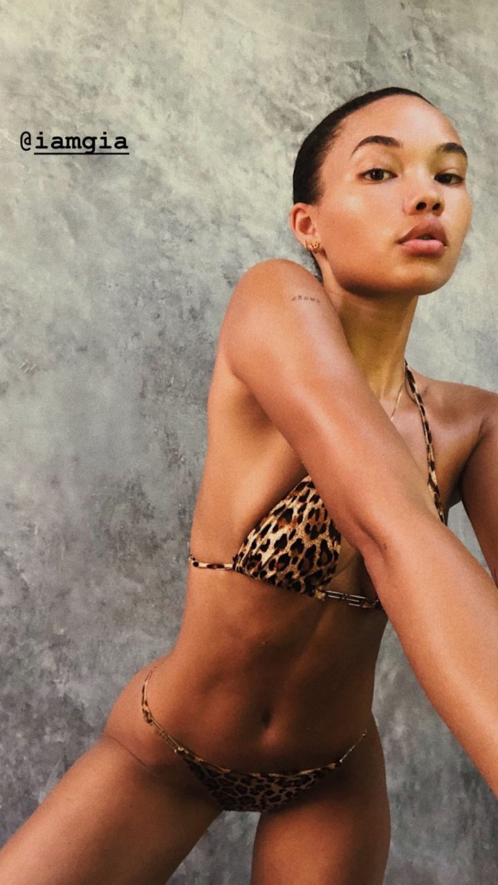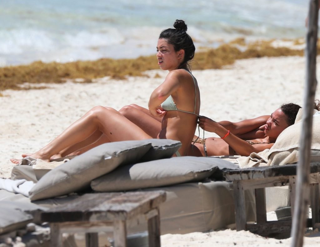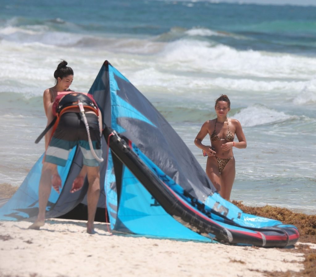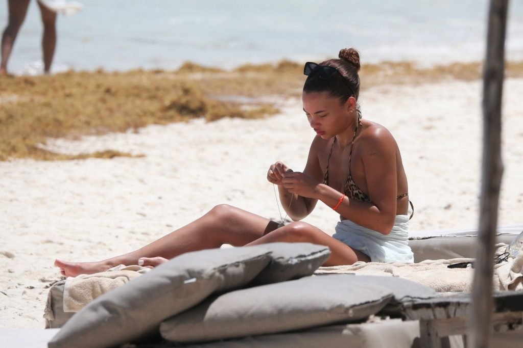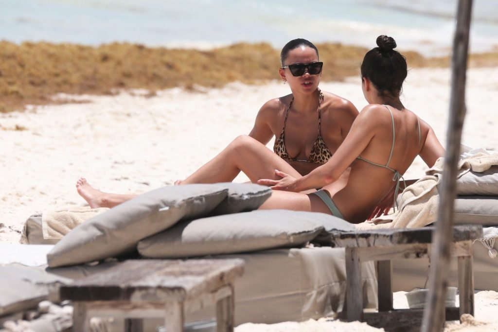 Ashley Moore fait sensation dans un tout petit bikini imprimé animal sur la plage de Tulum, au Mexique, le 22/04/2019. Le mannequin de 25 ans, qui a été brièvement lié au chanteur Justin Bieber, s’est prélassée au soleil avant de rejoindre l’eau avec une amie pour prendre des selfies sous le soleil tropical.