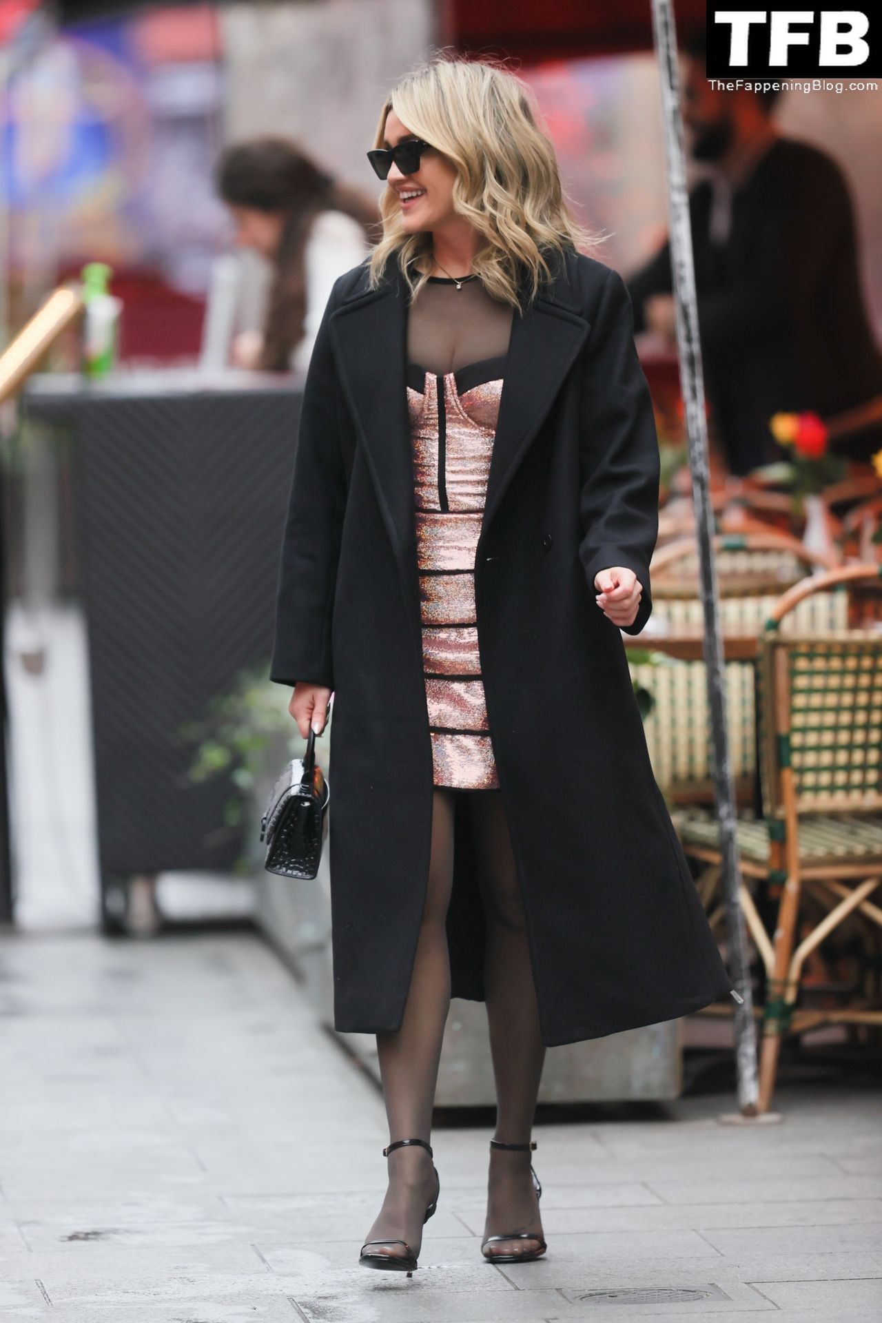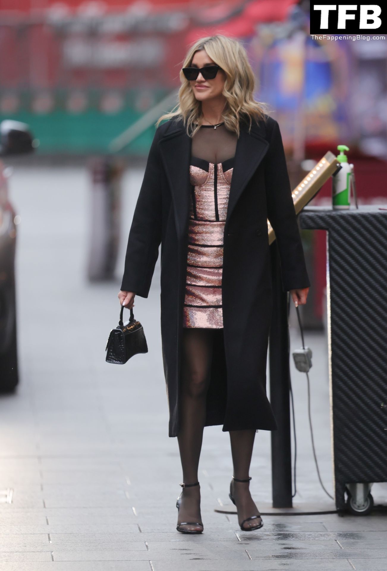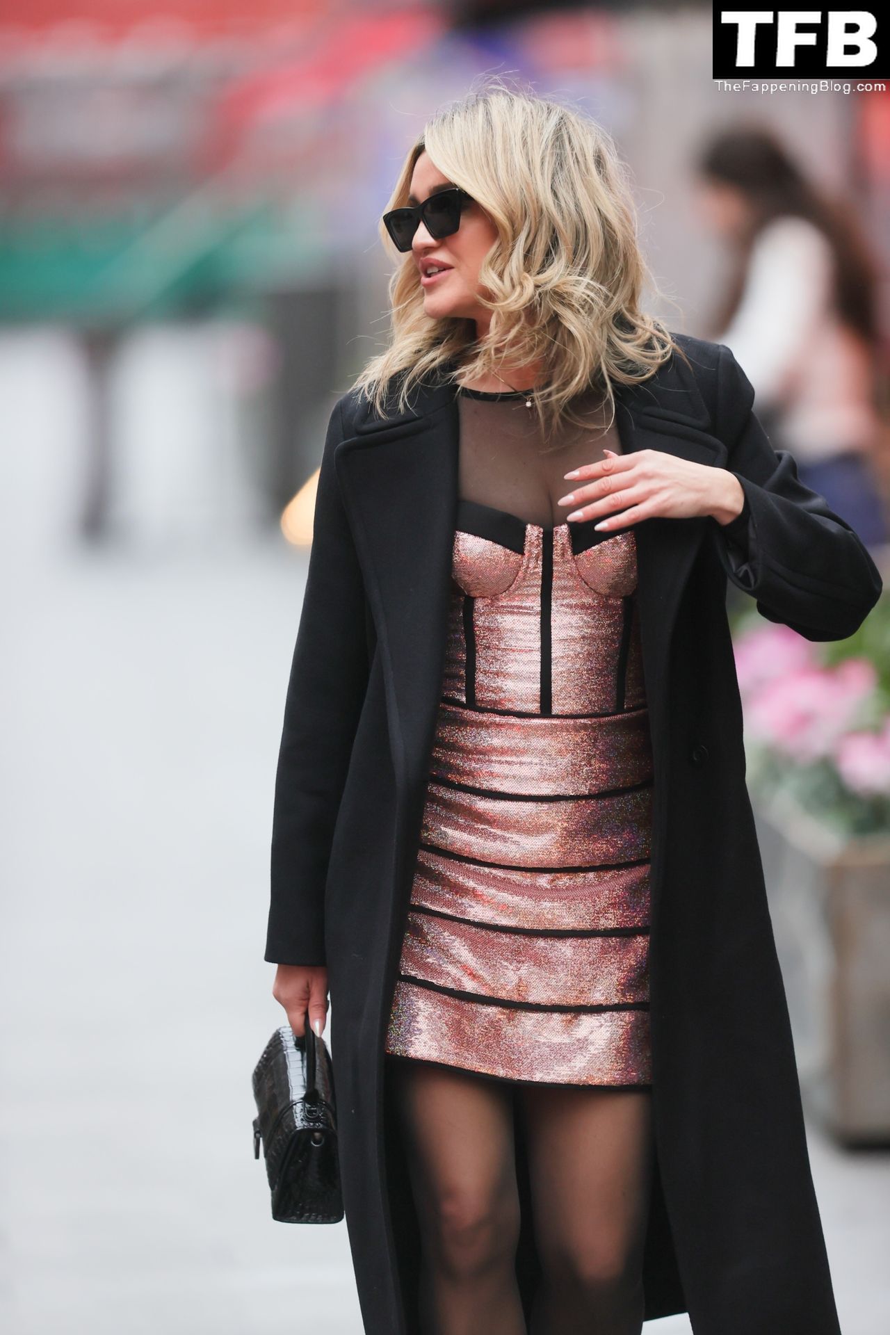 Pussycat Doll Ashley Roberts montre son décolleté dans une robe métallique sexy style corset à Heart Radio alors qu’elle montre à son ex Giovanni Pernice ce qu’il manque – Londres, 16/12/2021.