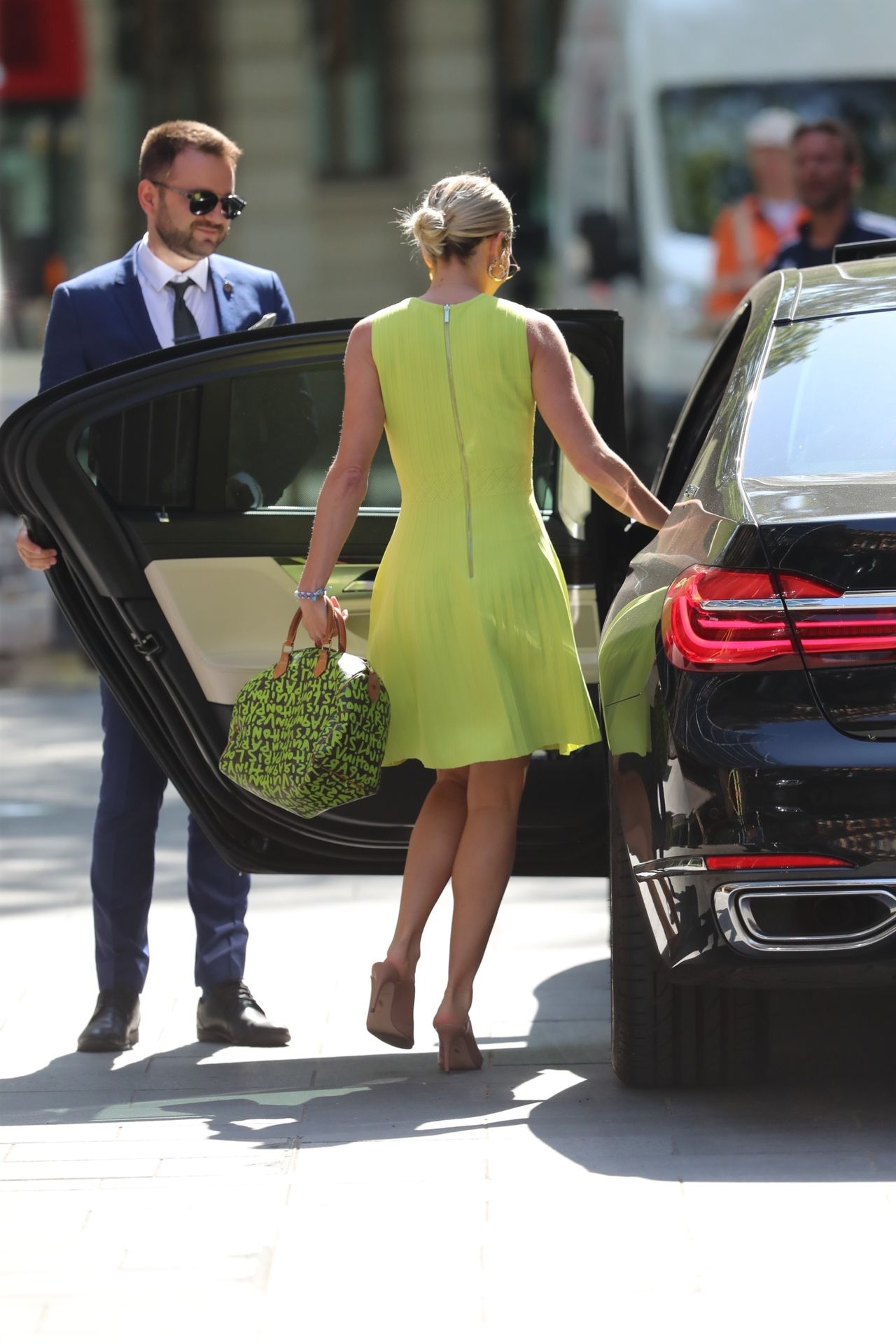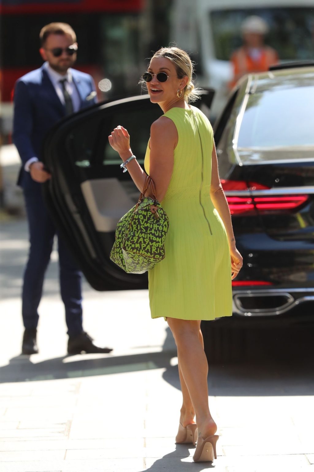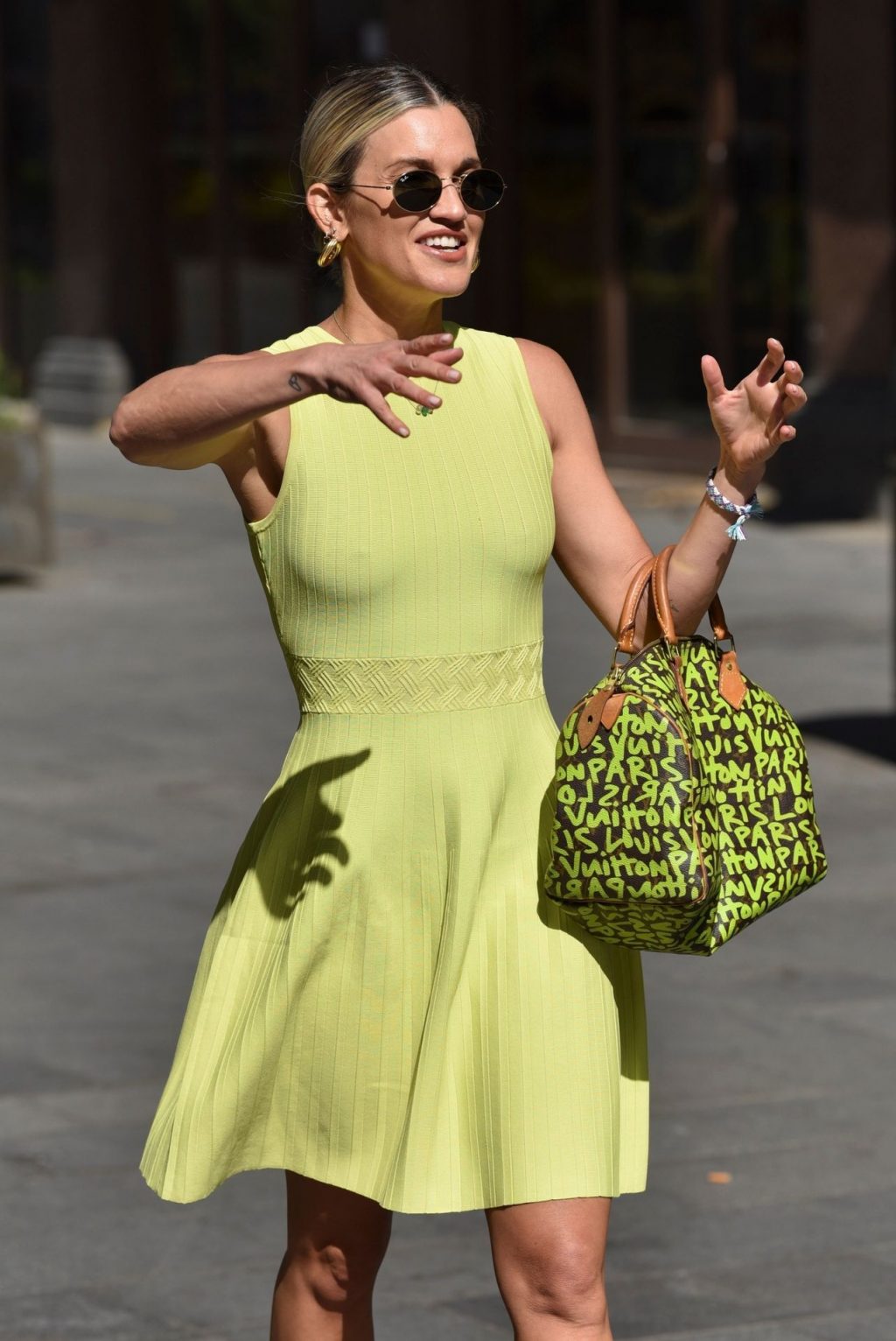 La chanteuse des “Pussycat Dolls” Ashley Roberts montre ses jambes en sortant de Heart Radio dans une robe Ted Baker à Londres, le 27/05/2020.
