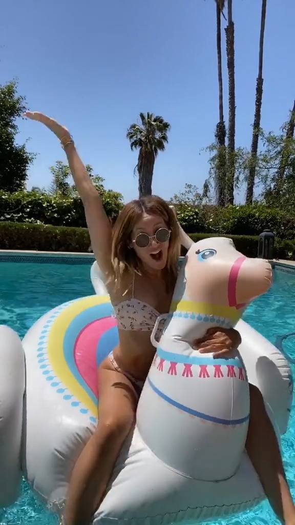 L’actrice/chanteuse/productrice américaine Ashley Tisdale affiche son corps sexy en bikini au bord de la piscine dans une vidéo TikTok chaude, 02/05/2020.