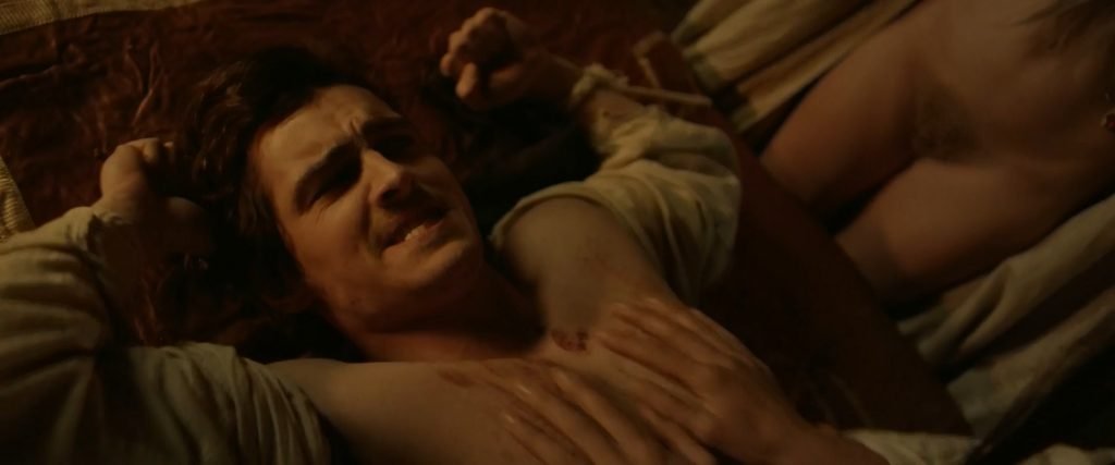 Nous voyons Alison Brie en sous-vêtements en train de se frotter contre Dave Franco, Kate et Aubrey s’embrassant, Jemima Kirke et Aubrey dévoilant leurs seins et fesses lors d’un feu de camp de sorcières avec Vanessa Villa, Rossella Ambrosini, Rossana Bena, et une Kate Micucci totalement nue ne portant rien d’autre qu’un merkin. The Little Hours vous donnera une grosse bosse !