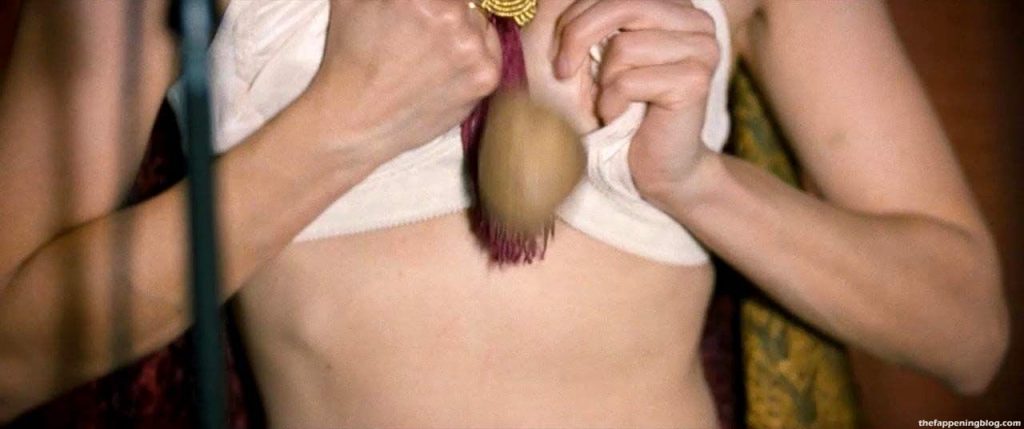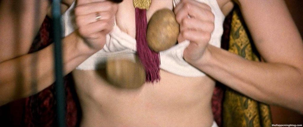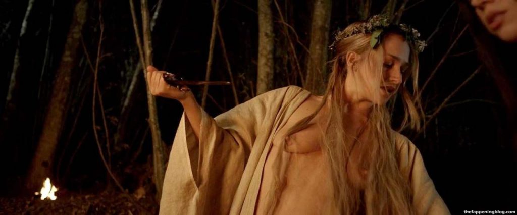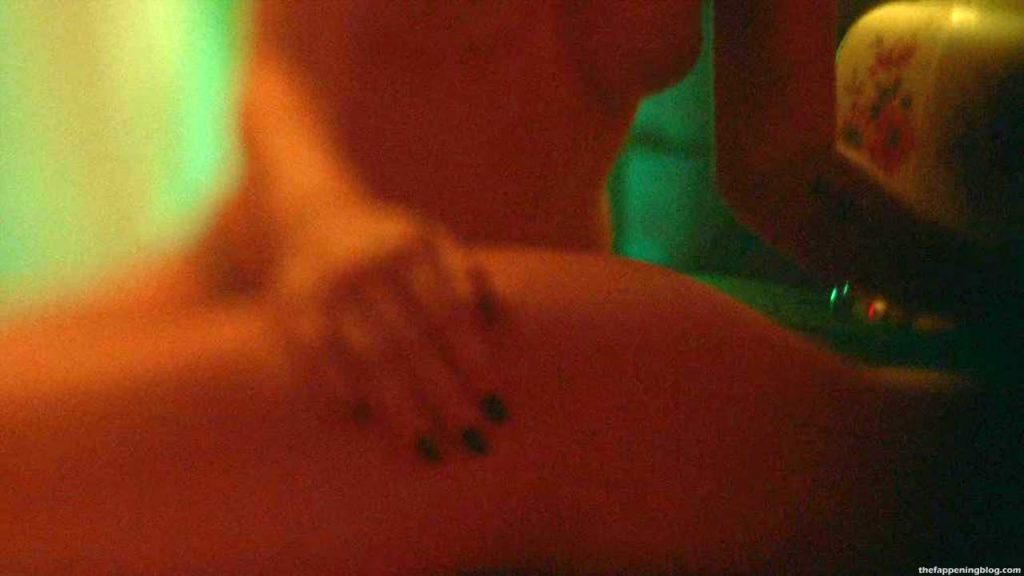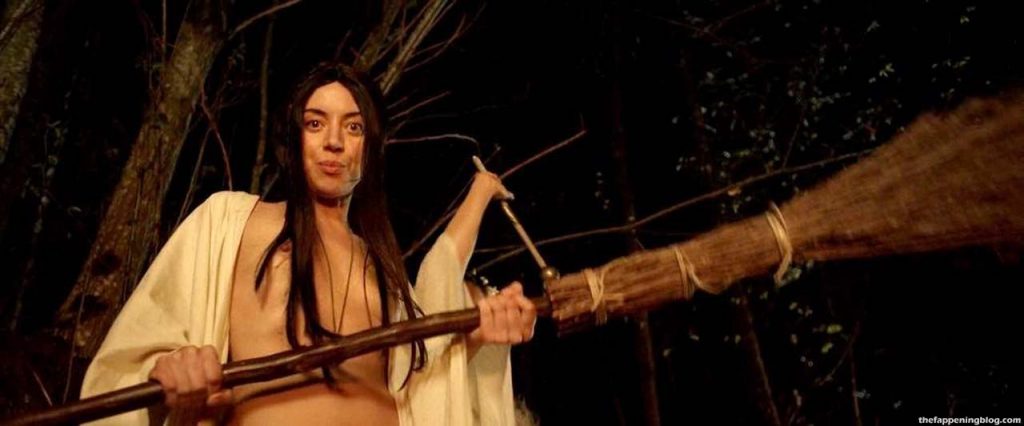 Check out one more scene of Aubrey Plaza’s naked boobs, where she is seen with Jemima Kirke and Kate Micucci. These three actresses are topless, playing witches around the tied man in the woods! Her nipple is erected; assume it was cold outside while they were filming this sexy scene!