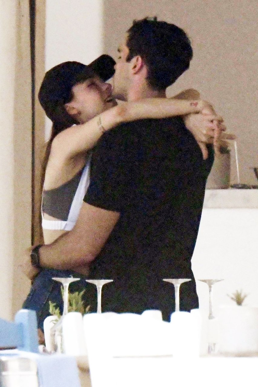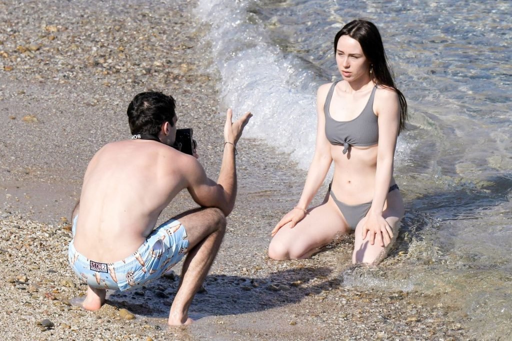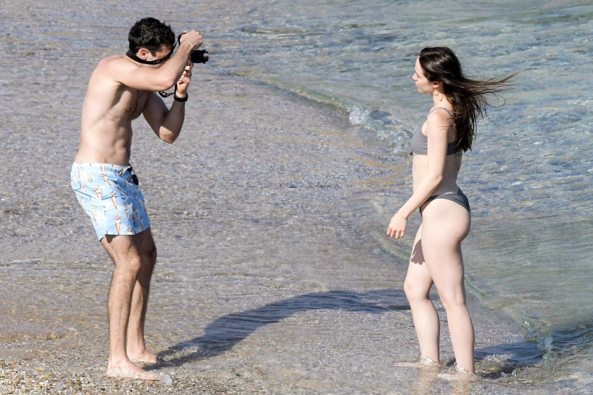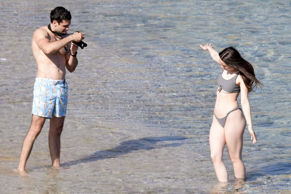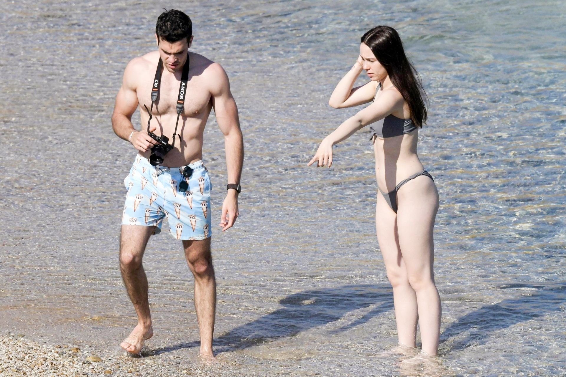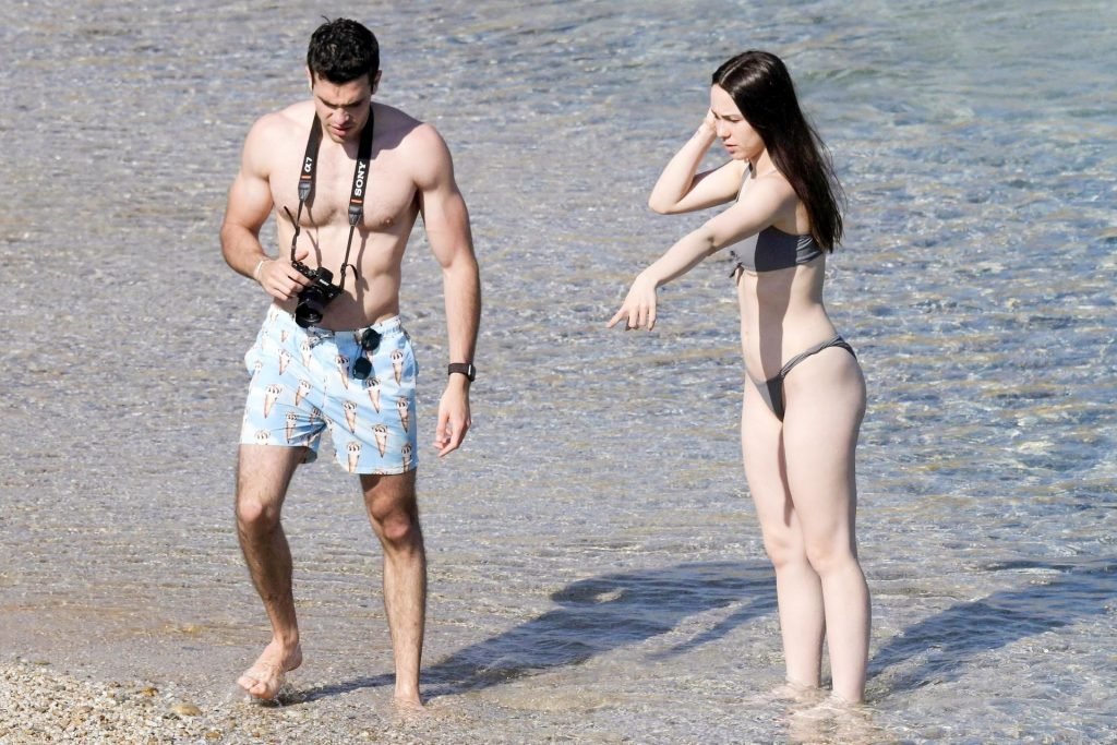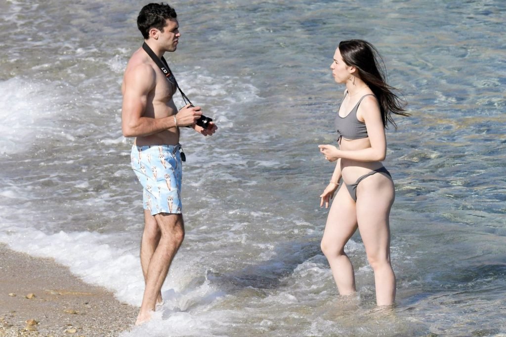 Aurora avait fière allure dans son bikini gris en posant pour la caméra de Goffredo. Le couple avait l’air heureux et s’est tendrement embrassé au bar Liasti.