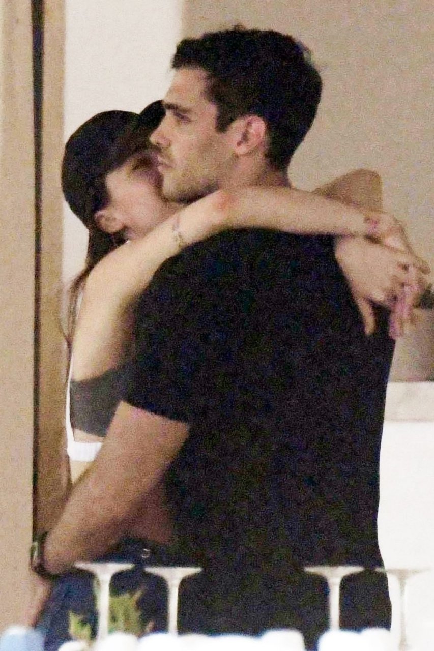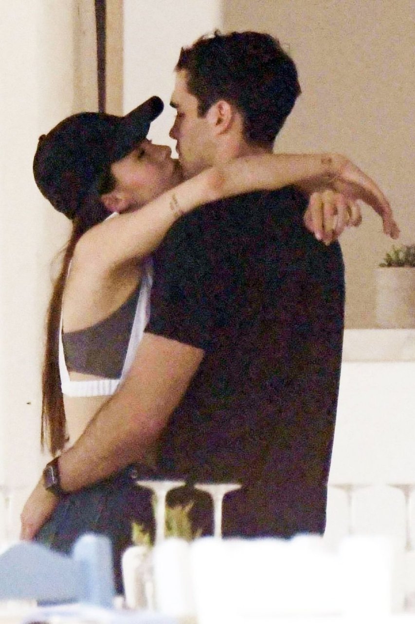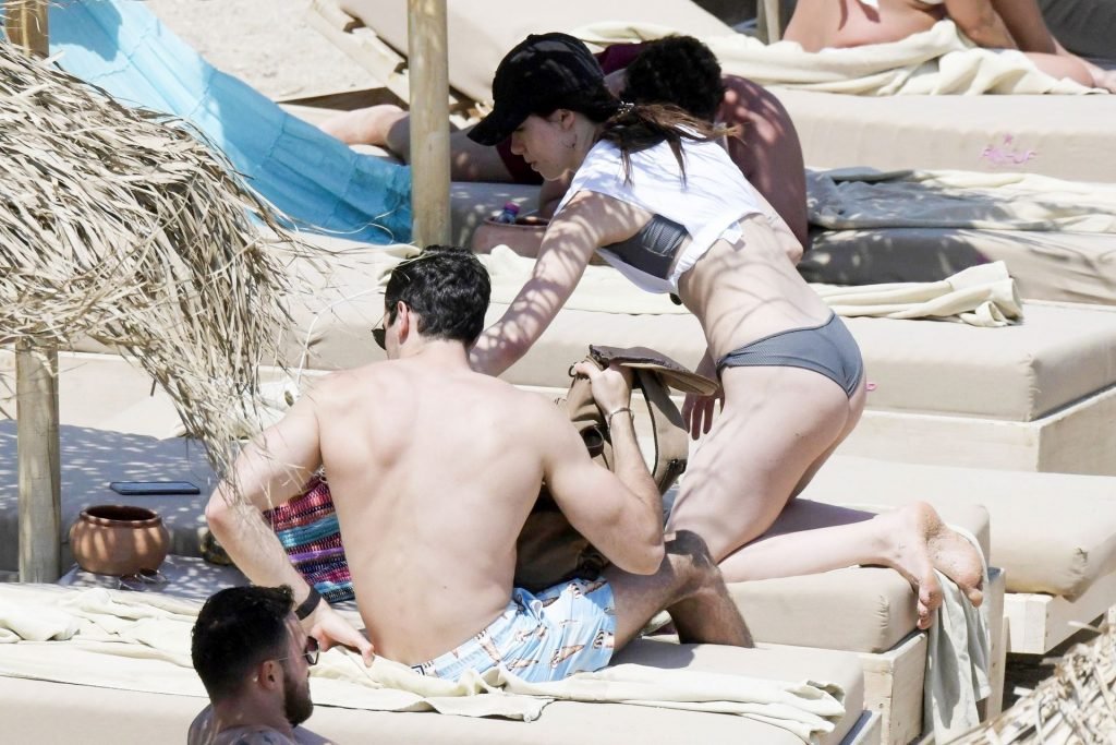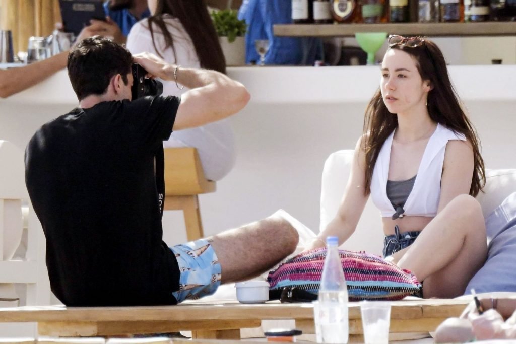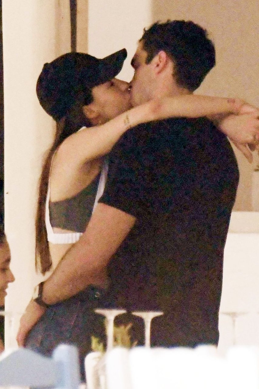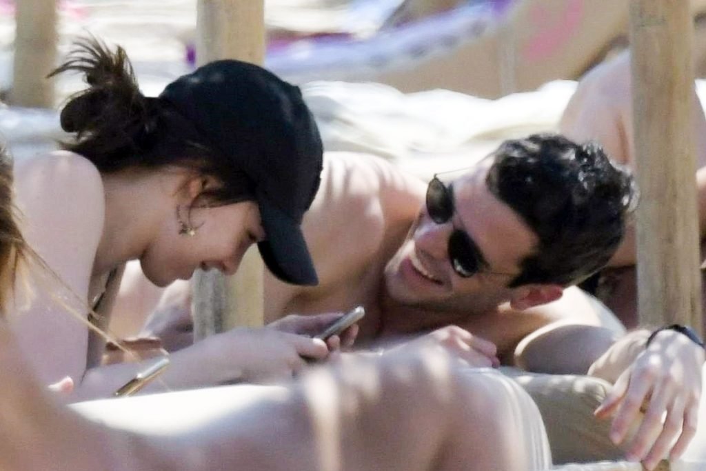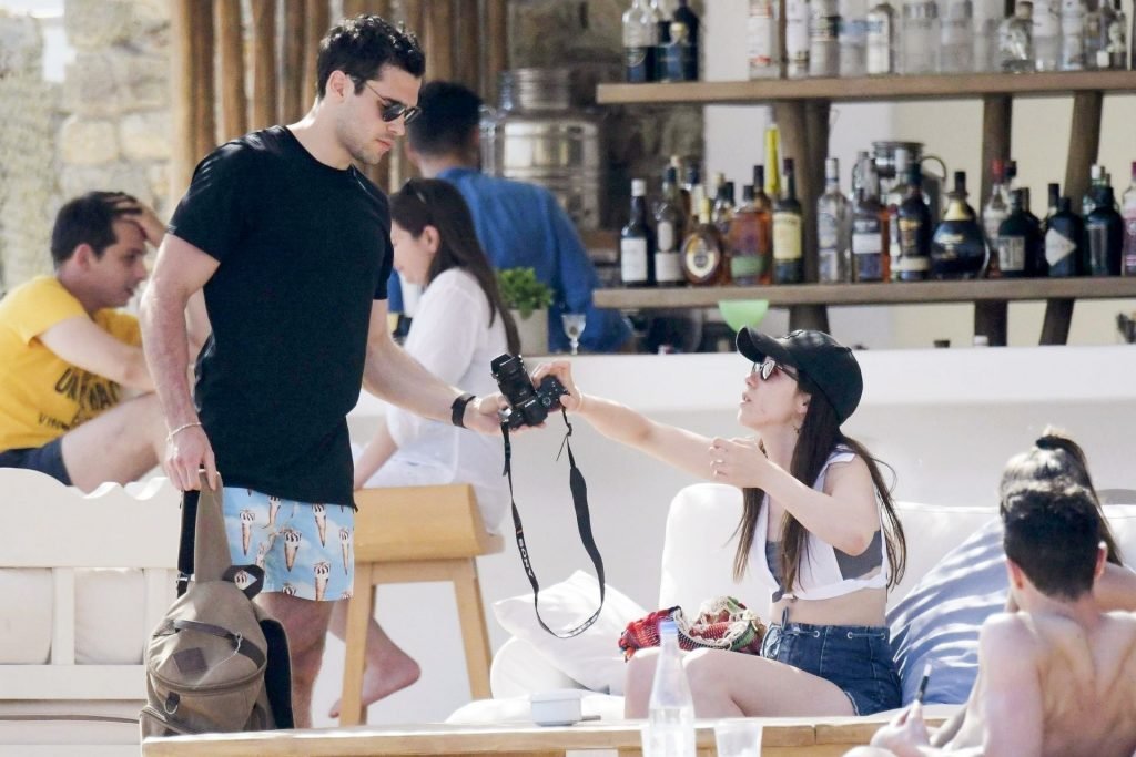 Aurora avait fière allure dans son bikini gris en posant pour la caméra de Goffredo. Le couple avait l’air heureux et s’est tendrement embrassé au bar Liasti.