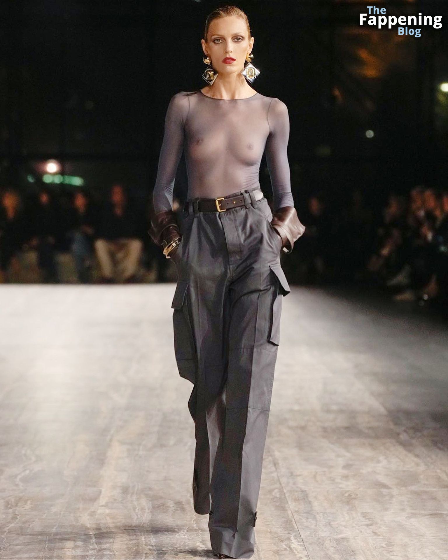 Attendez, parlons d’Anja Rubik, connue pour sa beauté impeccable et sa sexualité indéniable. Elle a littéralement surpris tout le monde avec son choix audacieux de tenue lors de l’événement Saint Laurent S/S 24.