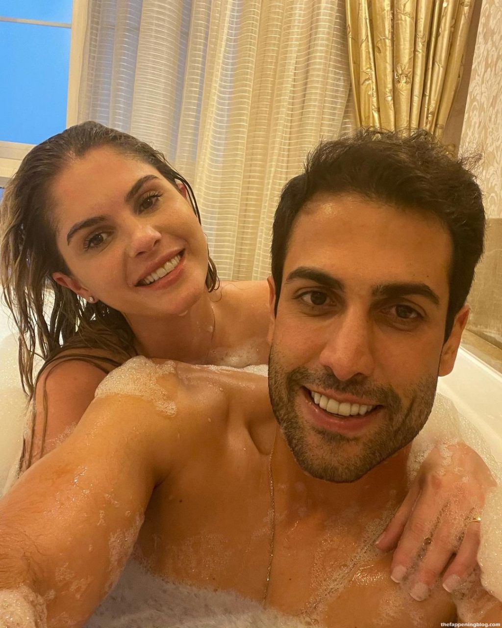 Non seulement elle a une grosse bite à disposition, mais elle partage son bain avec un mec canon. Elle vit son rêve.
