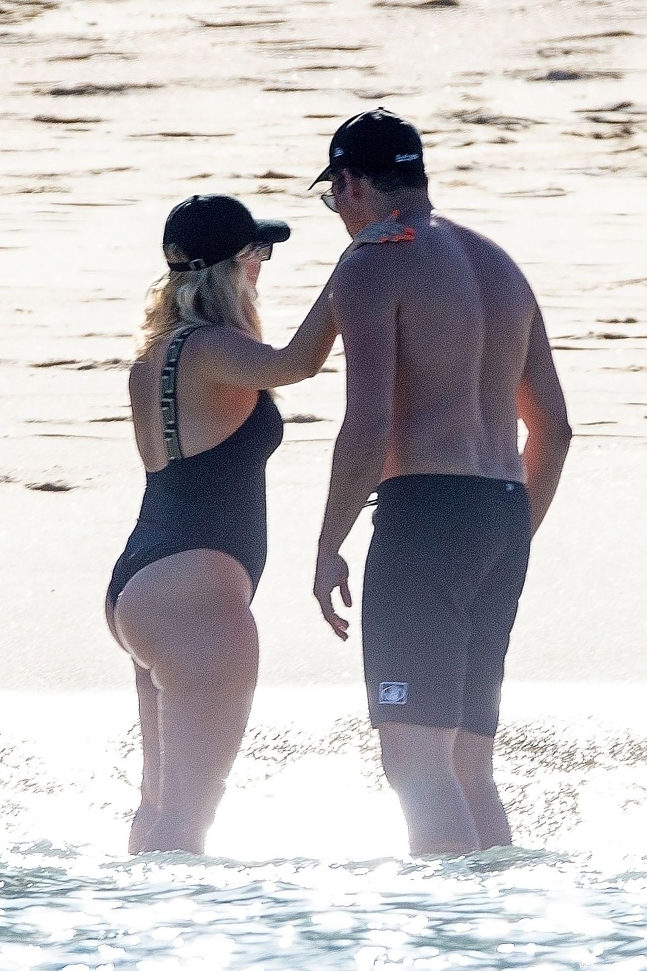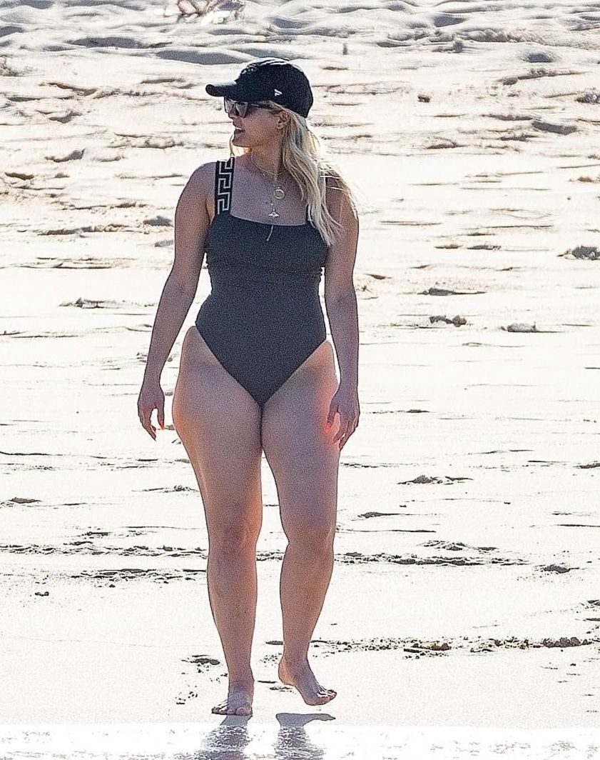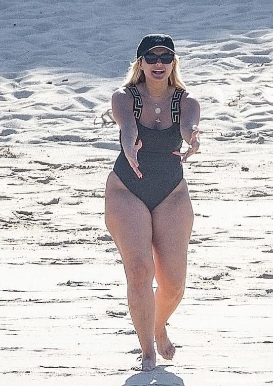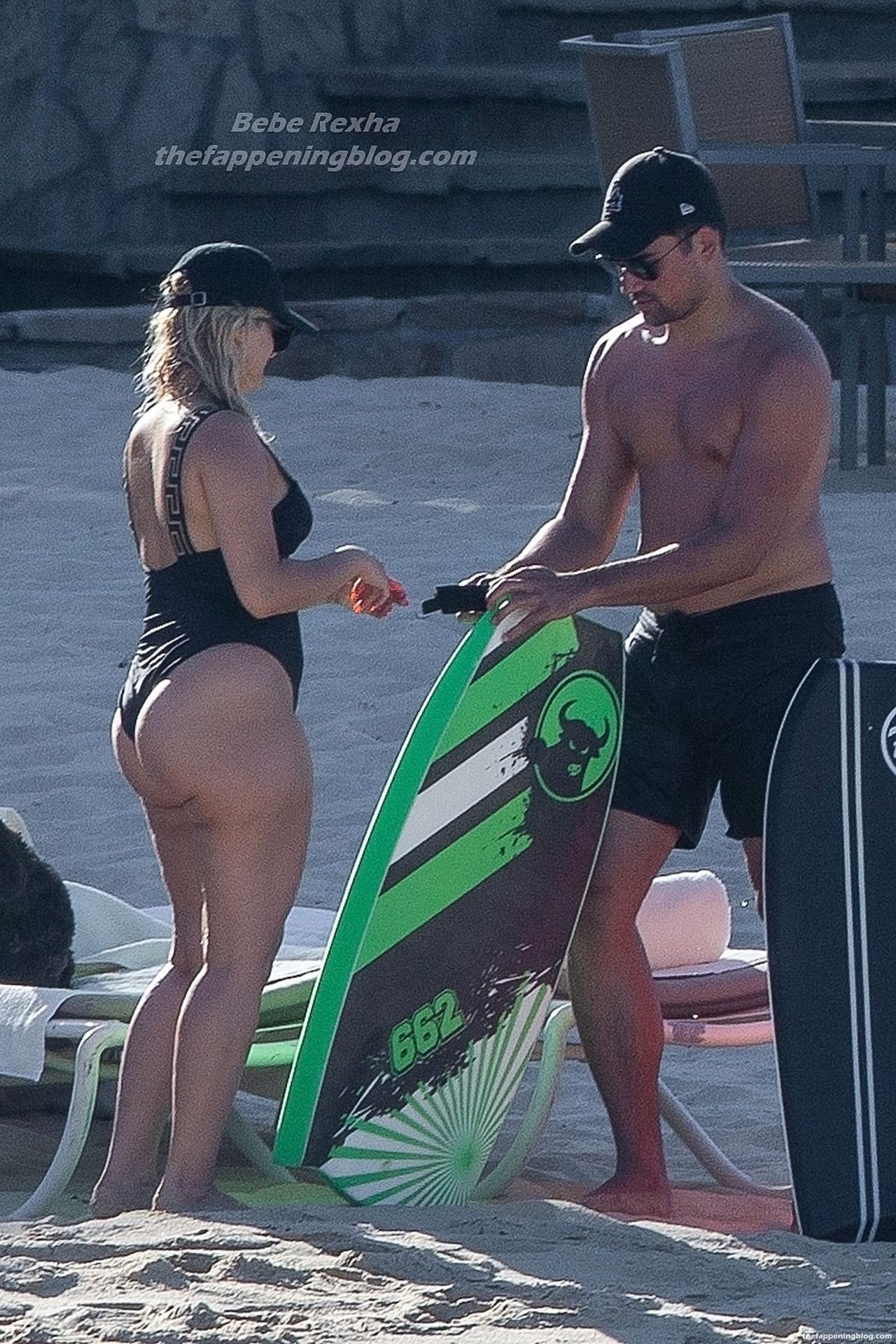 Busty Bebe Rexha is smiling while enjoying a beach day in Cabo with her boyfriend (November 2020). The singer looks fantastic in a black one-piece swimsuit, as she goes for a swim. Bebe has some fun with a bodyboard who is fucking this big booty and enjoying the sun-soaked vacation.