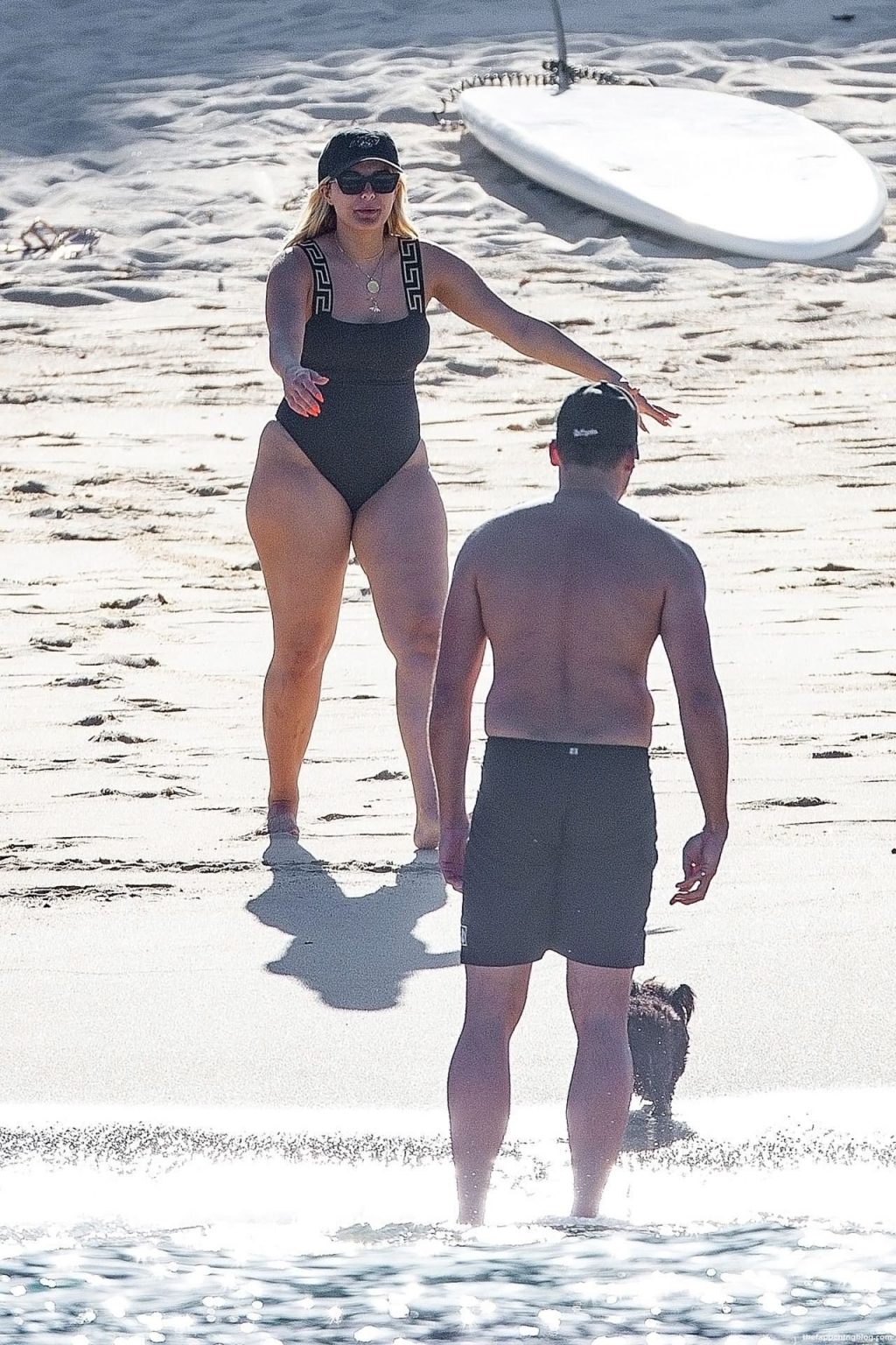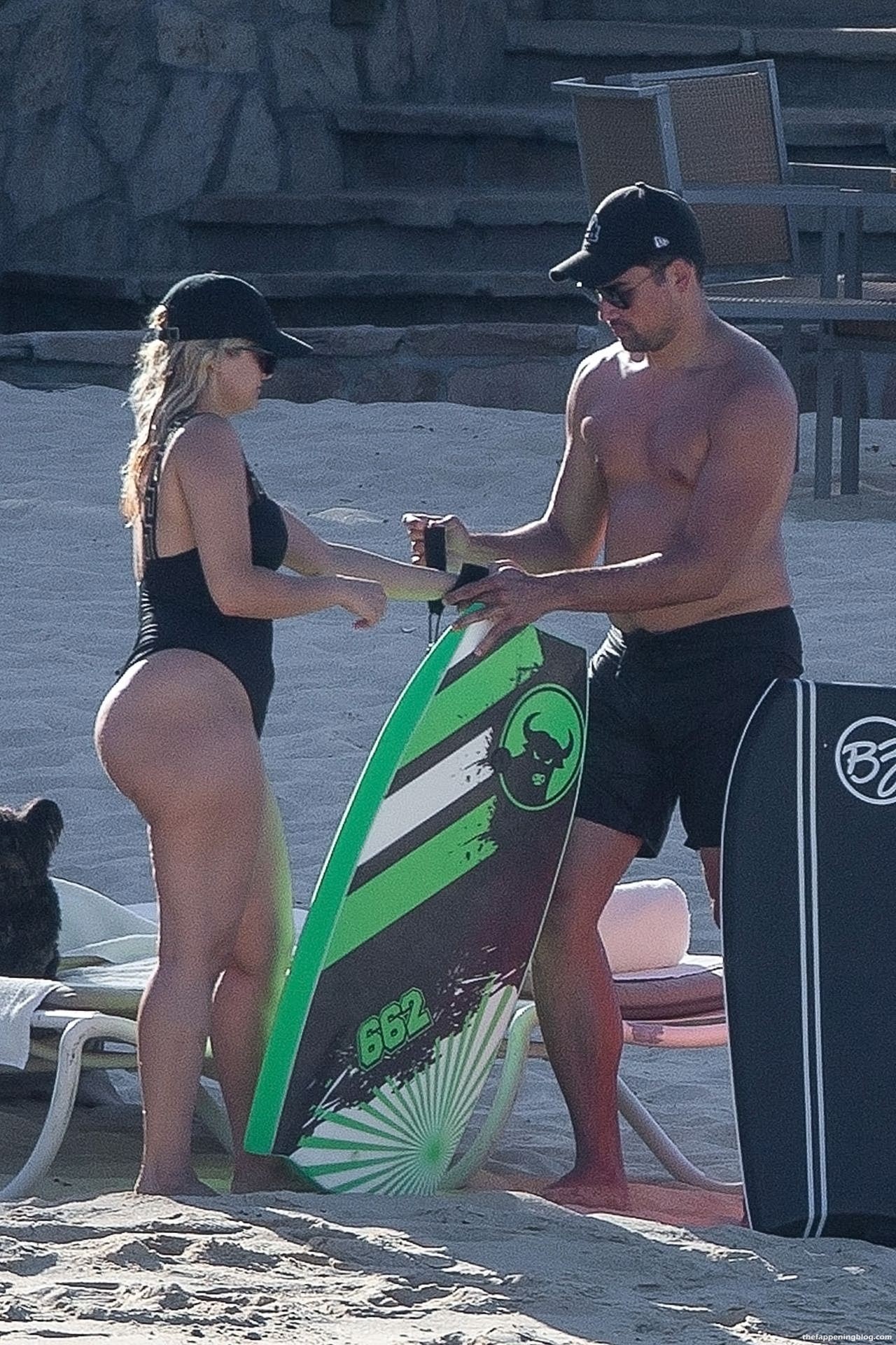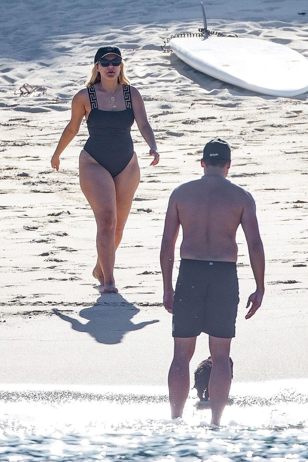 Busty Bebe Rexha is smiling while enjoying a beach day in Cabo with her boyfriend (November 2020). The singer looks fantastic in a black one-piece swimsuit, as she goes for a swim. Bebe has some fun with a bodyboard who is fucking this big booty and enjoying the sun-soaked vacation.