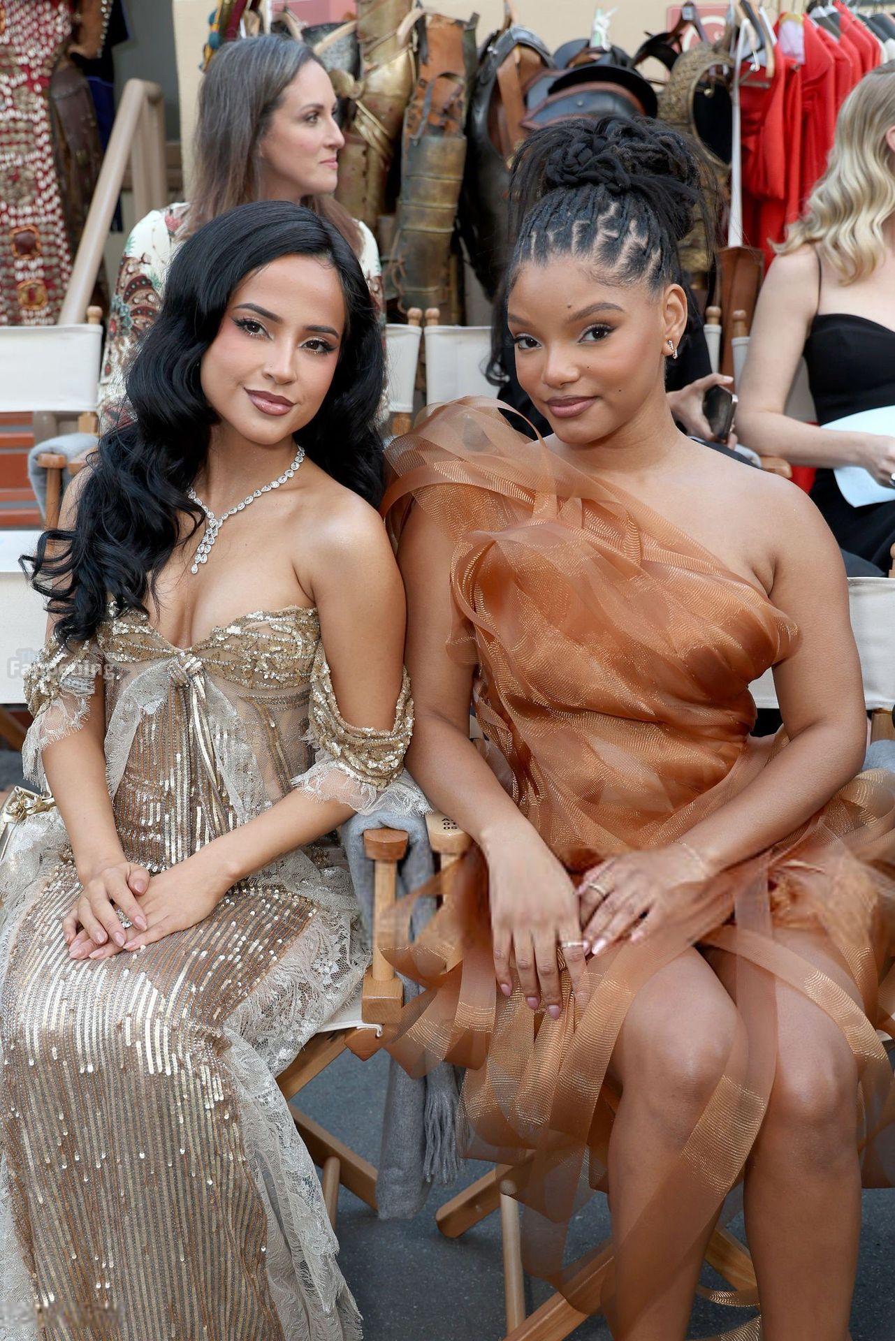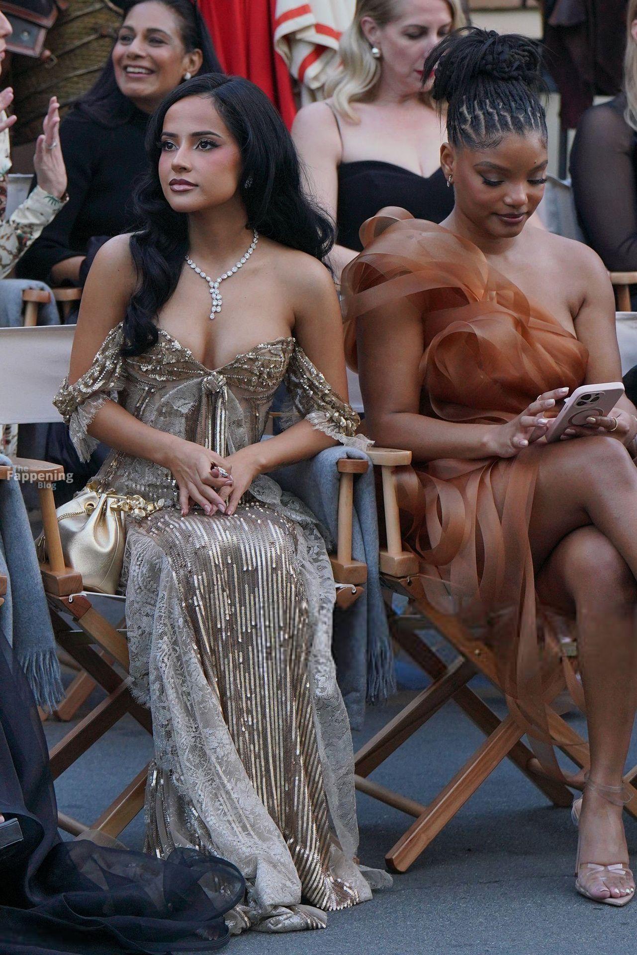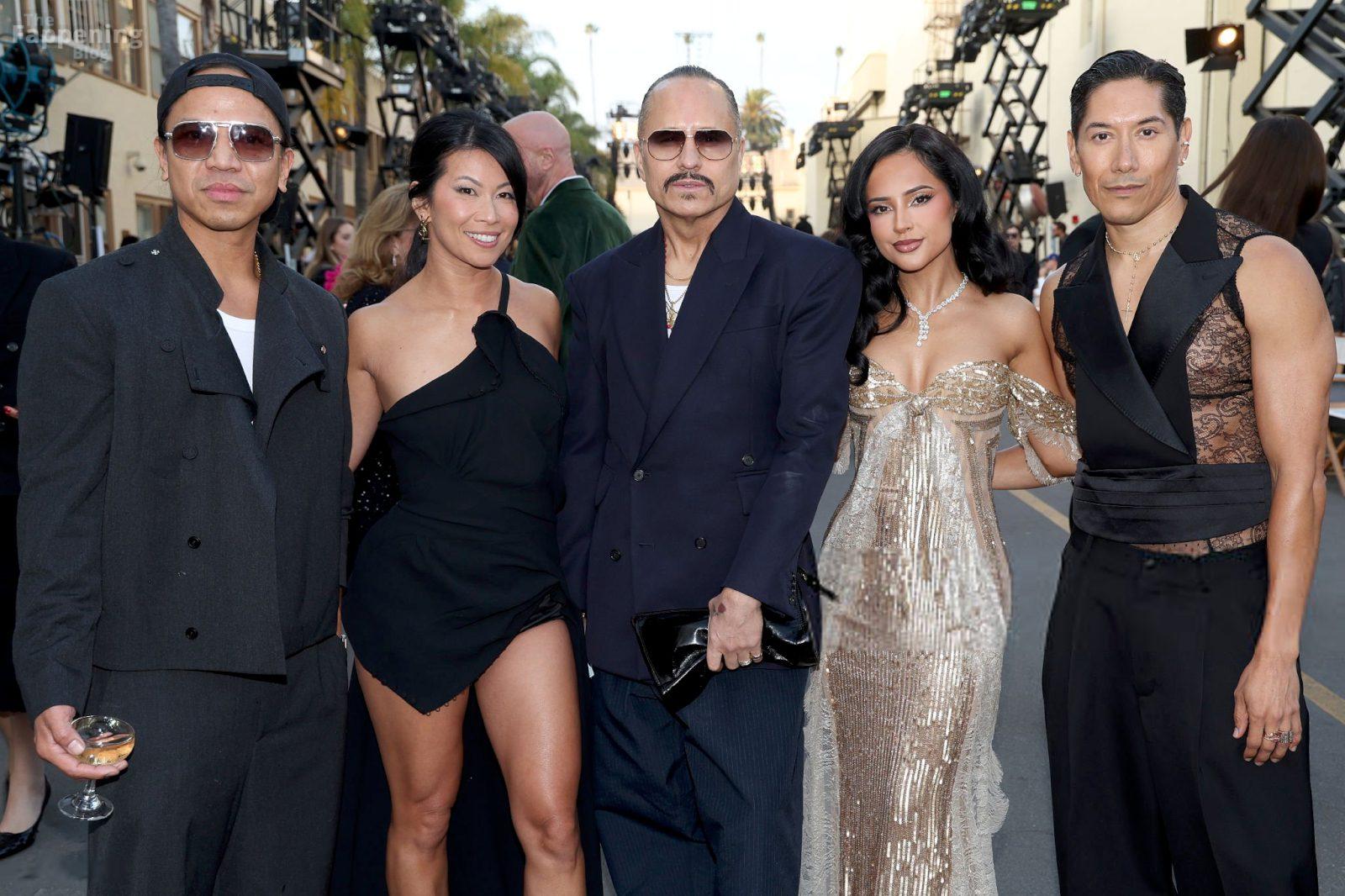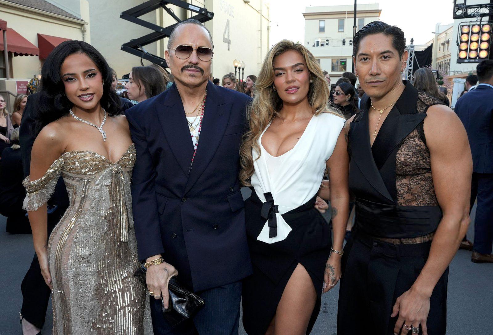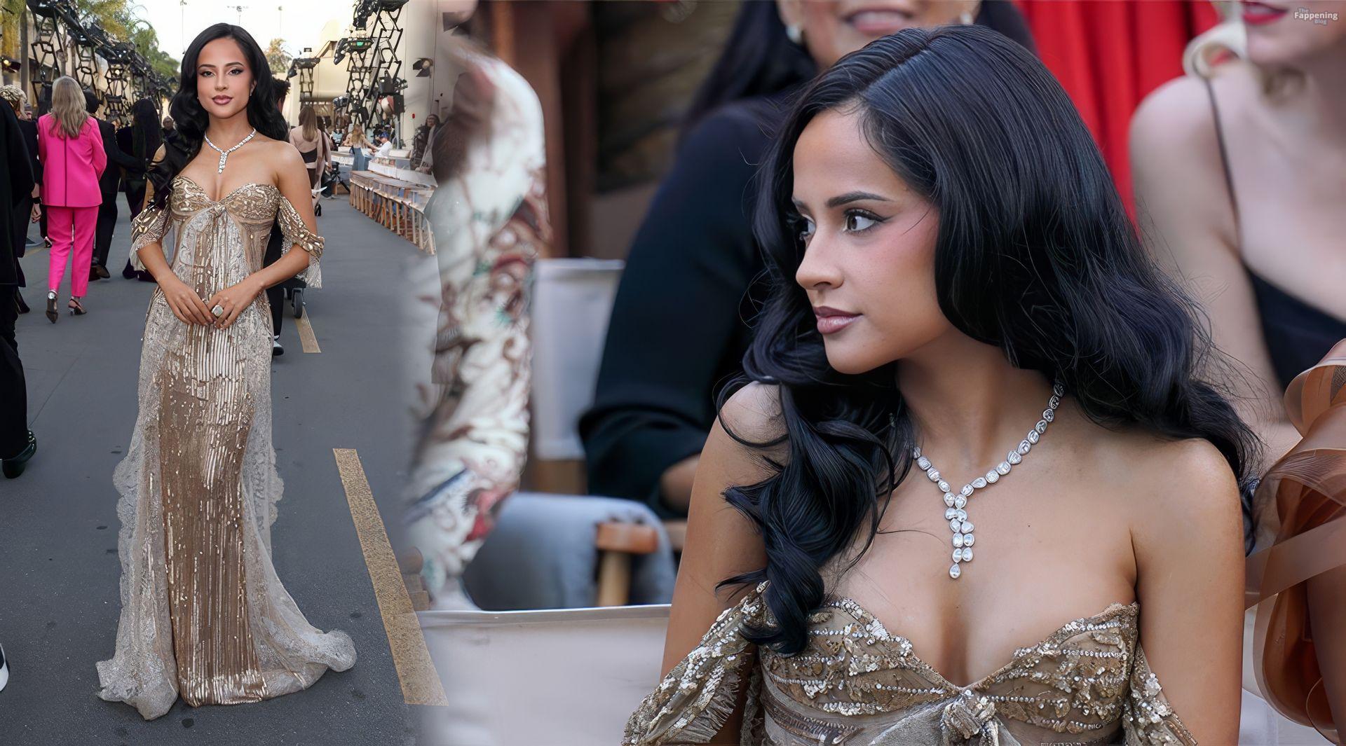 La chanteuse Becky G montre son décolleté en portant une robe en sequins dorés à Vogue World : Hollywood 2025.