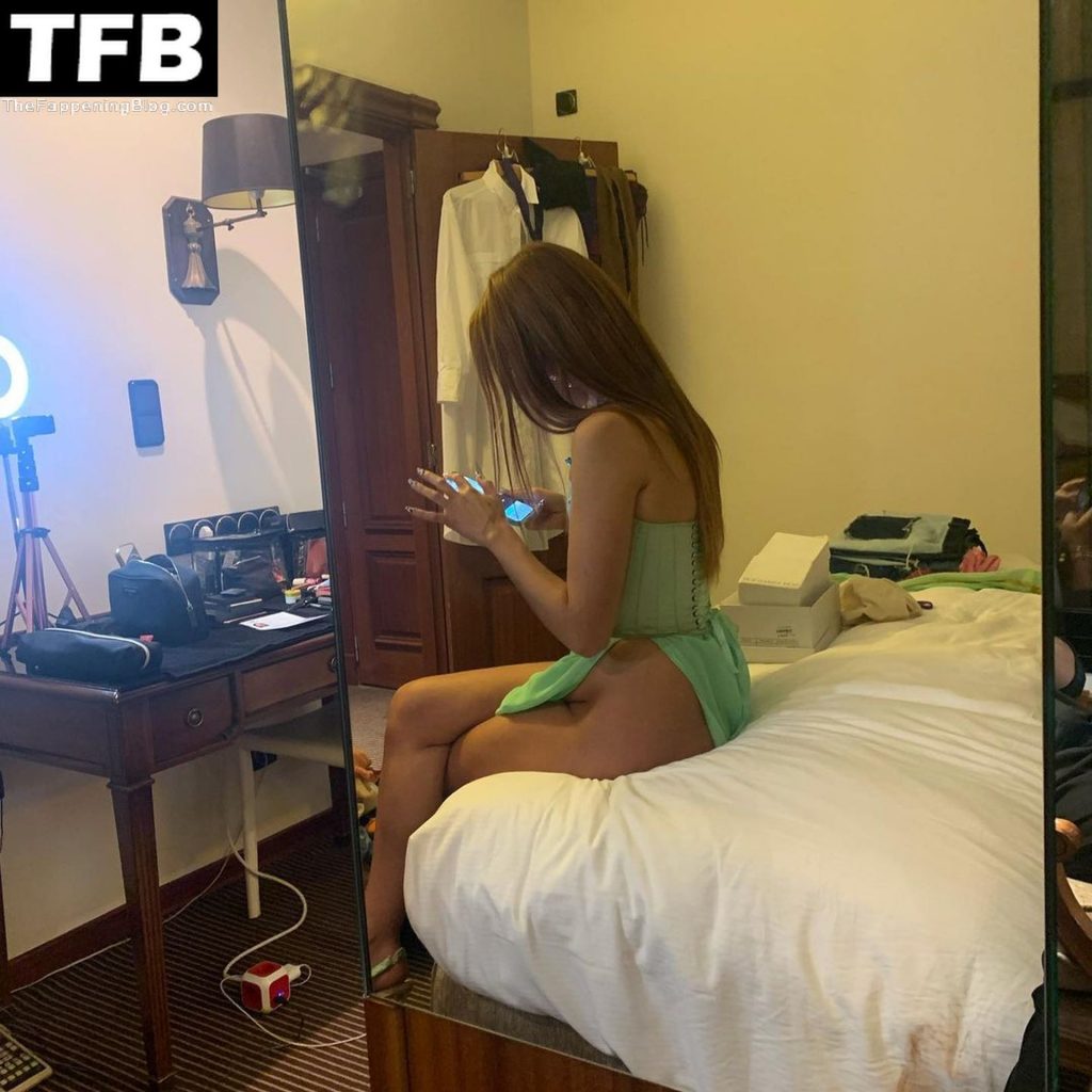 La pianiste et chanteuse Belén Aguilera pose sans culotte sur le tapis rouge lors de la gala des LOS40 Music Awards, le 13/11/2021.