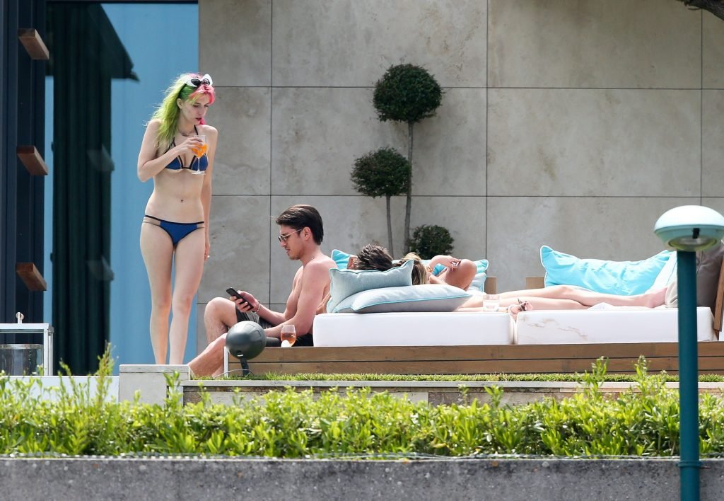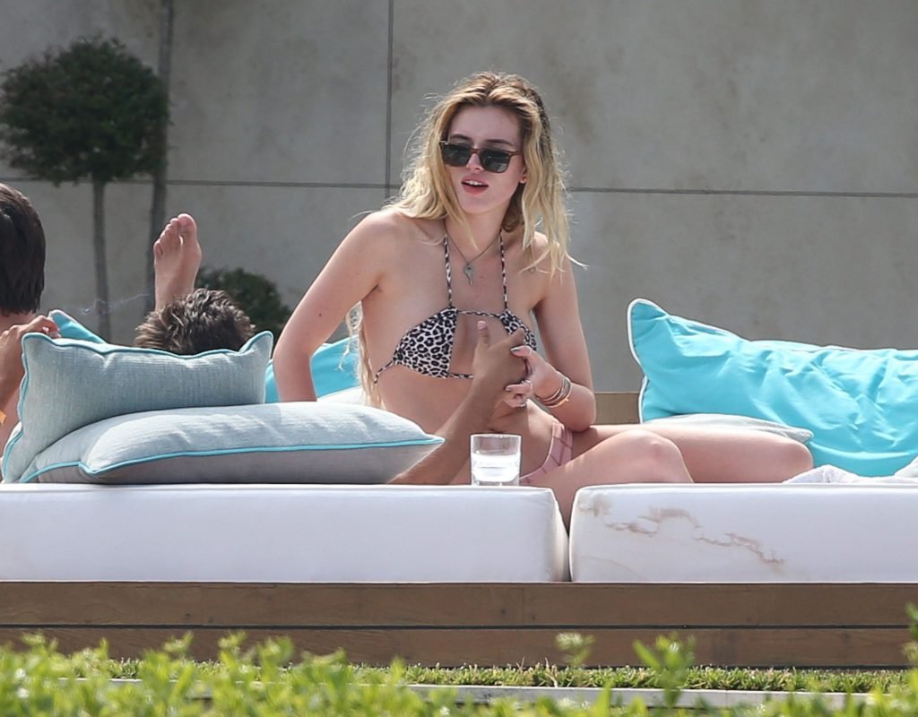 Les sœurs Bella & Dani Thorne ont été aperçues en train de se détendre au bord de la piscine à Cannes, le 24/05/2017. Jolie glissade de tétons par Bella !