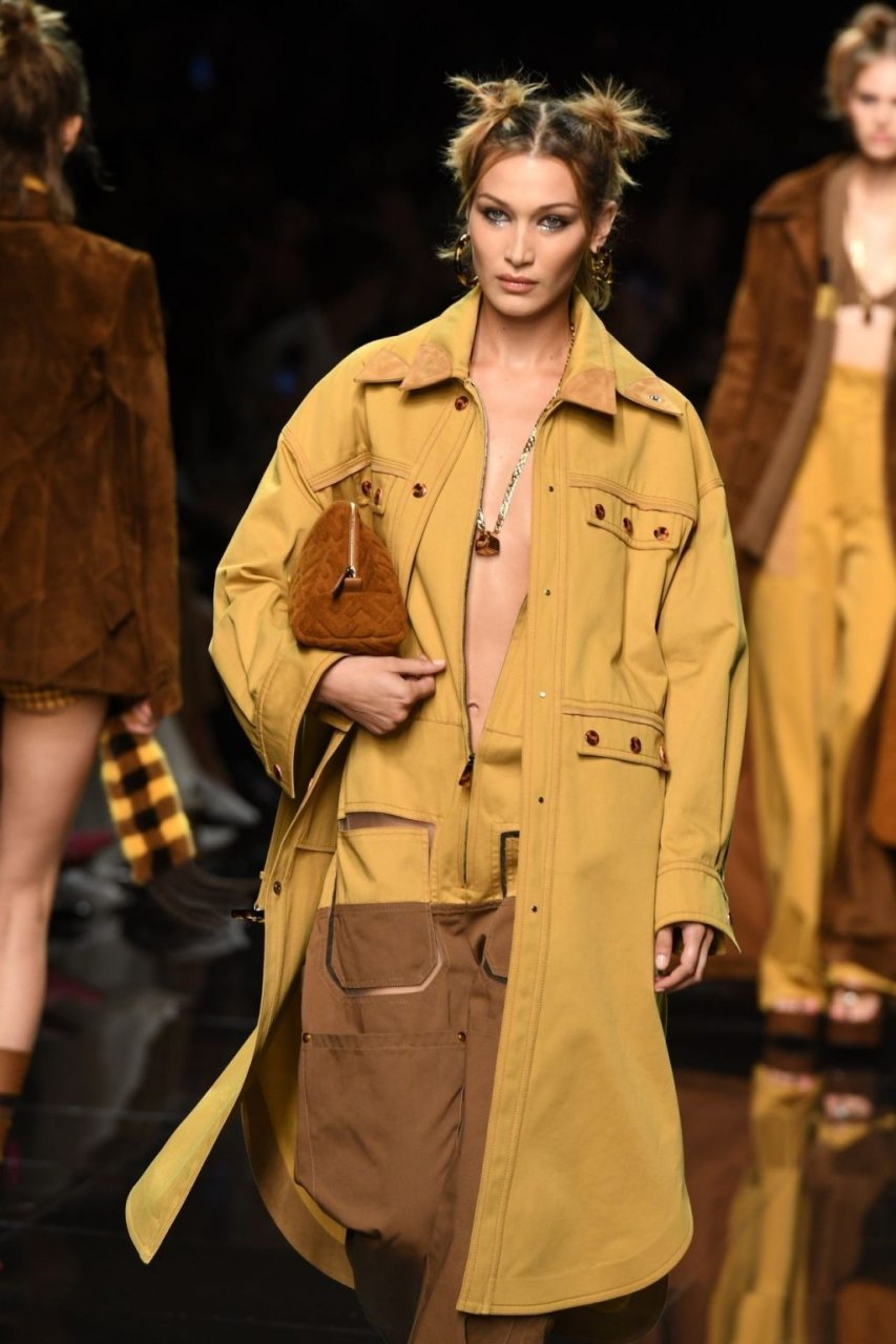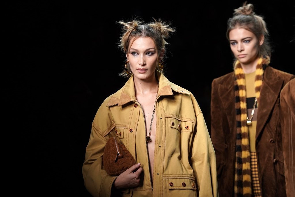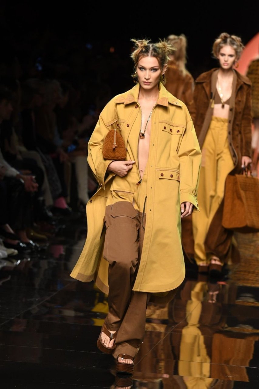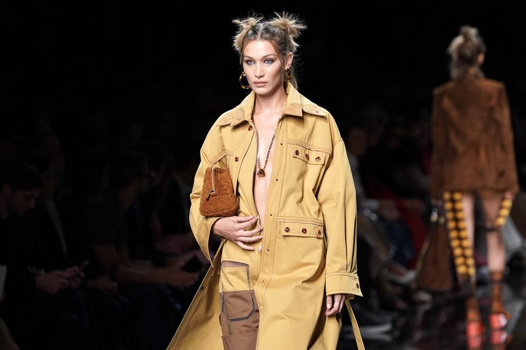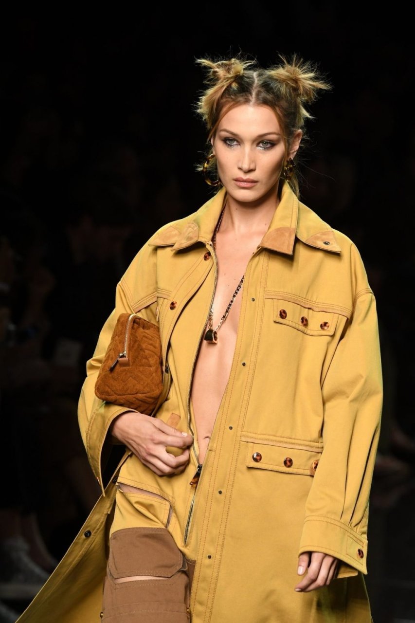 Le mannequin Bella Hadid défile lors du spectacle Fendi pendant la Fashion Week de Milan Printemps/Été 2020, 19/09/2019.