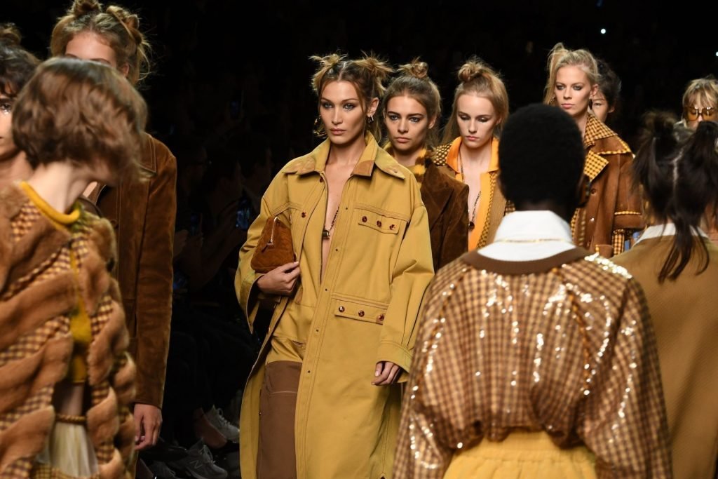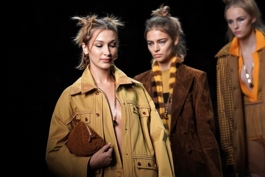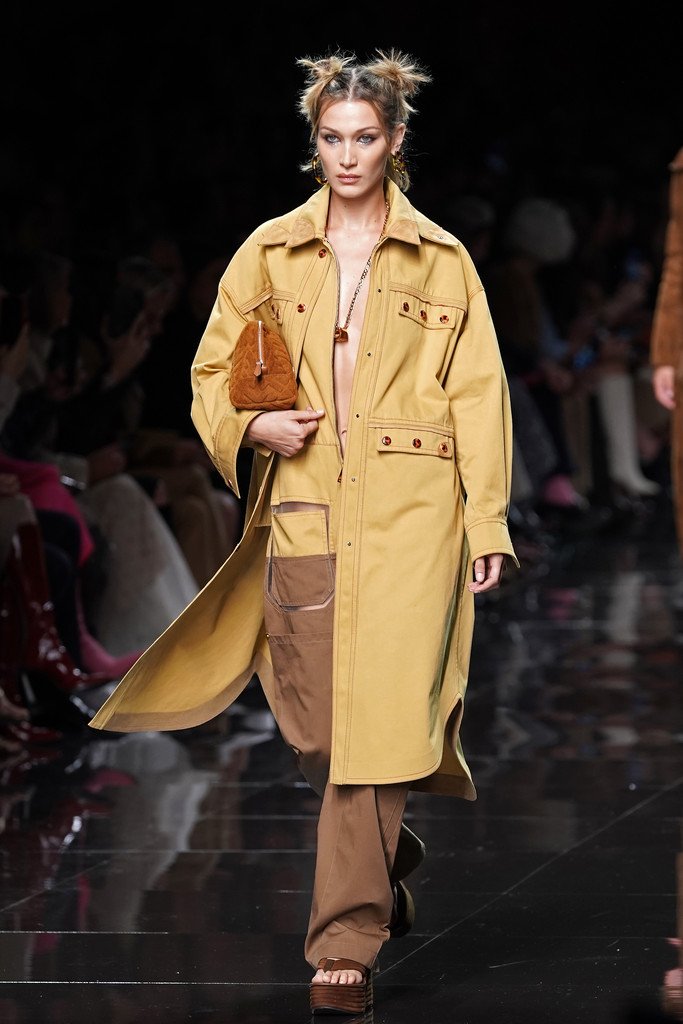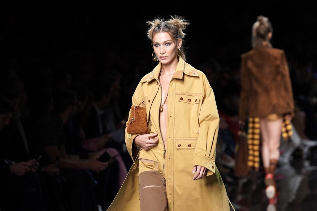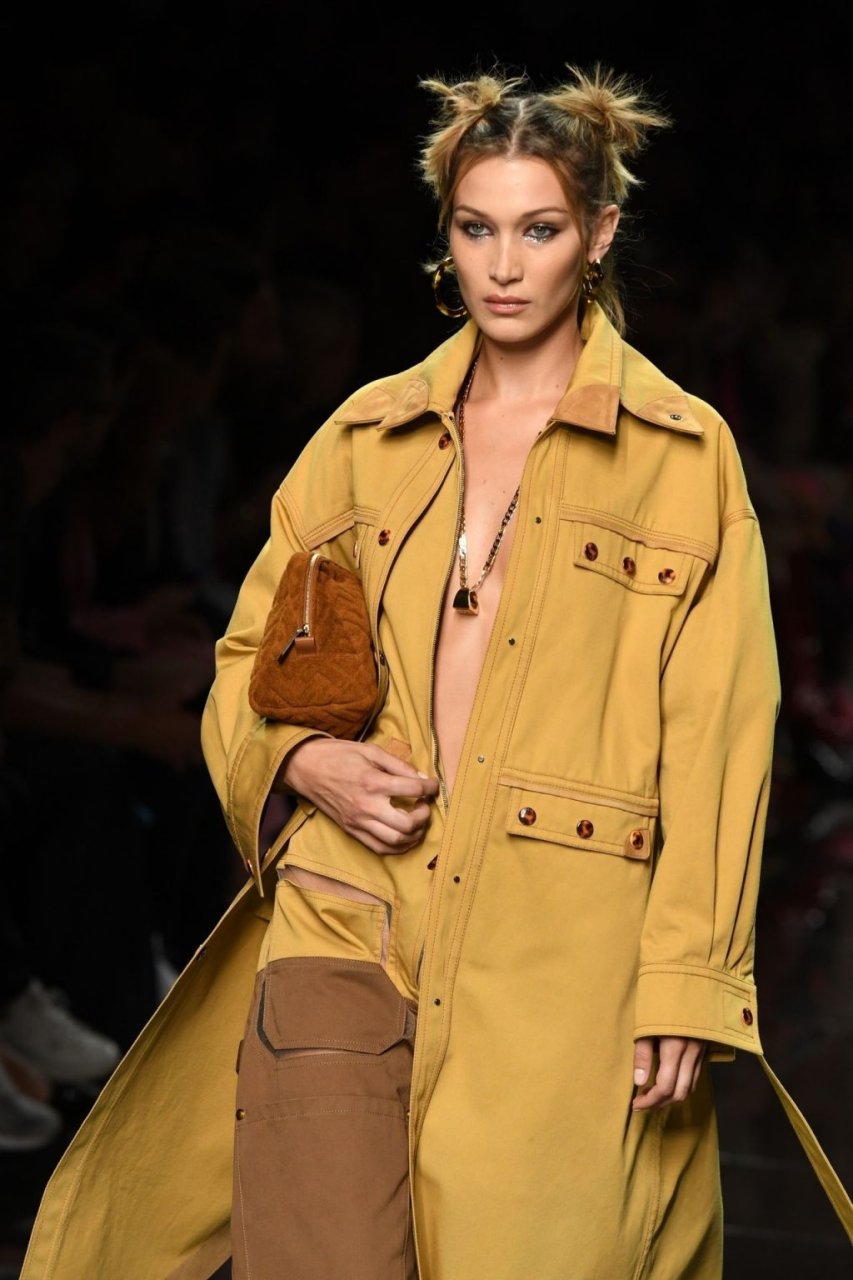 Le mannequin Bella Hadid défile lors du spectacle Fendi pendant la Fashion Week de Milan Printemps/Été 2020, 19/09/2019.