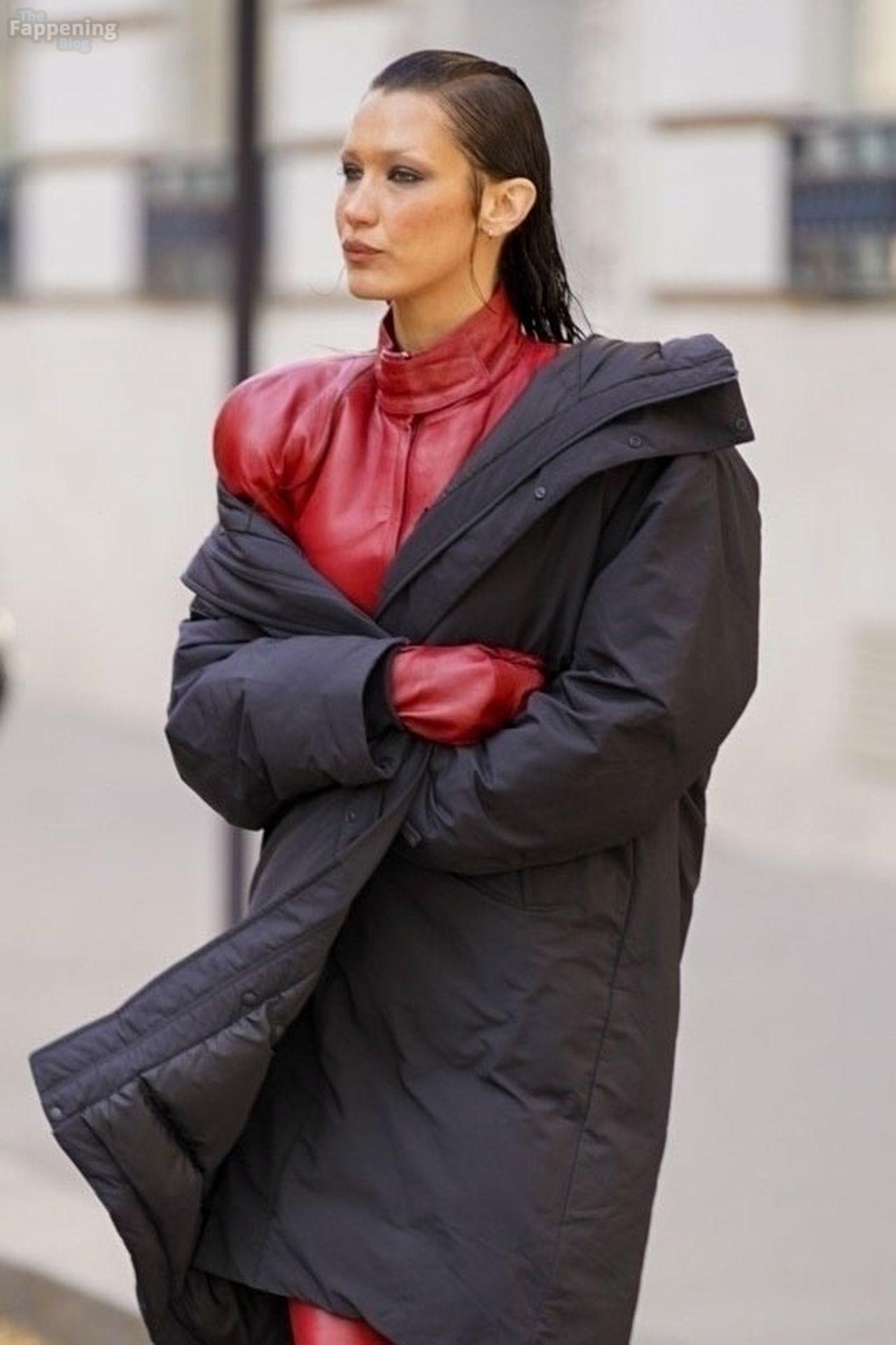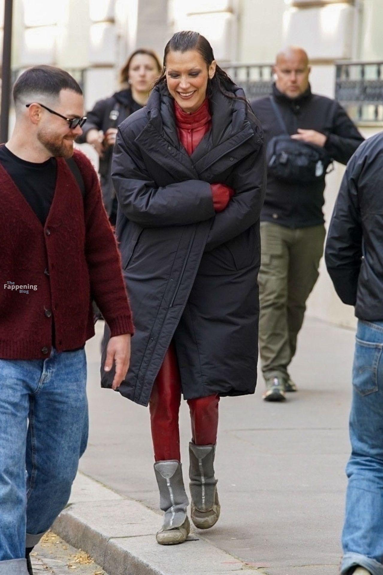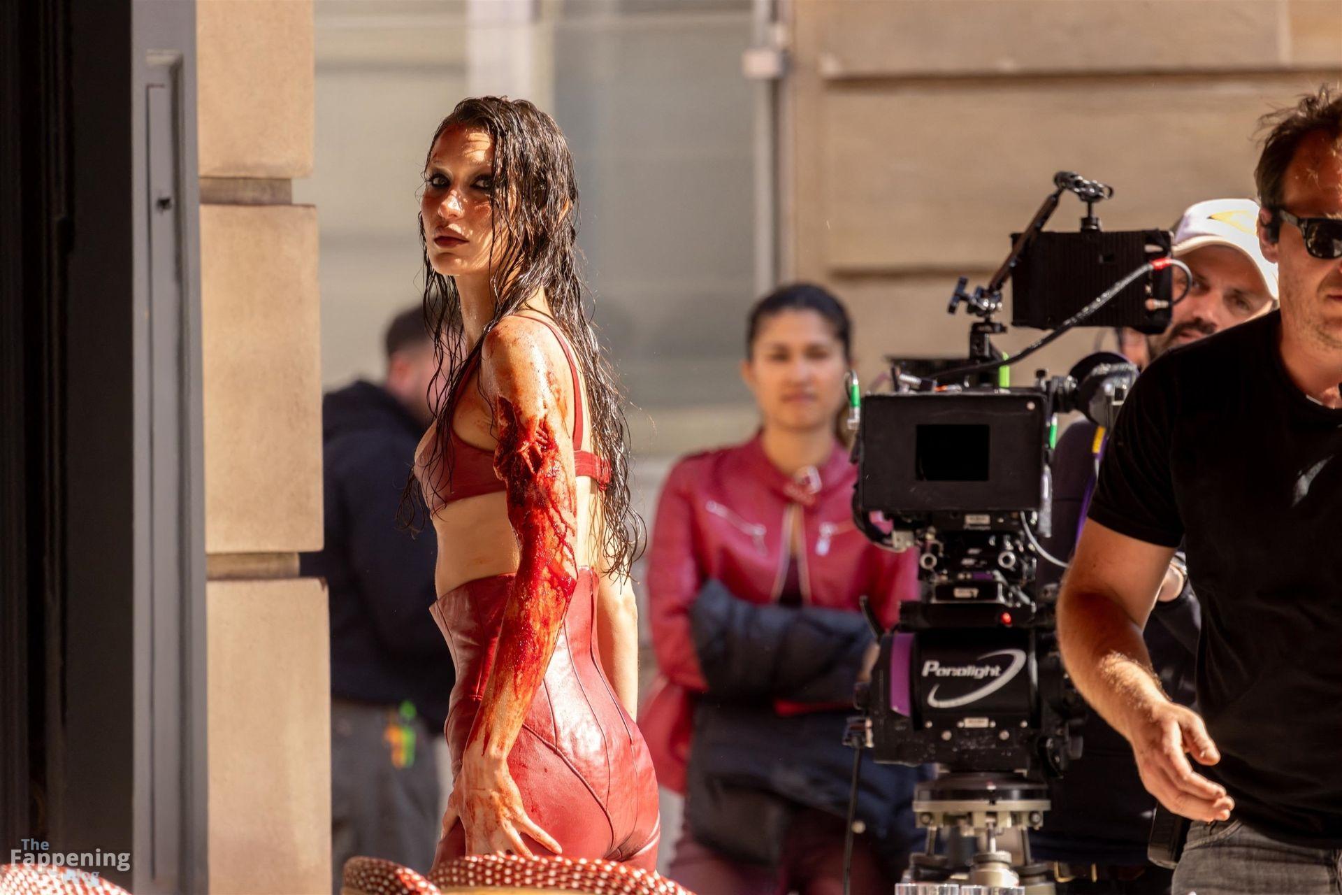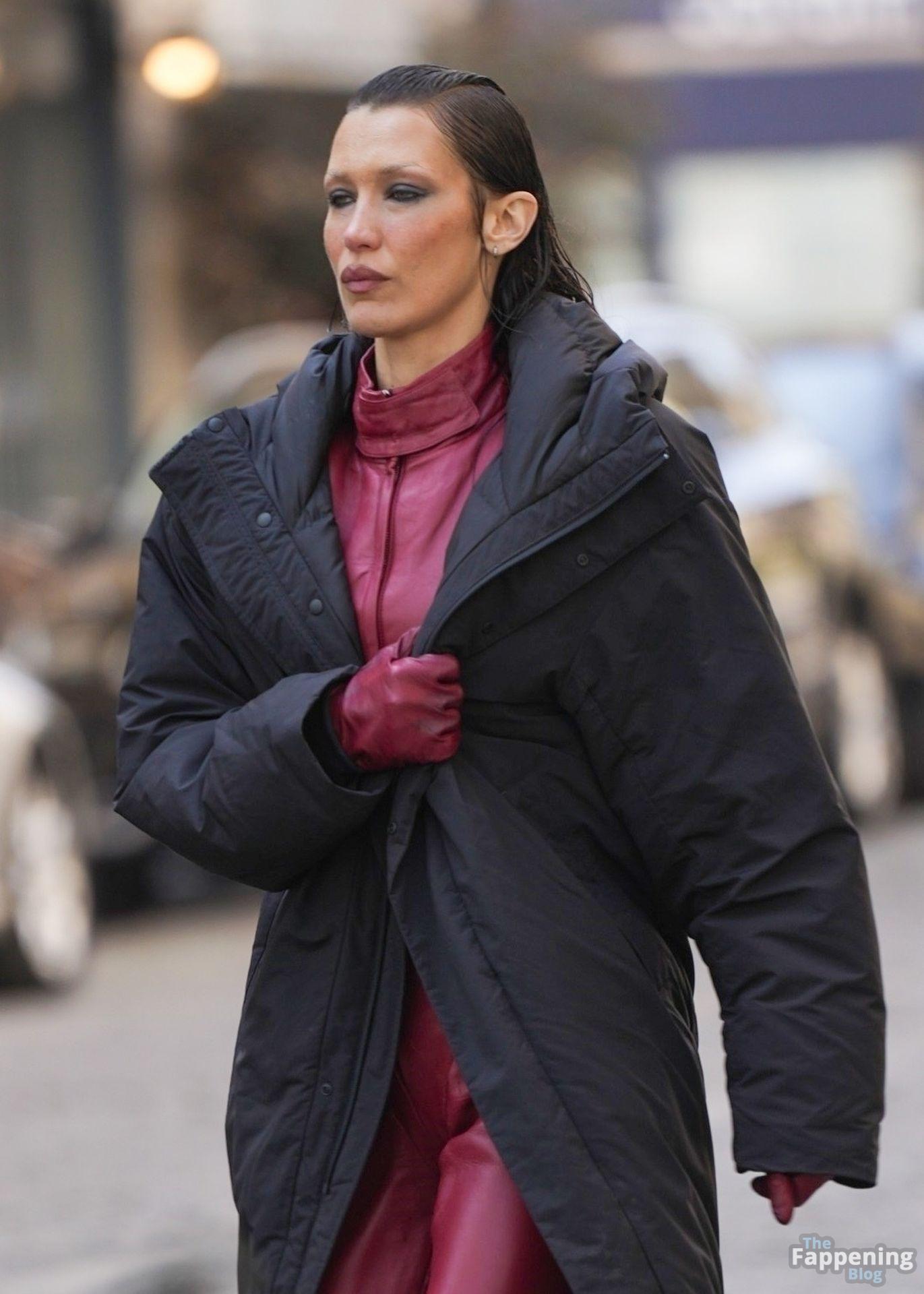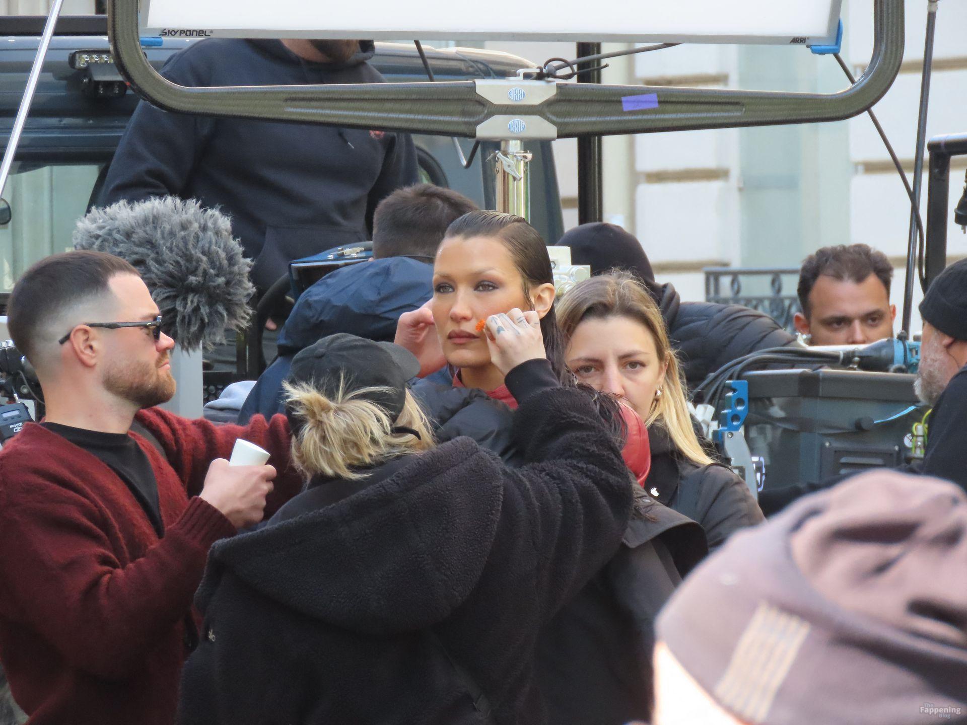 Bella Hadid a été photographiée à Paris, arborant une combinaison en cuir rouge flamboyant et chevauchant une moto. Après cette folle cascade avec un mannequin, elle joue les dures avec une vilaine blessure à la jambe pour une scène de la série « The Beauty » à Paris, France.
