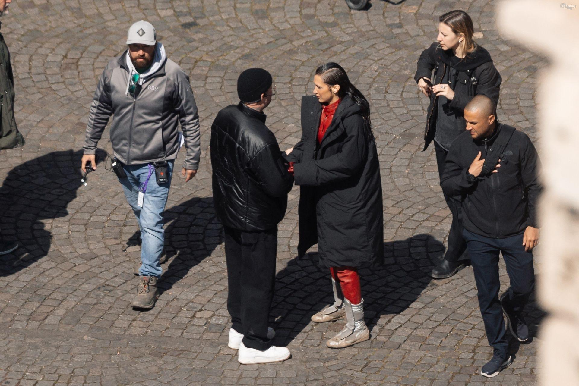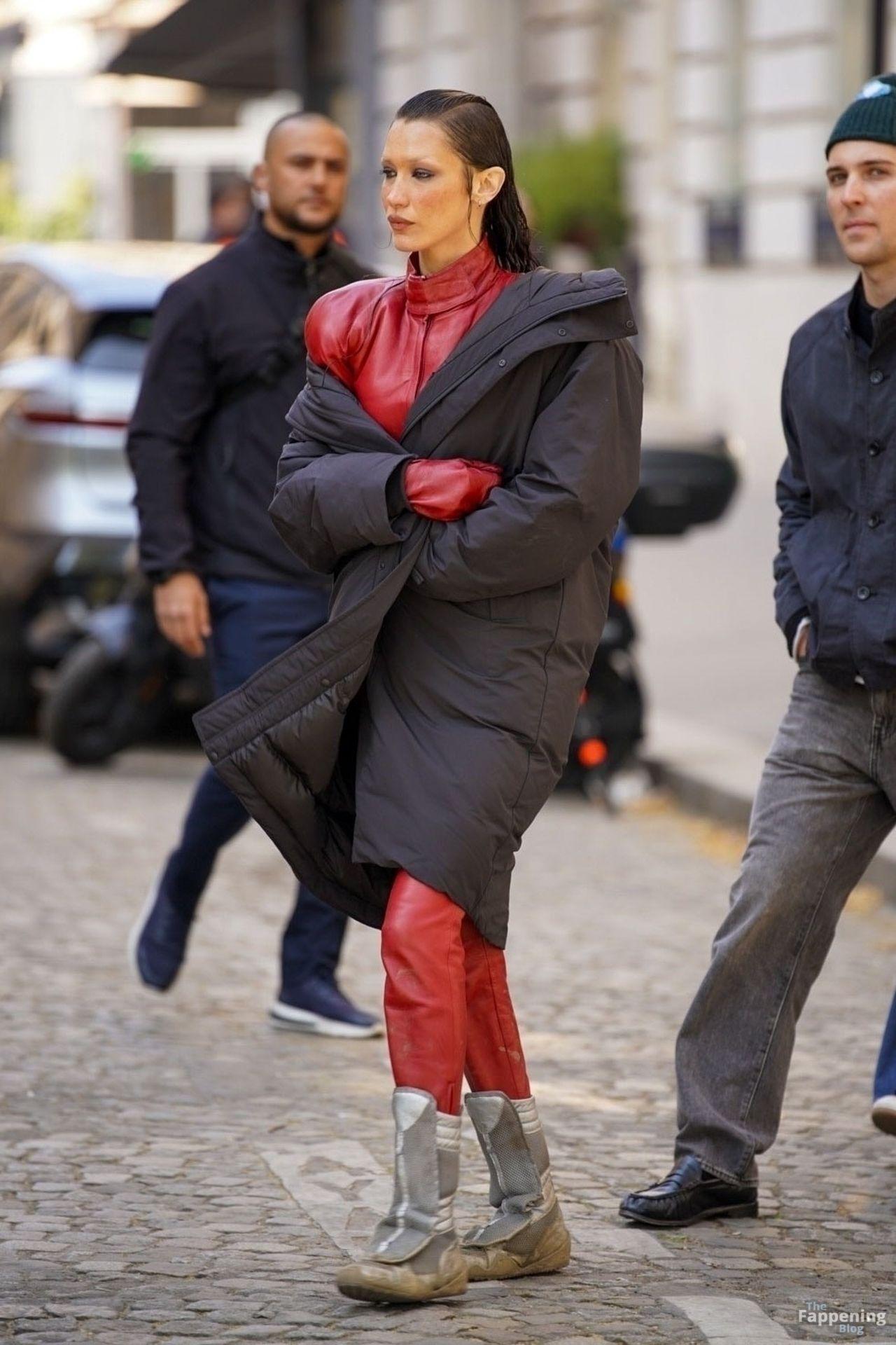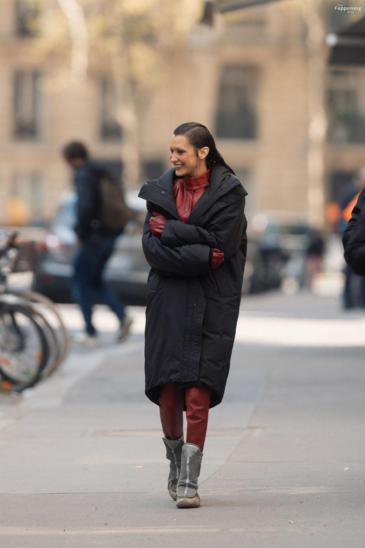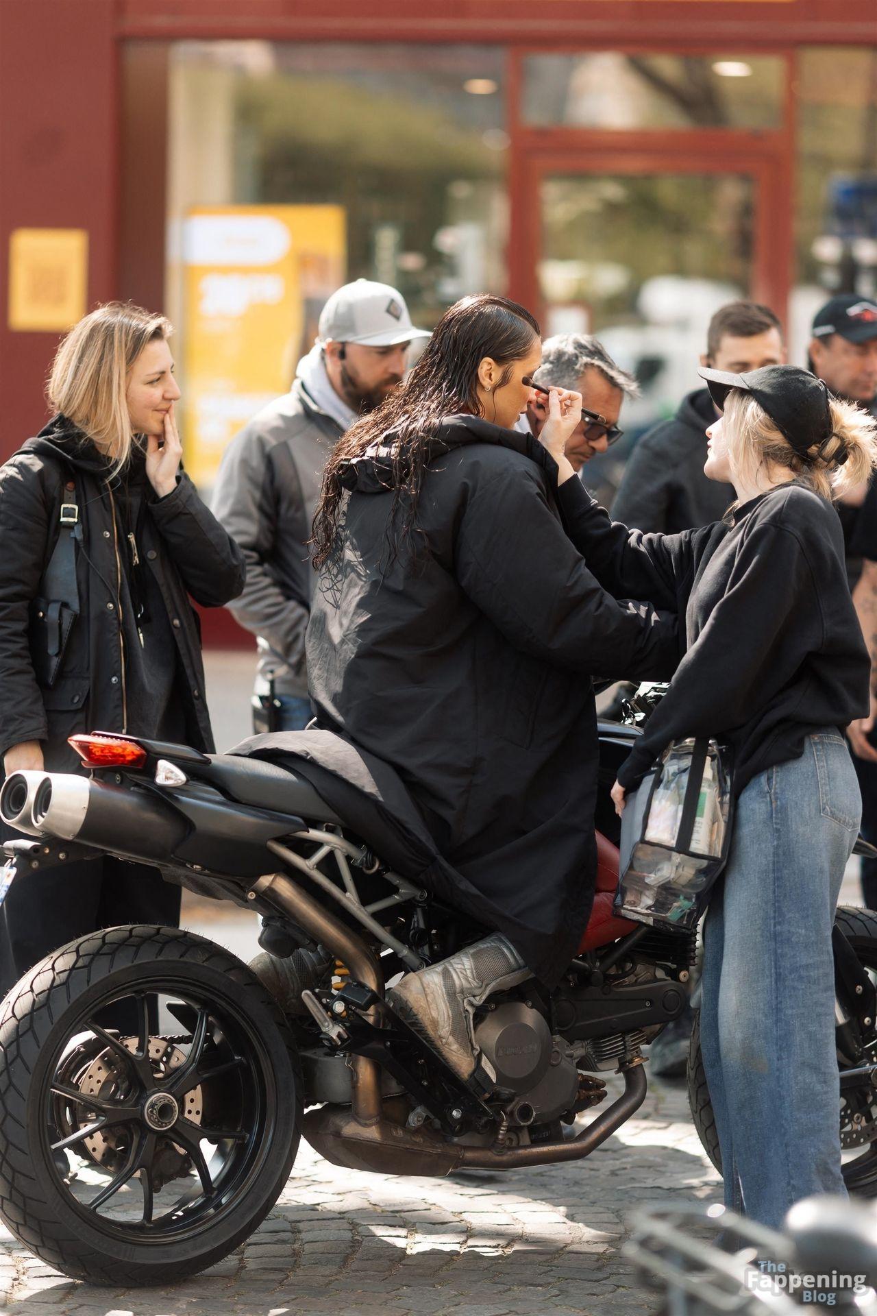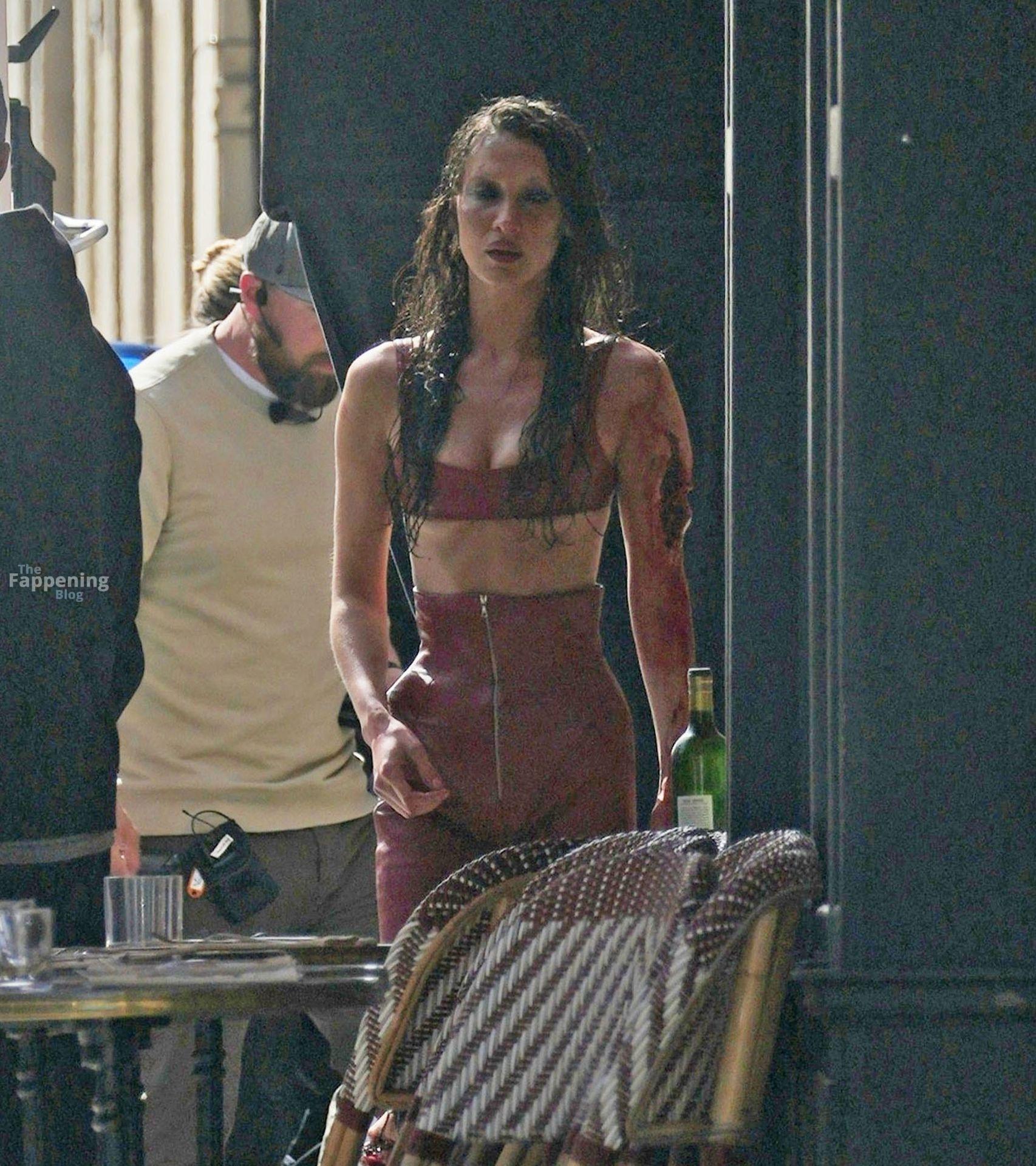 Bella Hadid a été photographiée à Paris, arborant une combinaison en cuir rouge flamboyant et chevauchant une moto. Après cette folle cascade avec un mannequin, elle joue les dures avec une vilaine blessure à la jambe pour une scène de la série « The Beauty » à Paris, France.