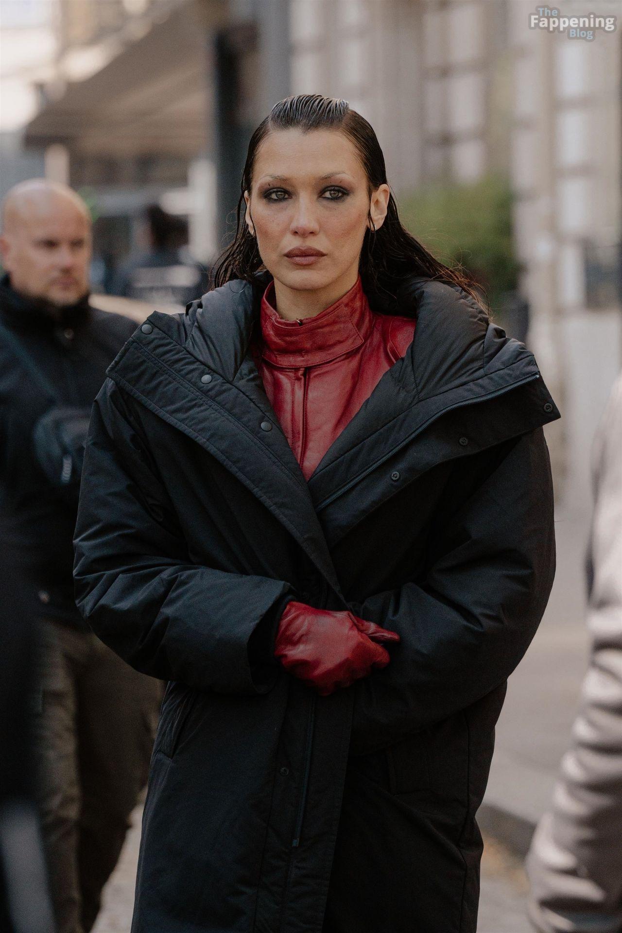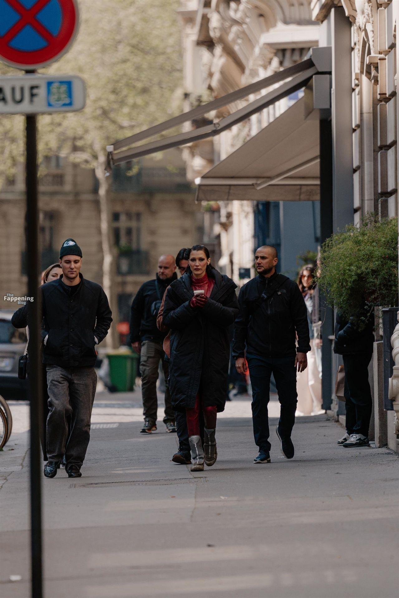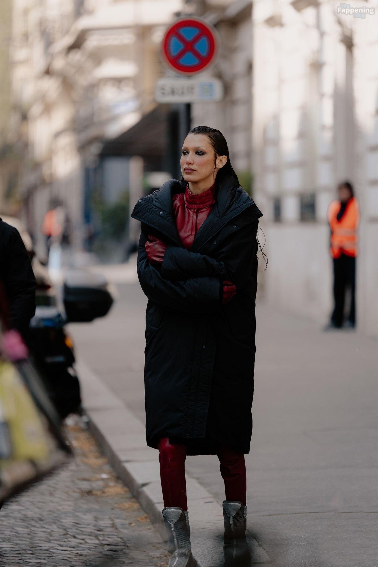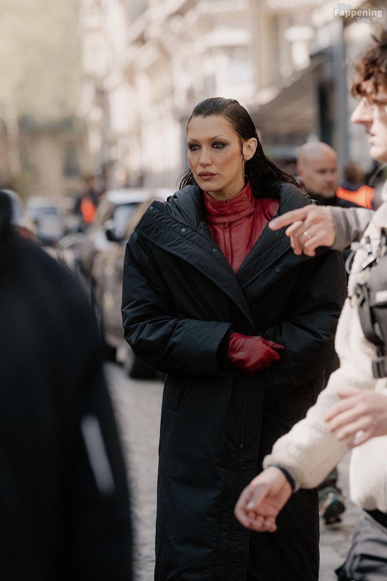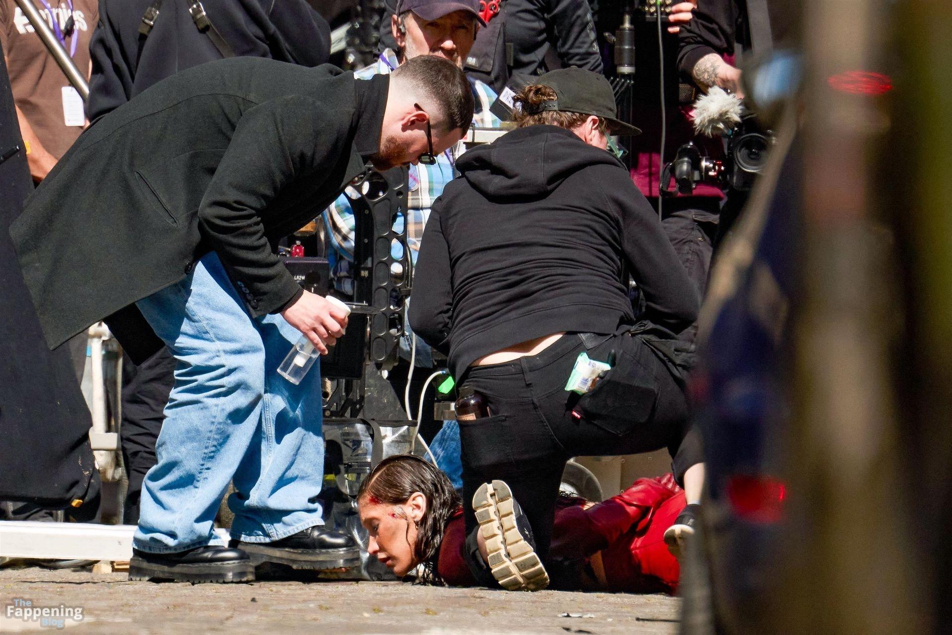 Bella Hadid a été photographiée à Paris, arborant une combinaison en cuir rouge flamboyant et chevauchant une moto. Après cette folle cascade avec un mannequin, elle joue les dures avec une vilaine blessure à la jambe pour une scène de la série « The Beauty » à Paris, France.