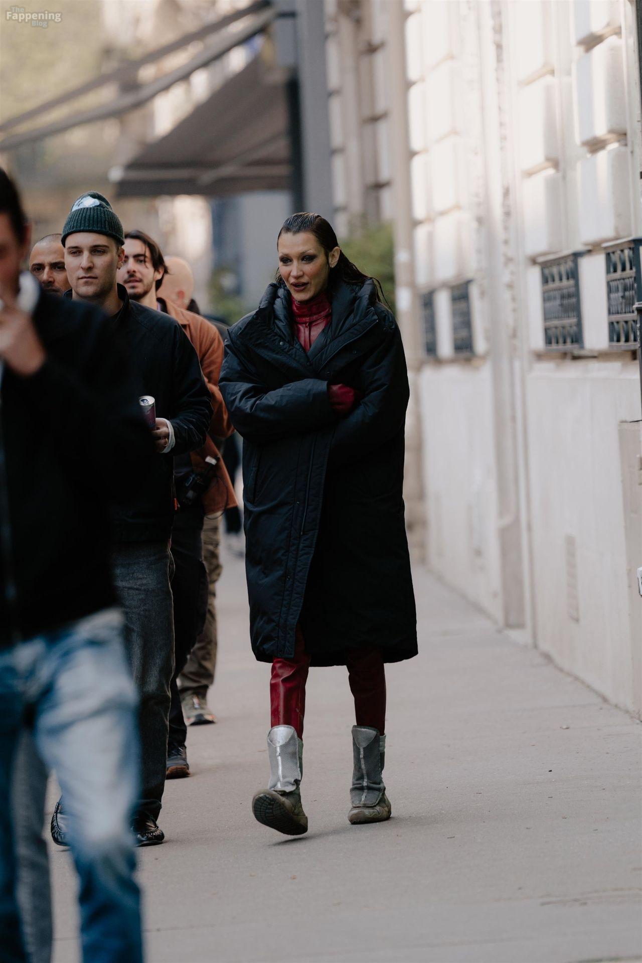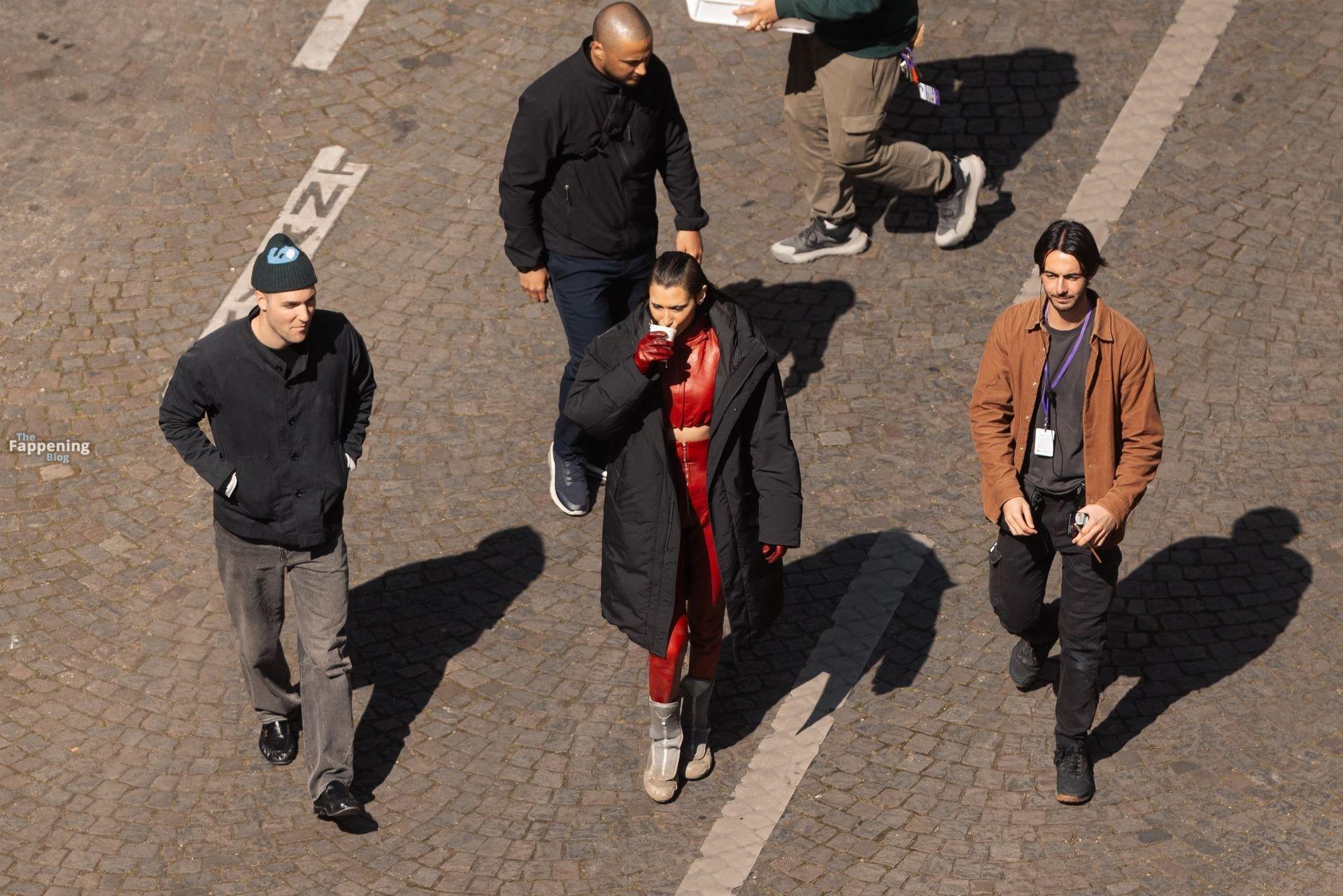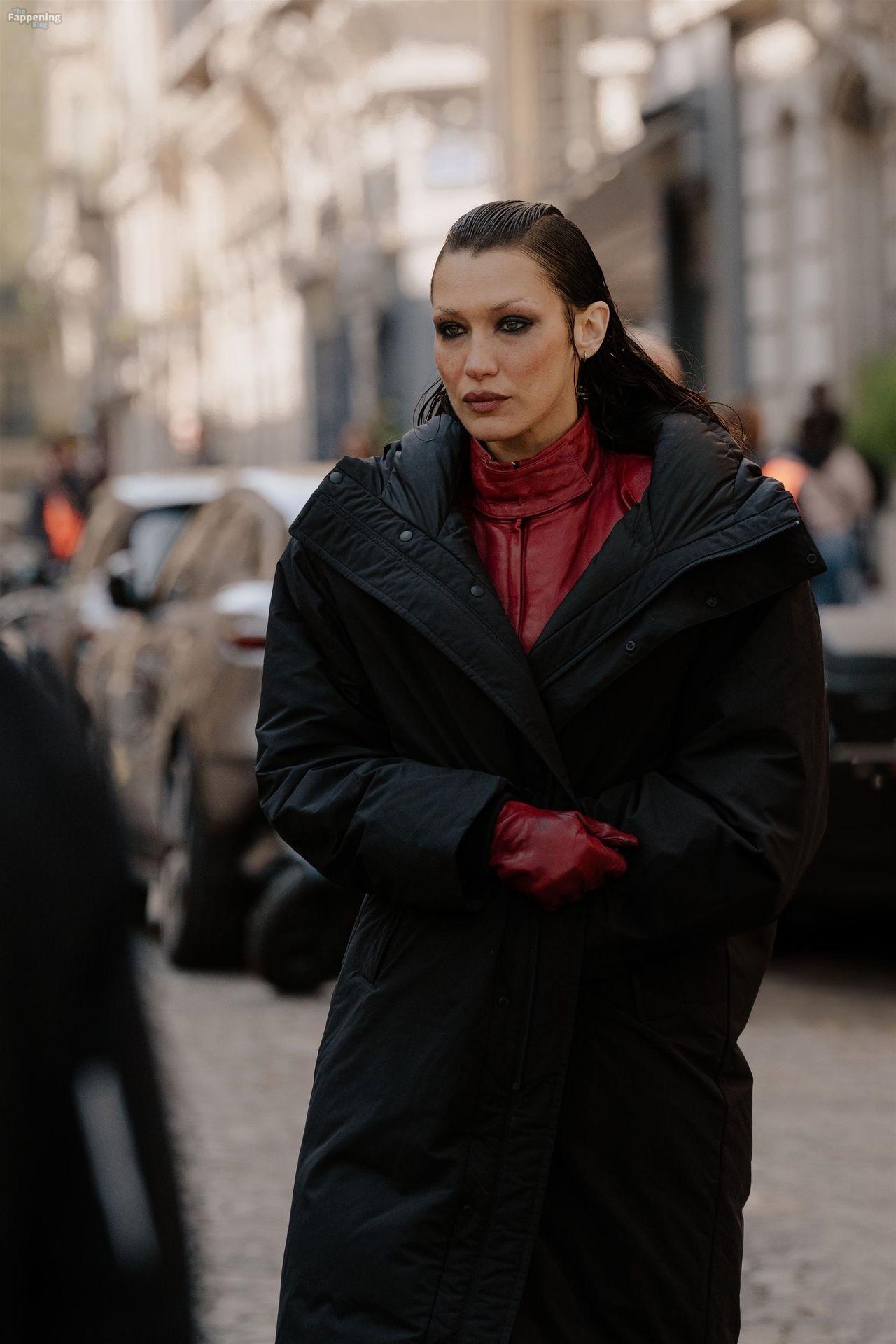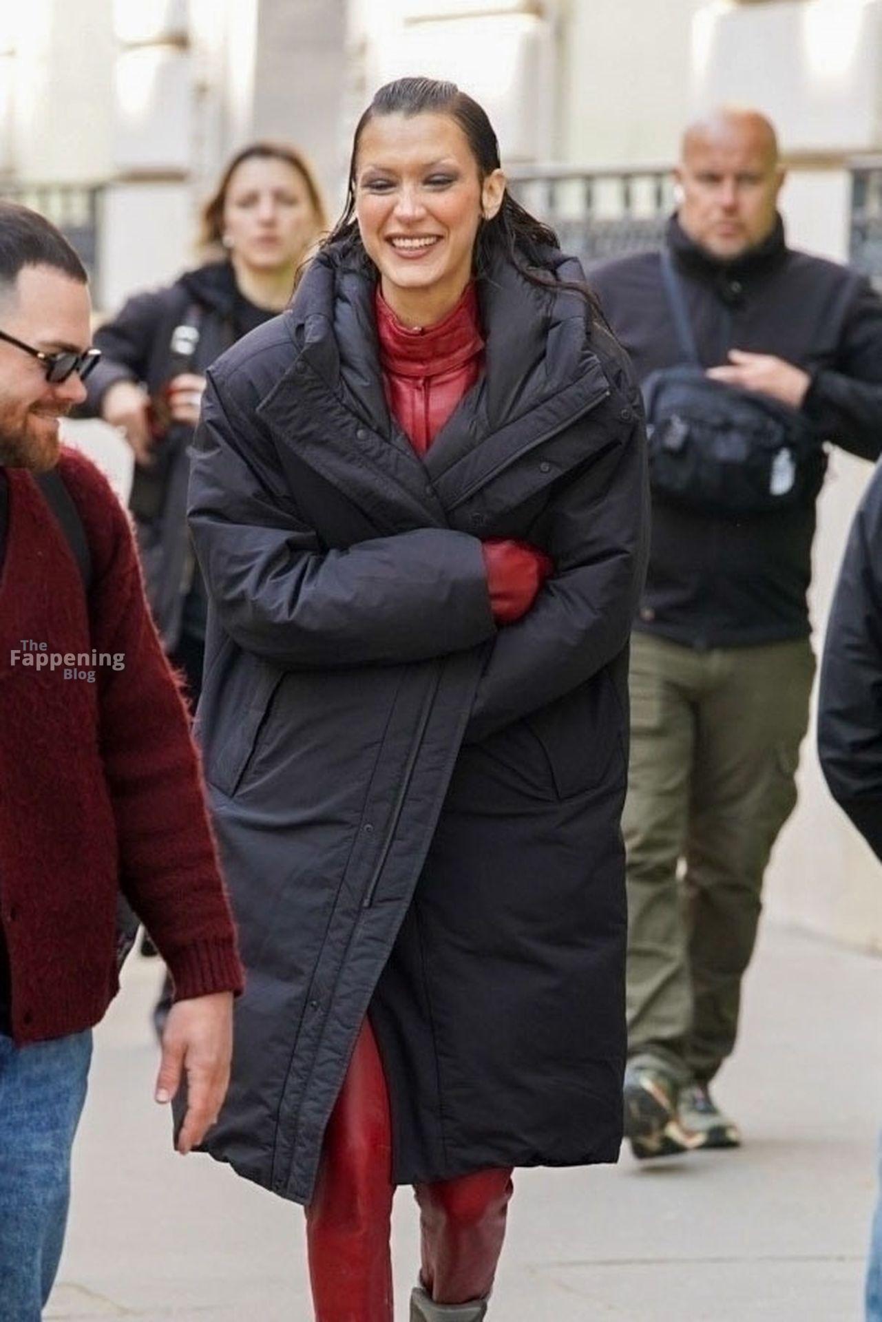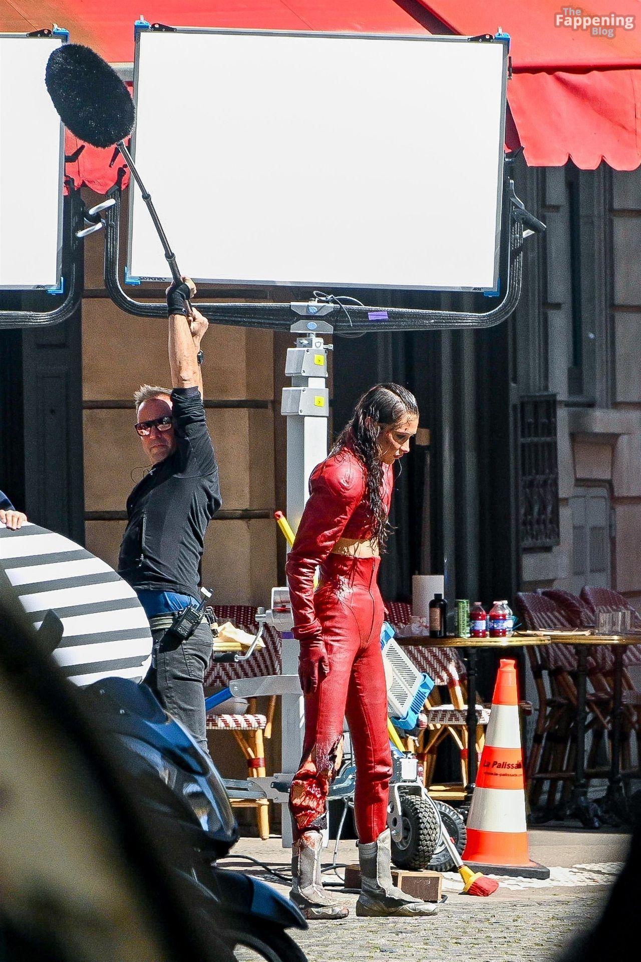 Bella Hadid a été photographiée à Paris, arborant une combinaison en cuir rouge flamboyant et chevauchant une moto. Après cette folle cascade avec un mannequin, elle joue les dures avec une vilaine blessure à la jambe pour une scène de la série « The Beauty » à Paris, France.