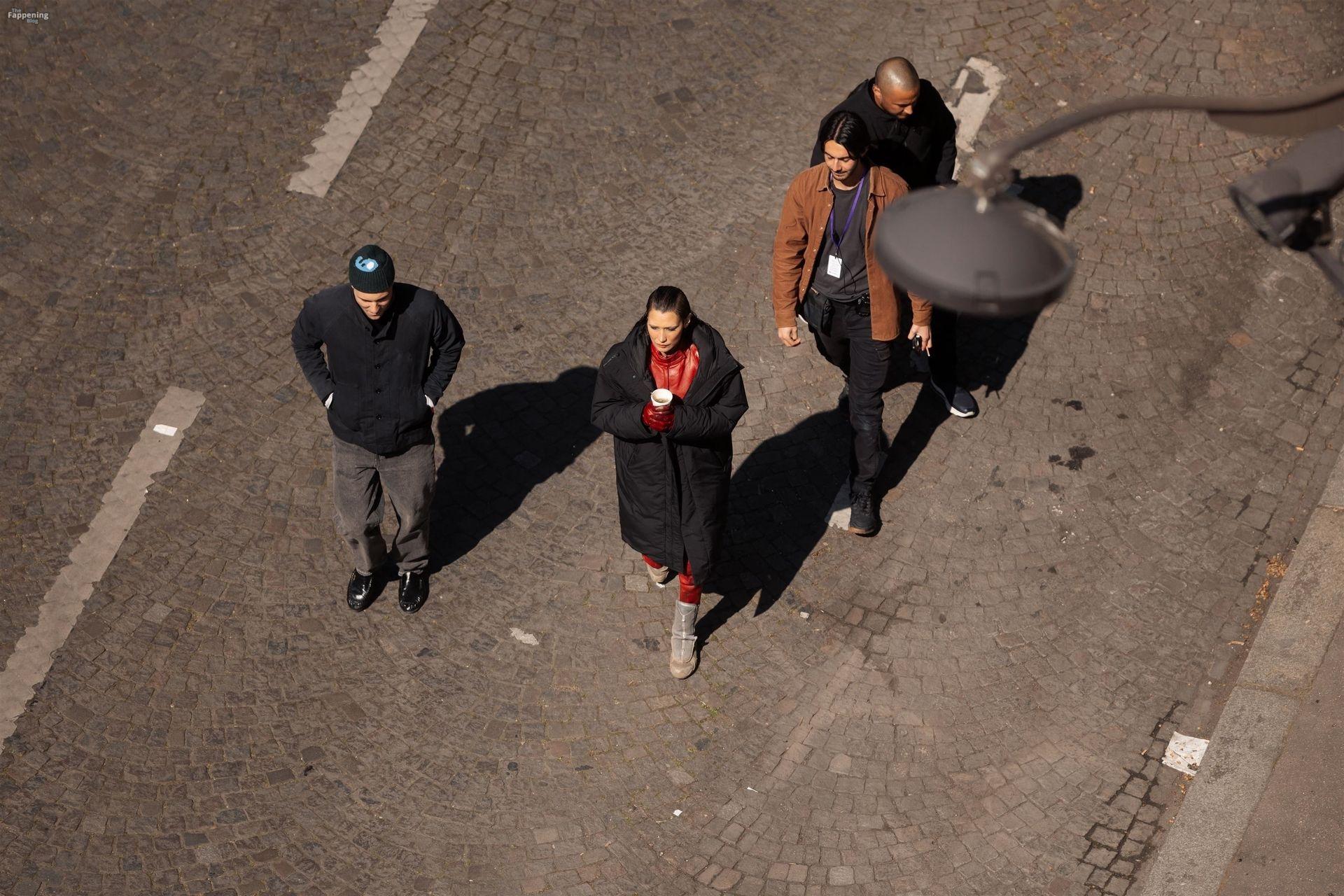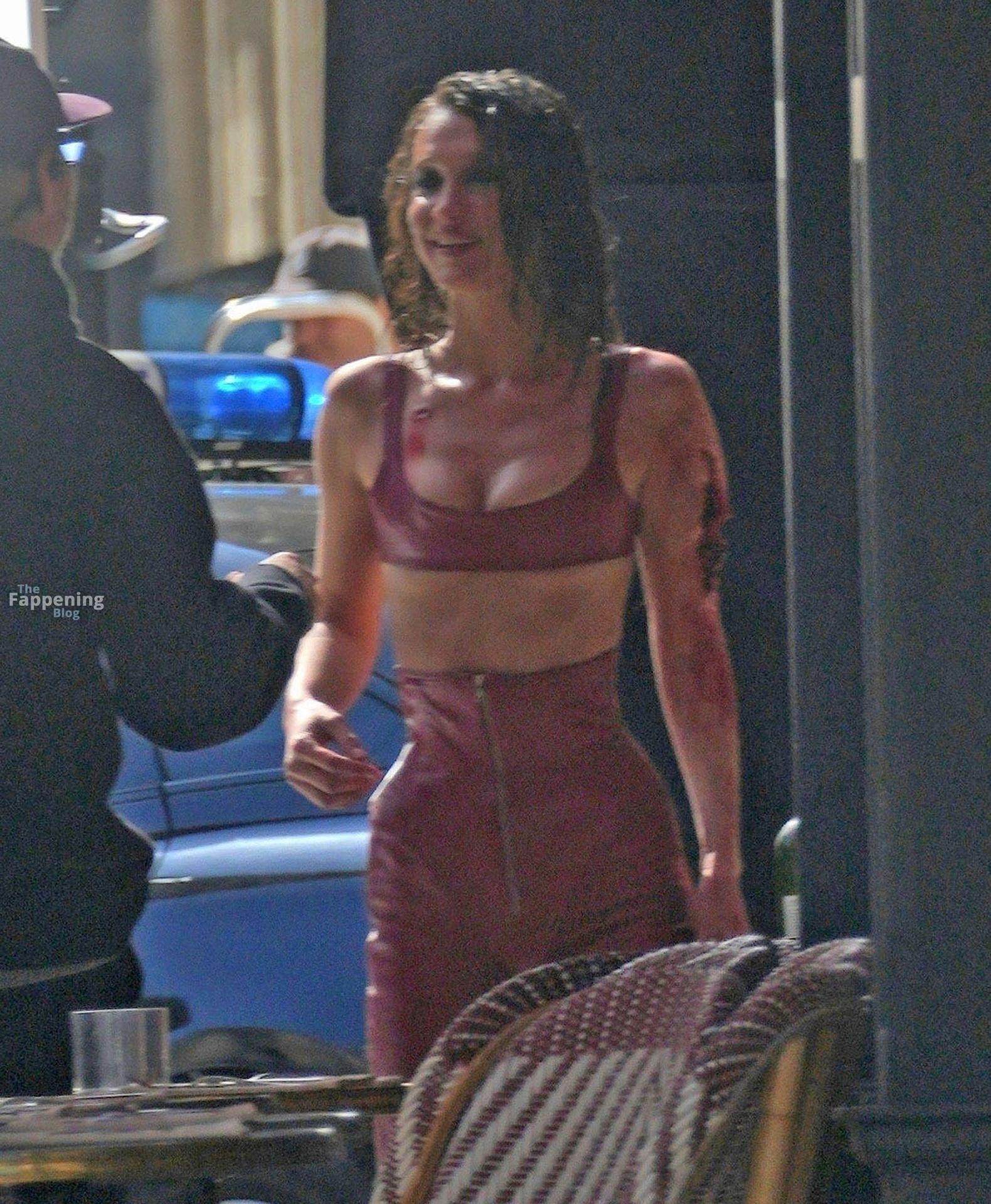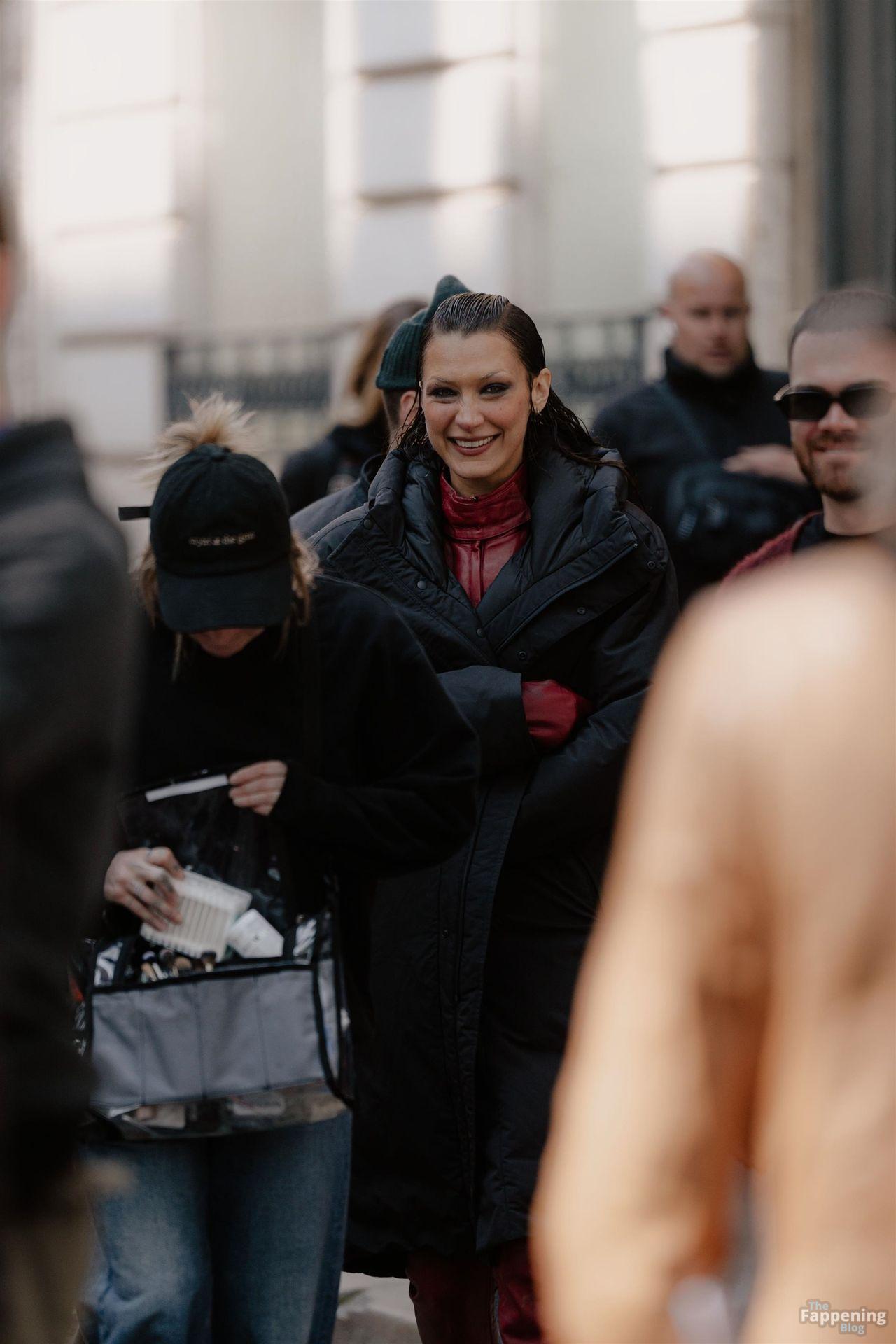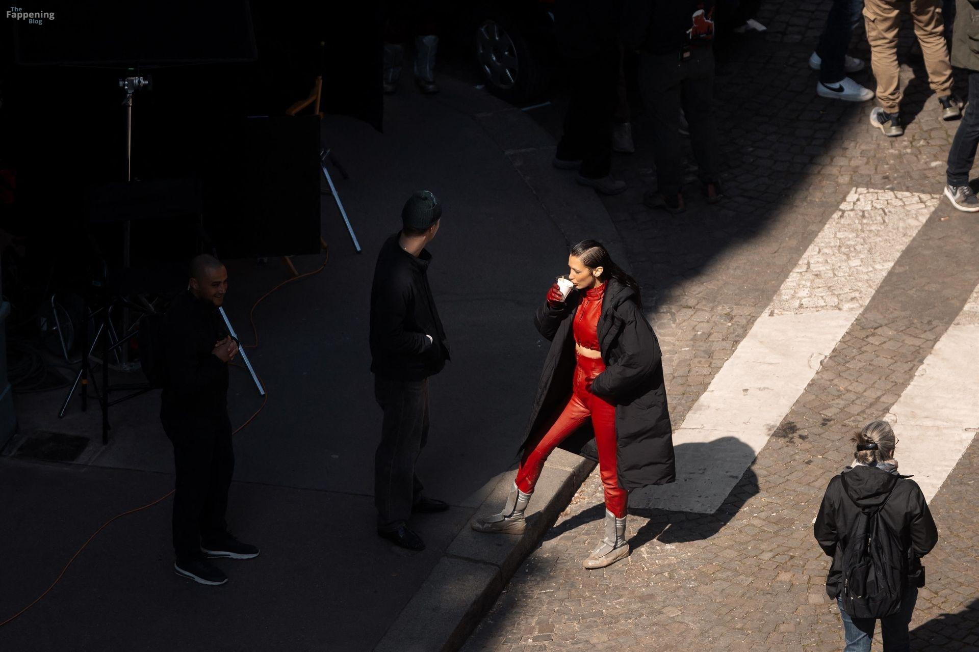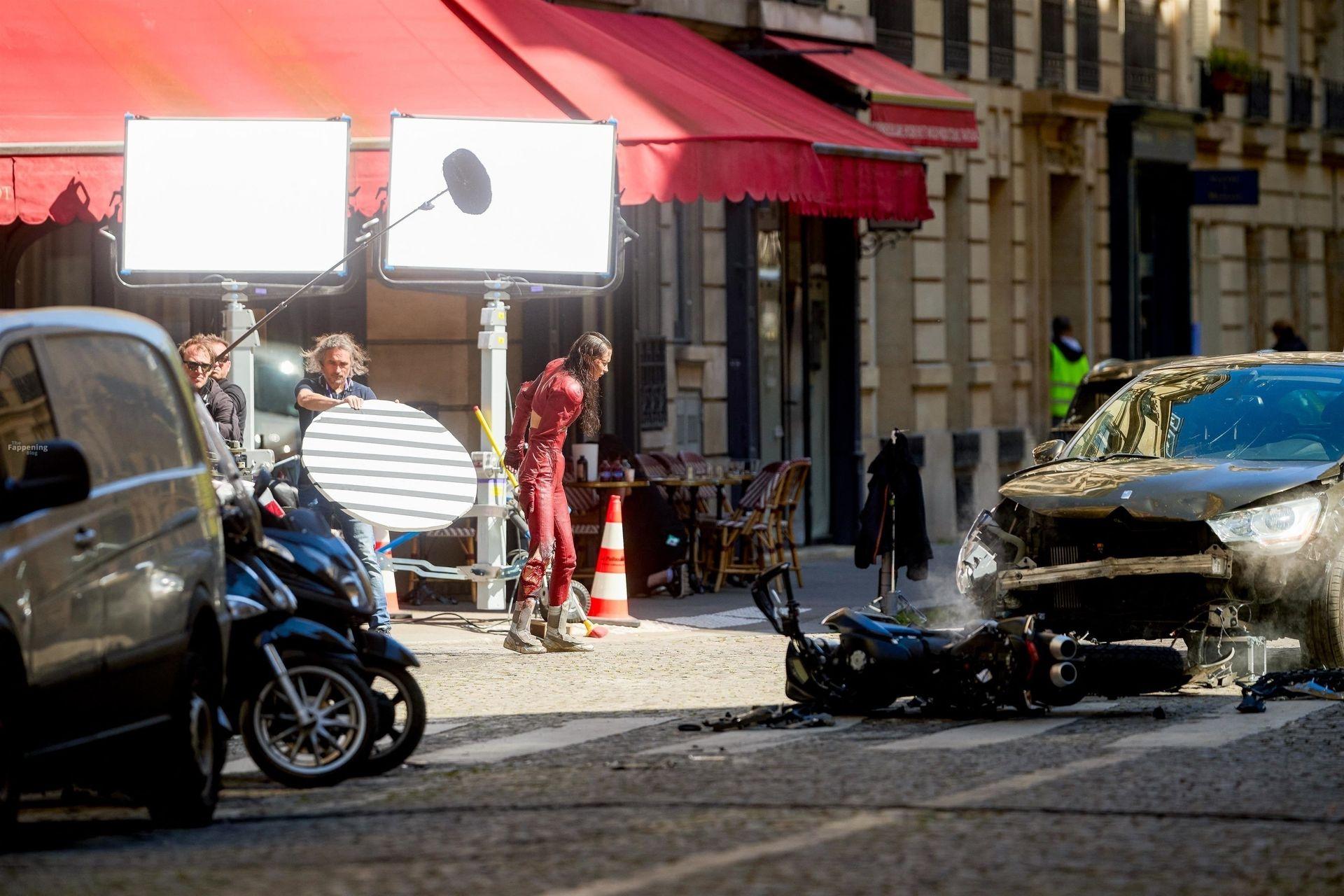 Bella Hadid a été photographiée à Paris, arborant une combinaison en cuir rouge flamboyant et chevauchant une moto. Après cette folle cascade avec un mannequin, elle joue les dures avec une vilaine blessure à la jambe pour une scène de la série « The Beauty » à Paris, France.