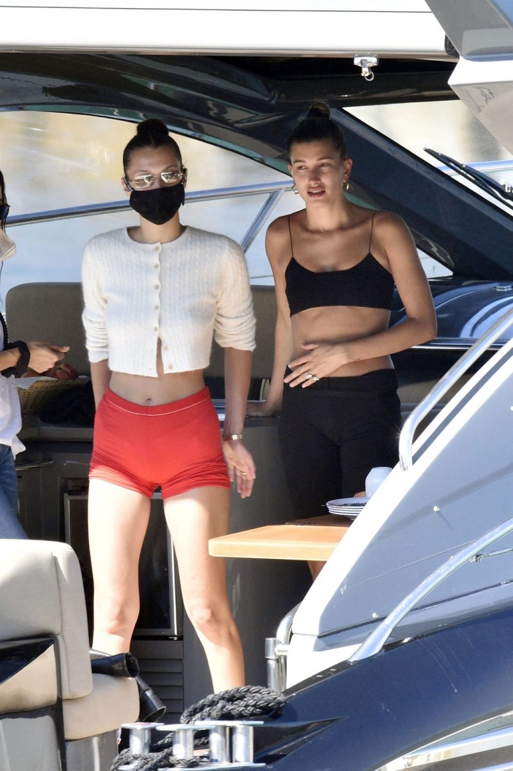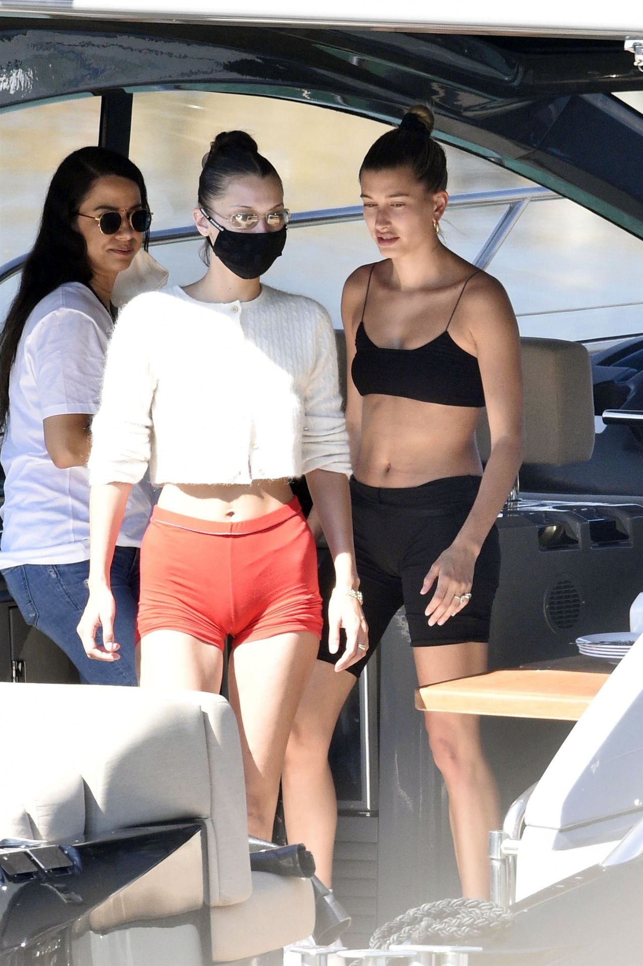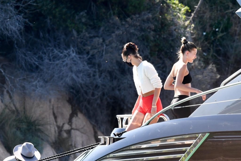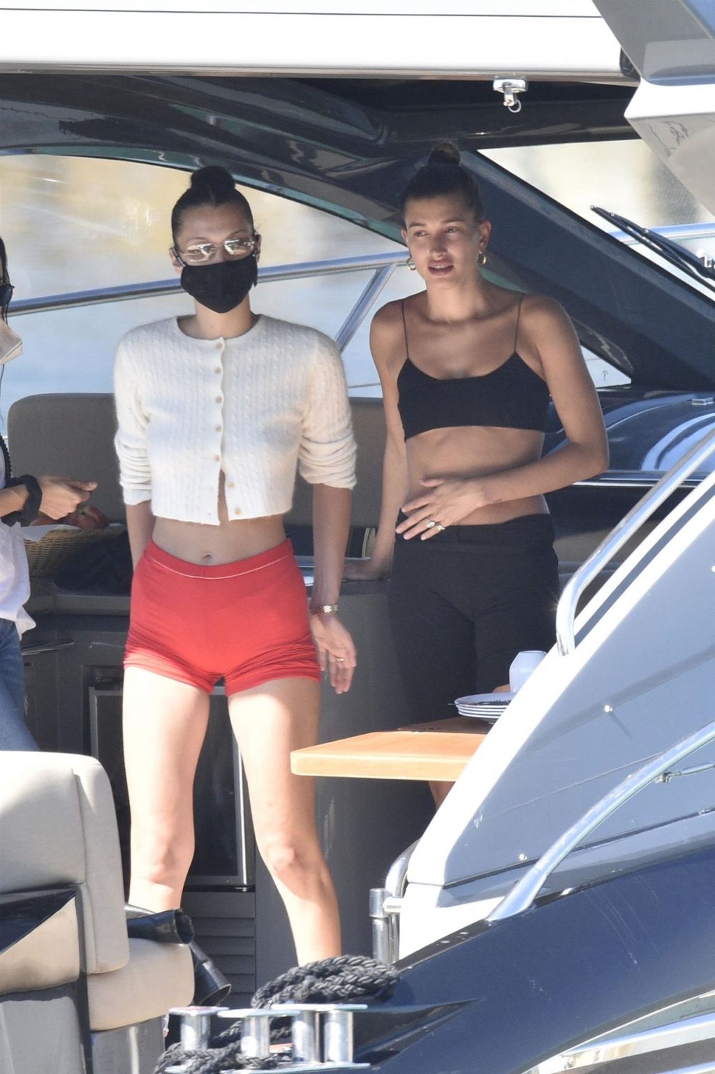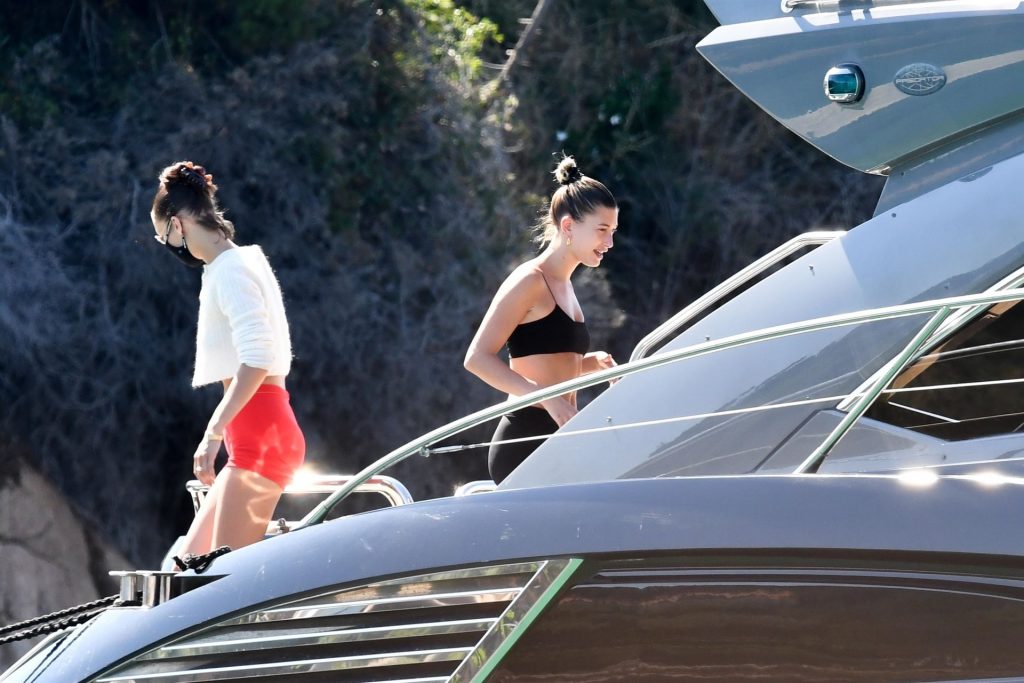 Bella Hadid et Hailey Baldwin sont vues montant à bord d’un yacht aujourd’hui après être arrivées en ville plus tôt – Sardaigne, Italie, 23/06/2020. Les mannequins semblaient impatientes de profiter d’un moment sur l’eau et de déjeuner.