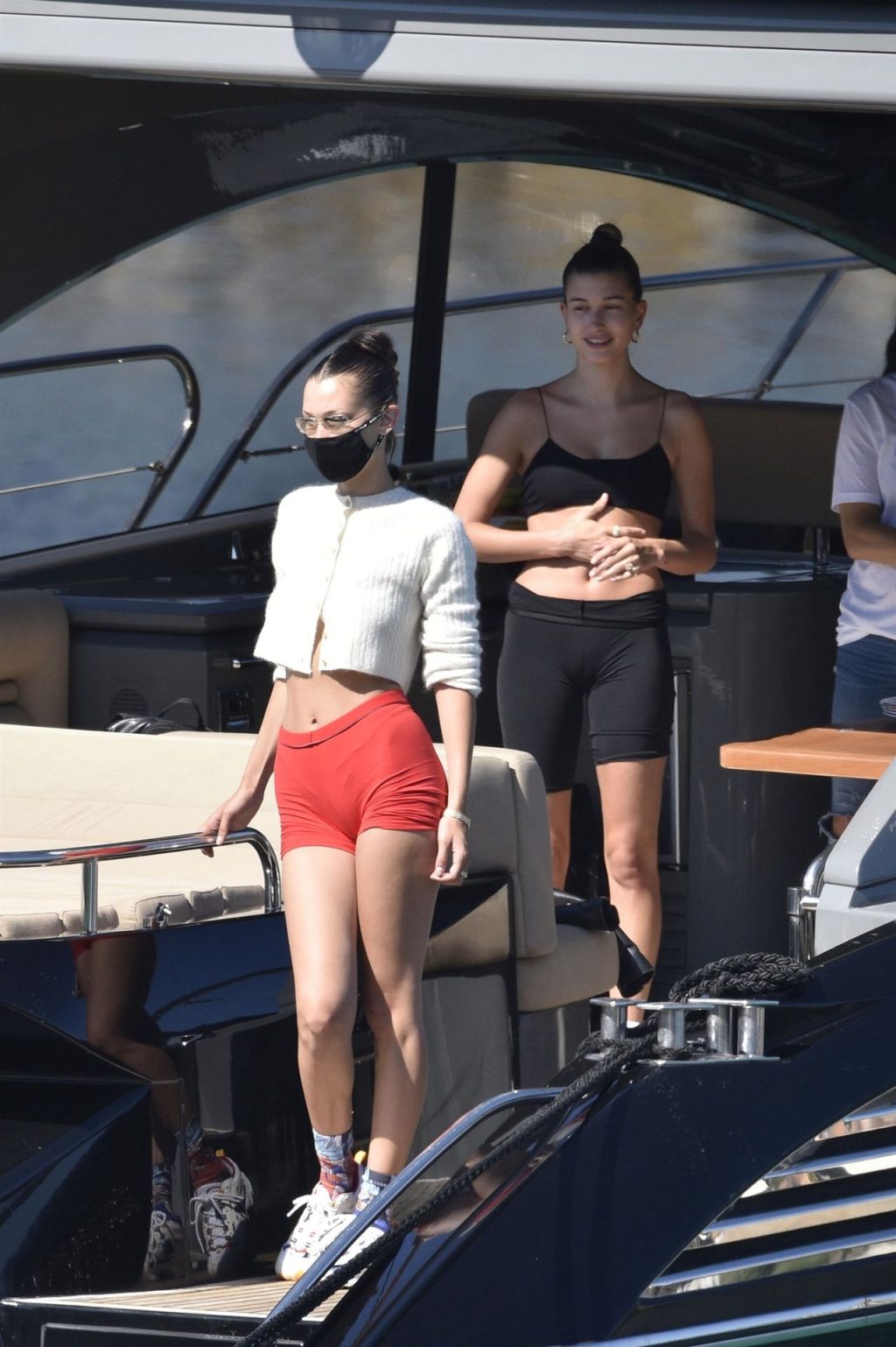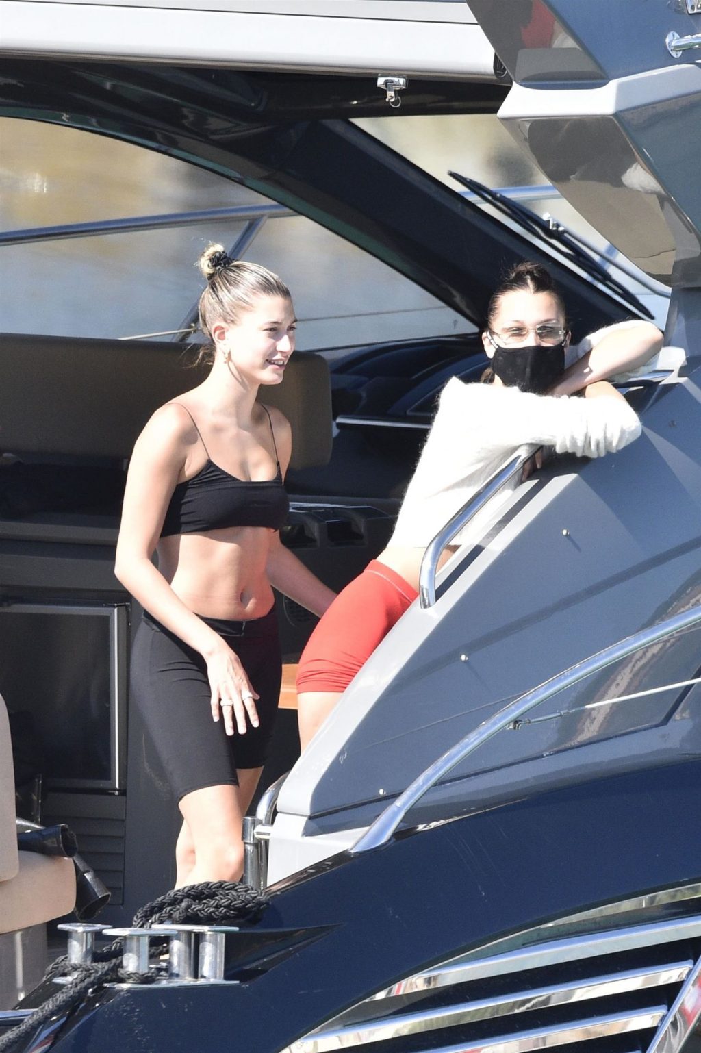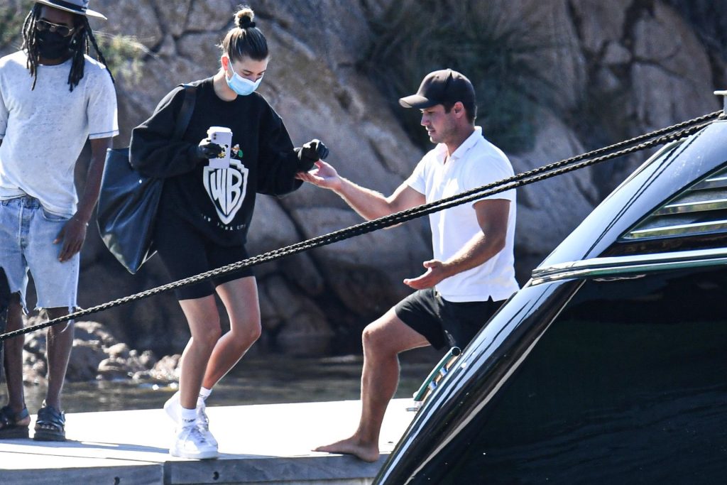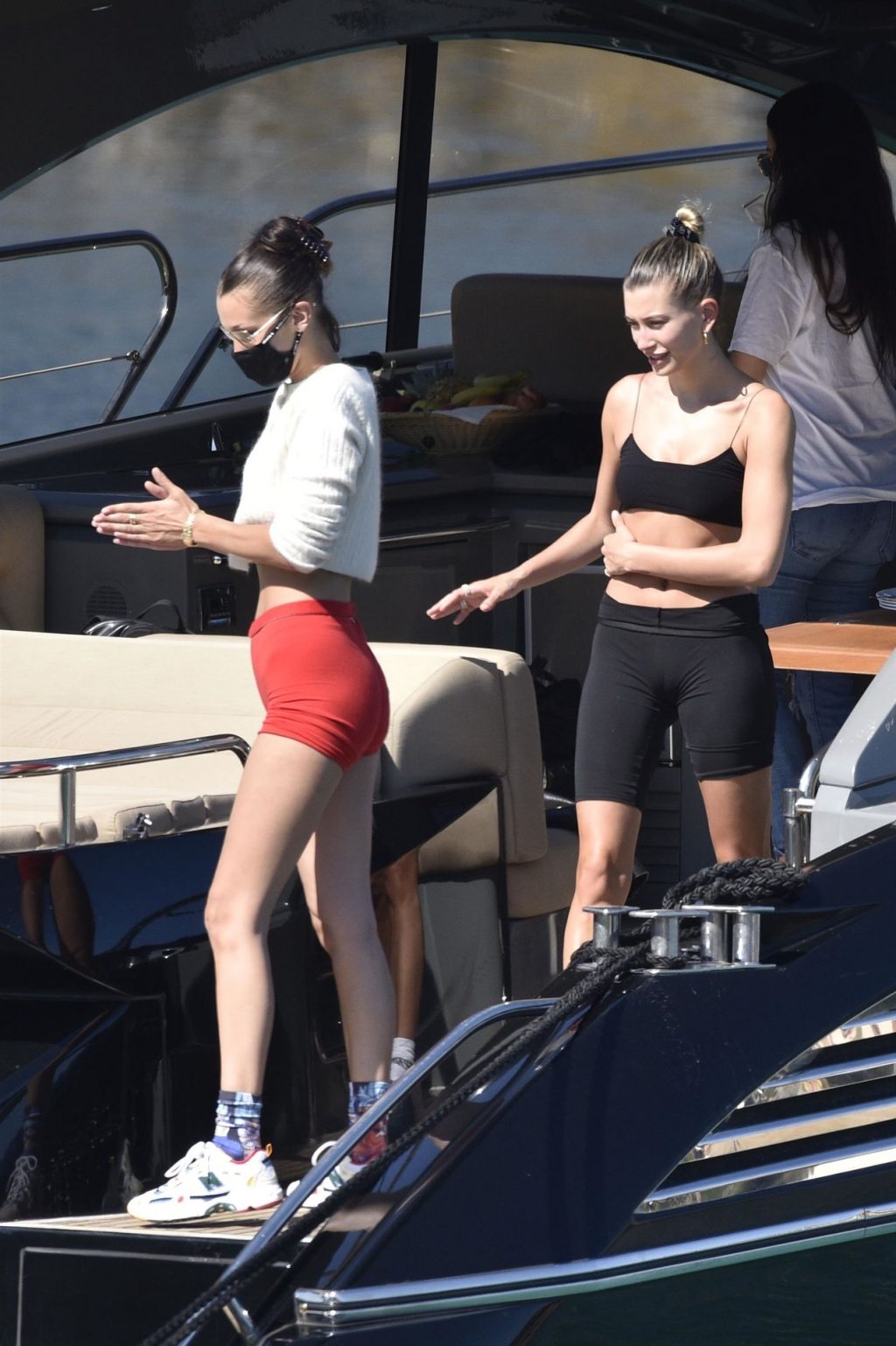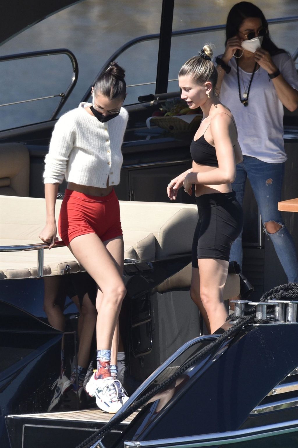 Bella Hadid et Hailey Baldwin sont vues montant à bord d’un yacht aujourd’hui après être arrivées en ville plus tôt – Sardaigne, Italie, 23/06/2020. Les mannequins semblaient impatientes de profiter d’un moment sur l’eau et de déjeuner.