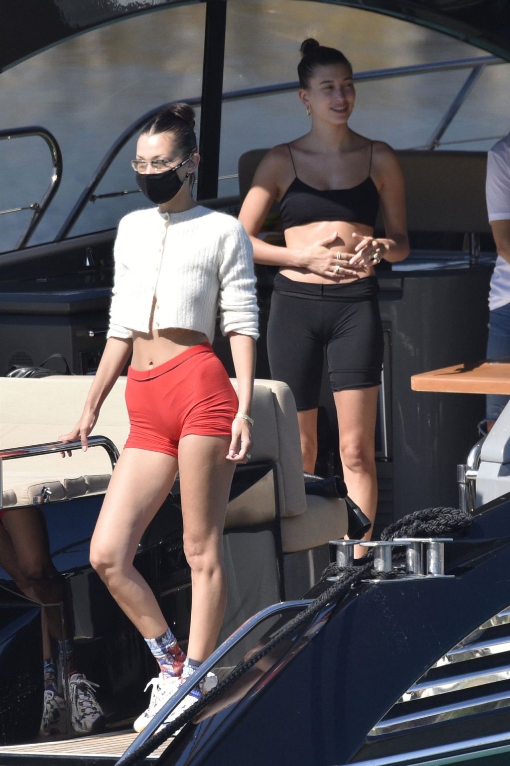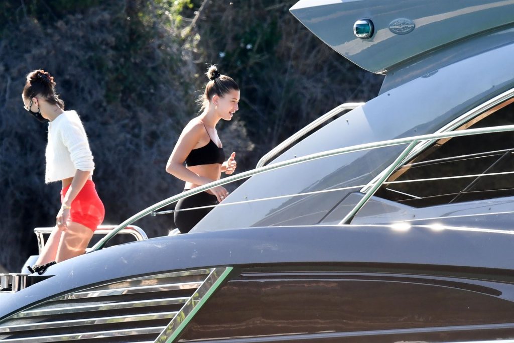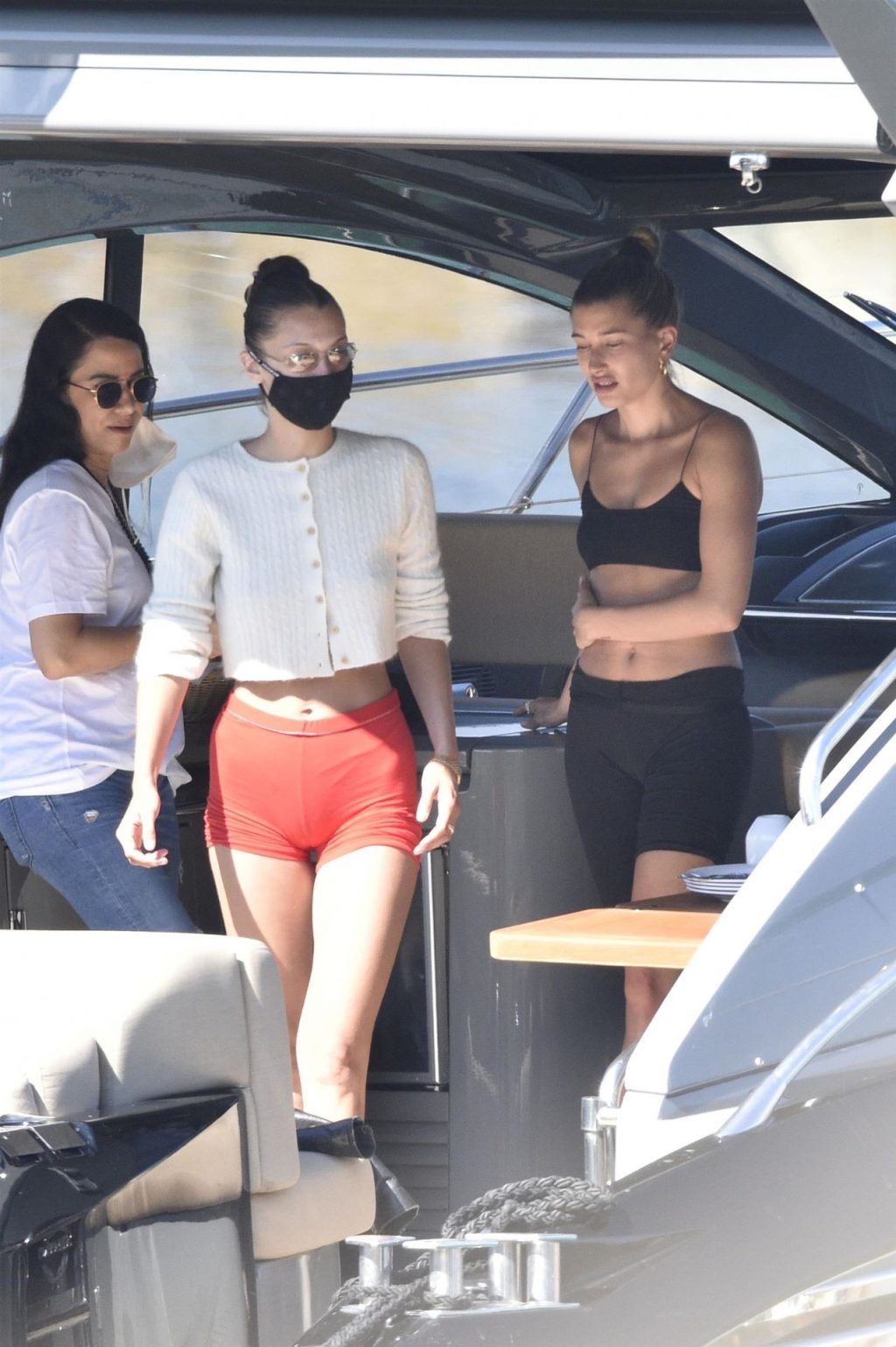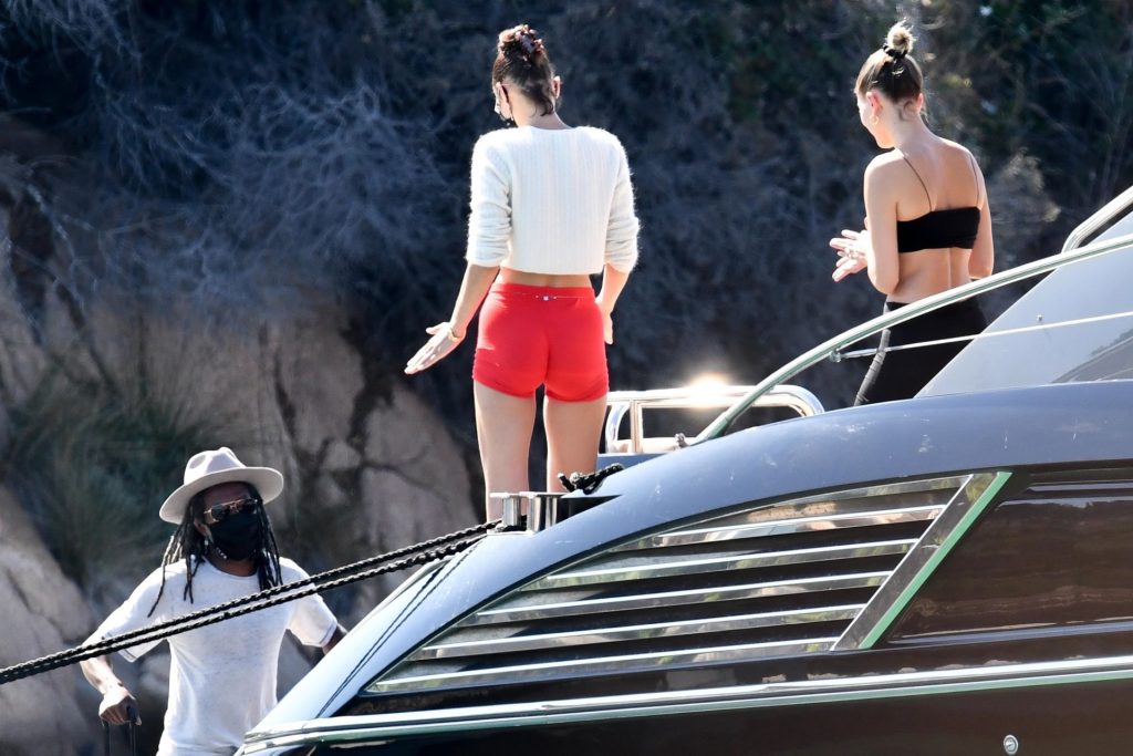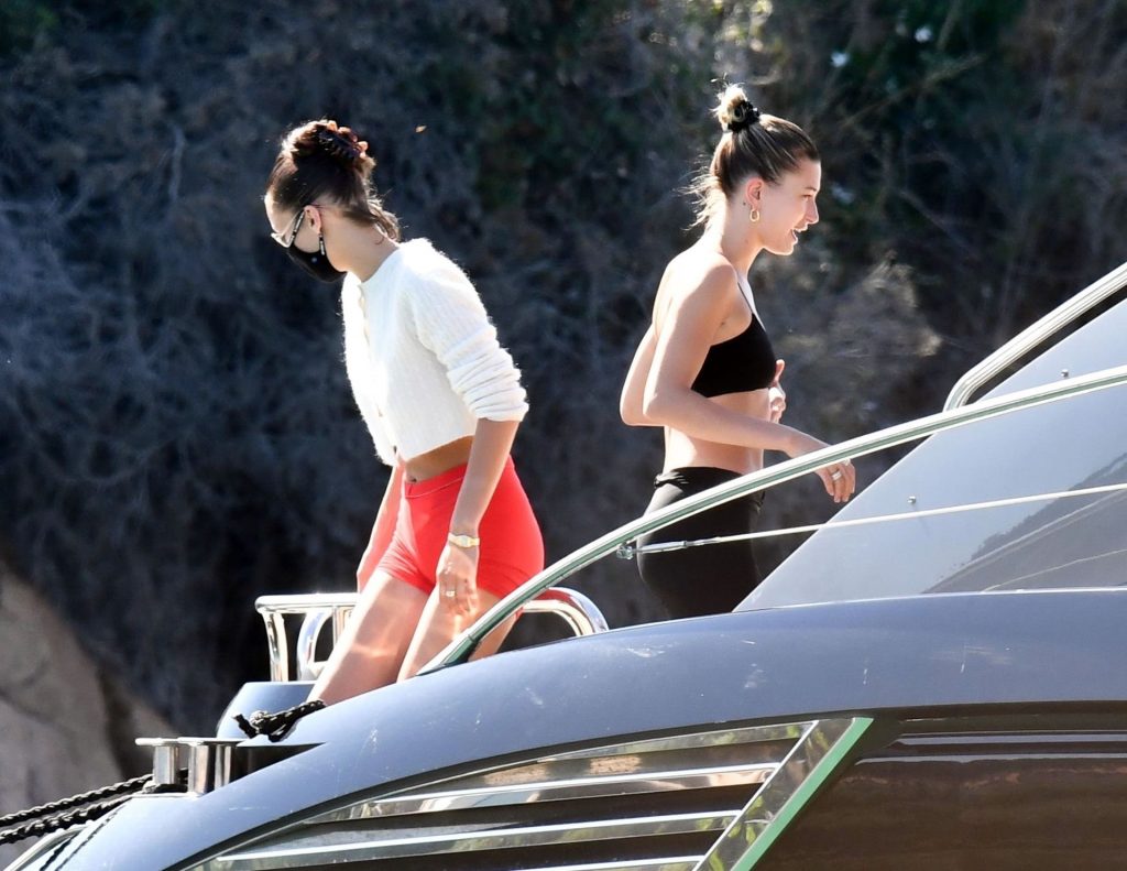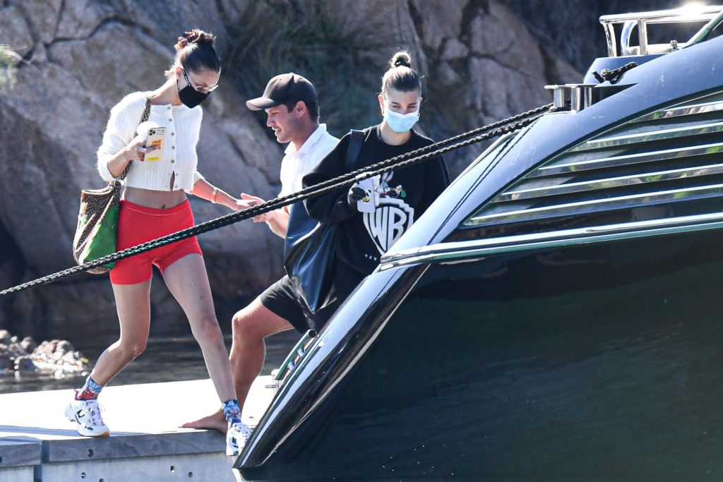 Bella Hadid et Hailey Baldwin sont vues montant à bord d’un yacht aujourd’hui après être arrivées en ville plus tôt – Sardaigne, Italie, 23/06/2020. Les mannequins semblaient impatientes de profiter d’un moment sur l’eau et de déjeuner.