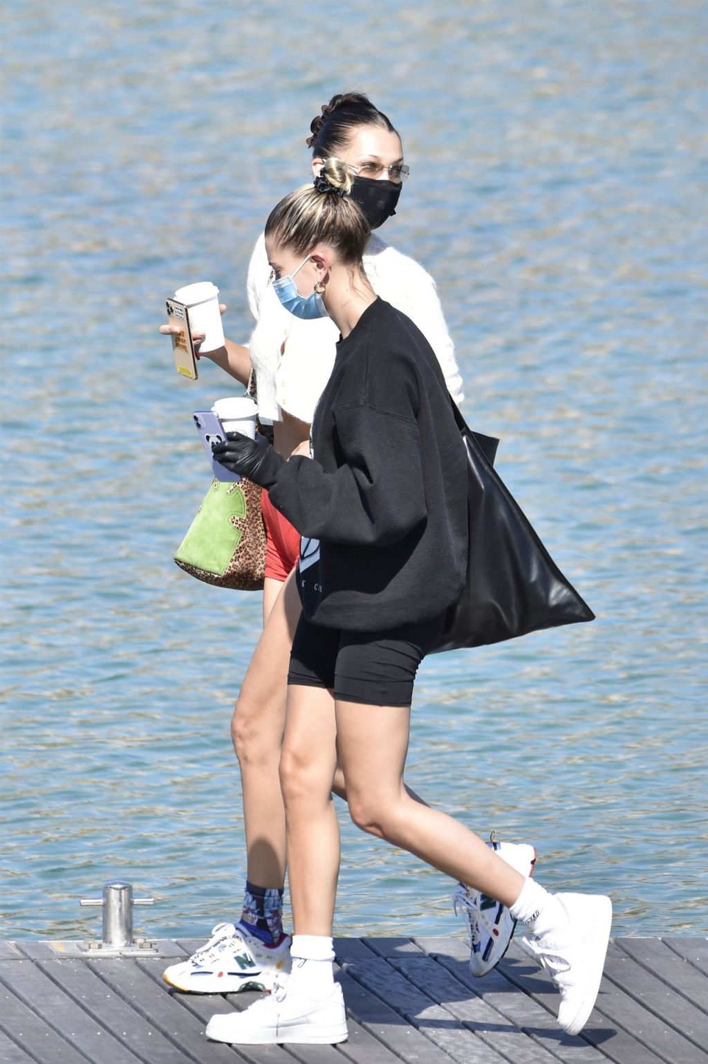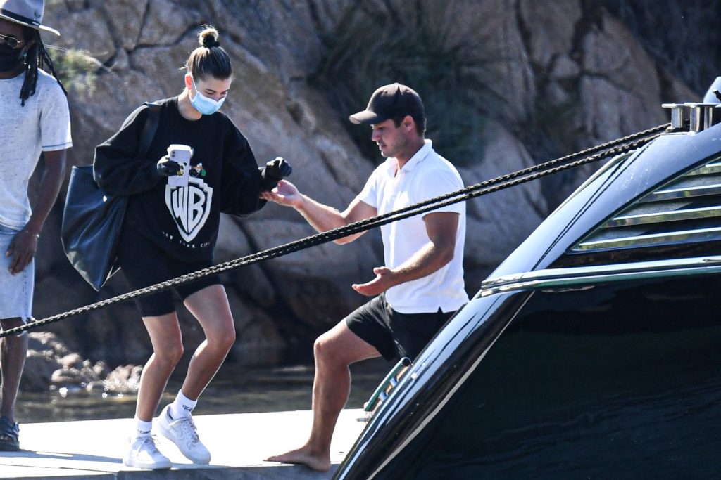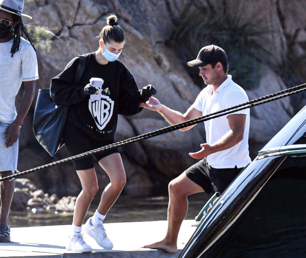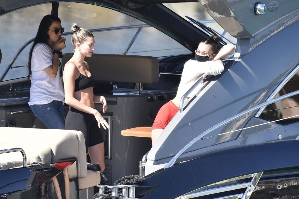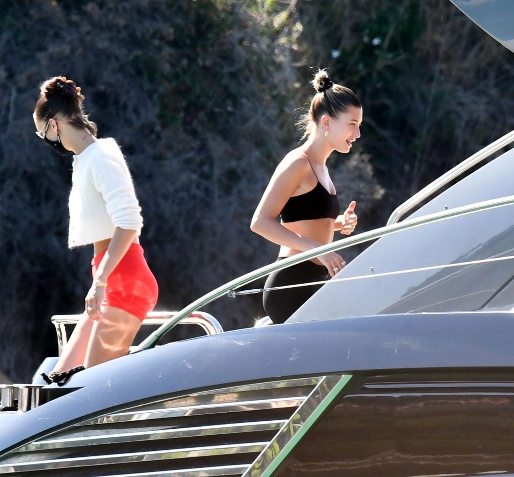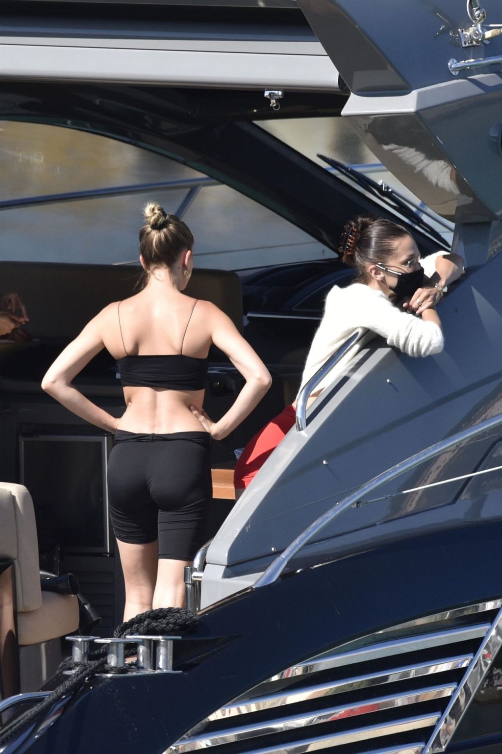 Bella Hadid et Hailey Baldwin sont vues montant à bord d’un yacht aujourd’hui après être arrivées en ville plus tôt – Sardaigne, Italie, 23/06/2020. Les mannequins semblaient impatientes de profiter d’un moment sur l’eau et de déjeuner.