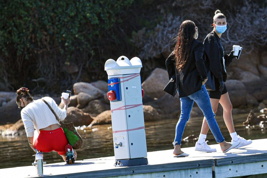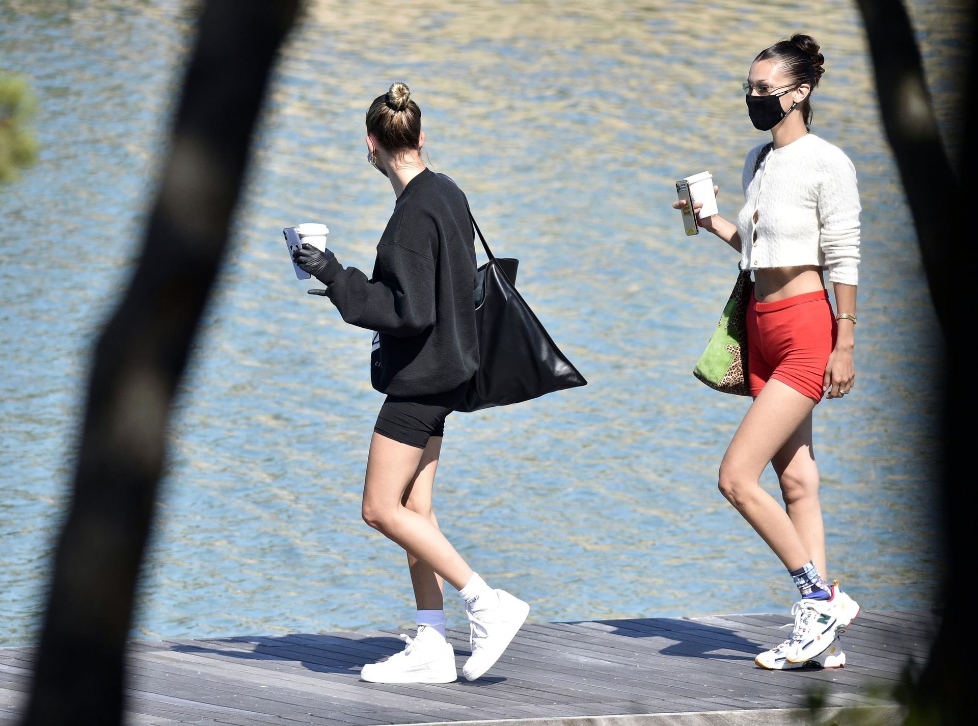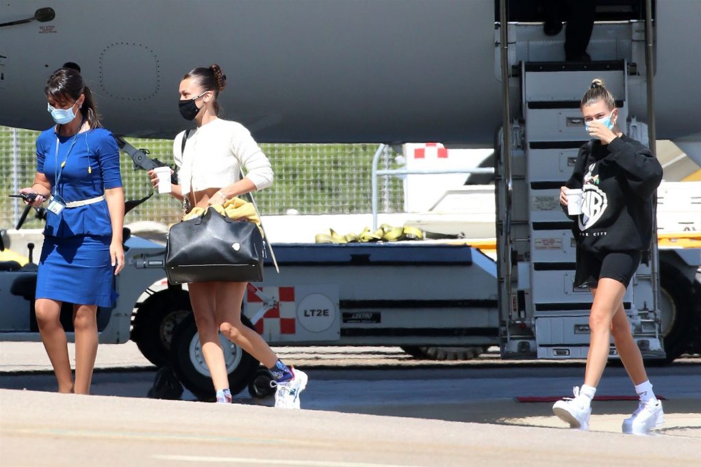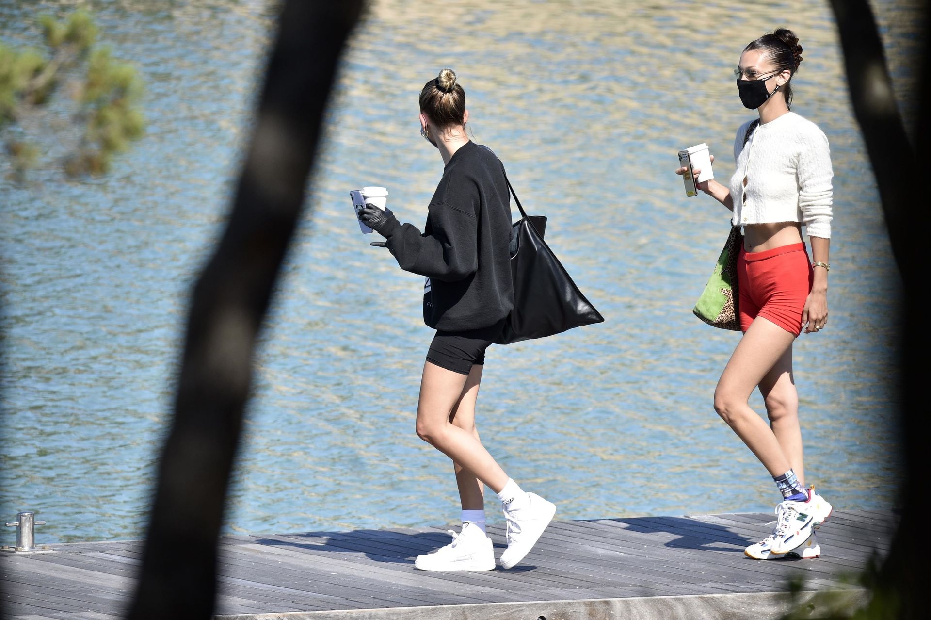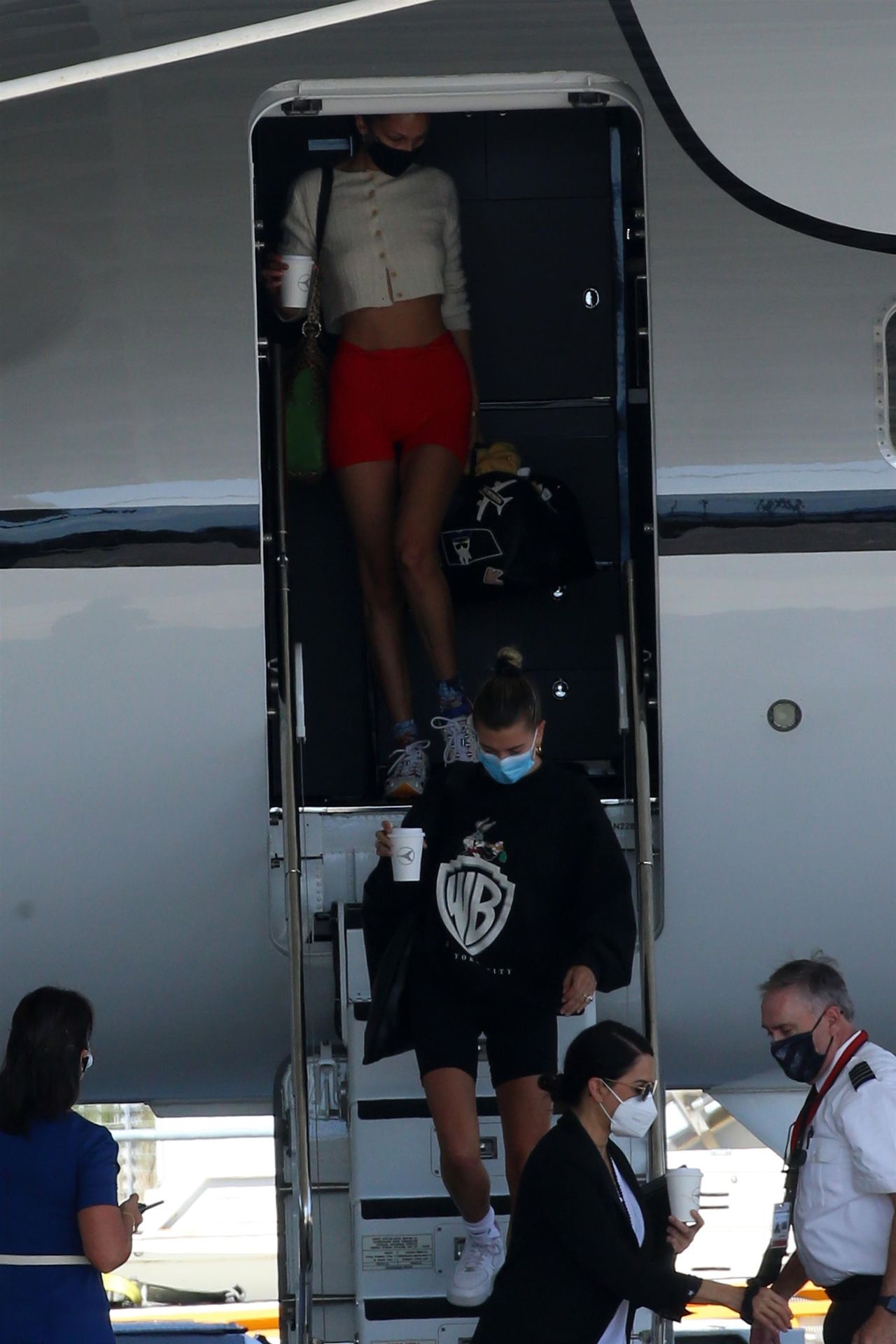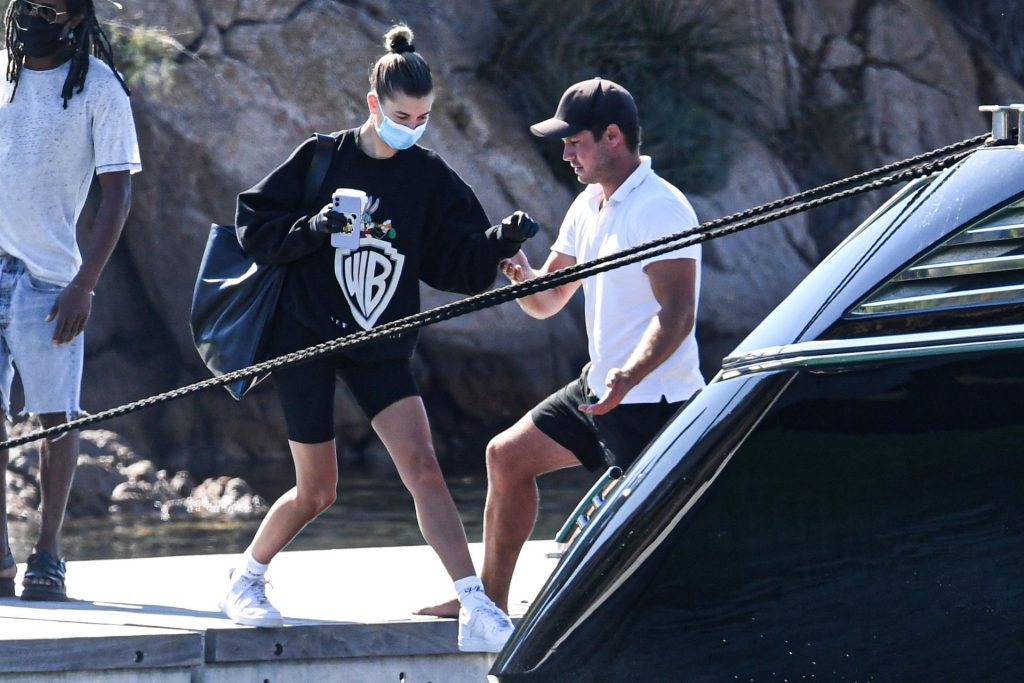 Bella Hadid et Hailey Baldwin sont vues montant à bord d’un yacht aujourd’hui après être arrivées en ville plus tôt – Sardaigne, Italie, 23/06/2020. Les mannequins semblaient impatientes de profiter d’un moment sur l’eau et de déjeuner.