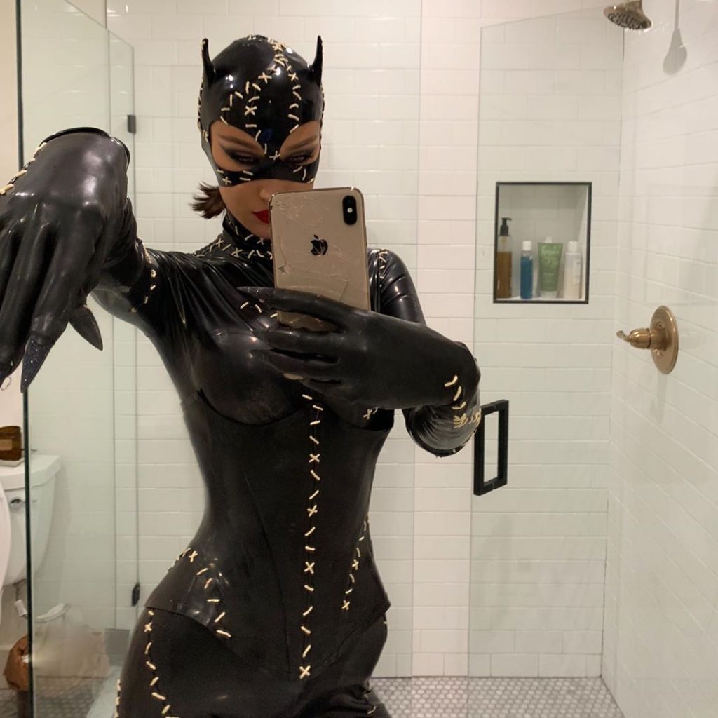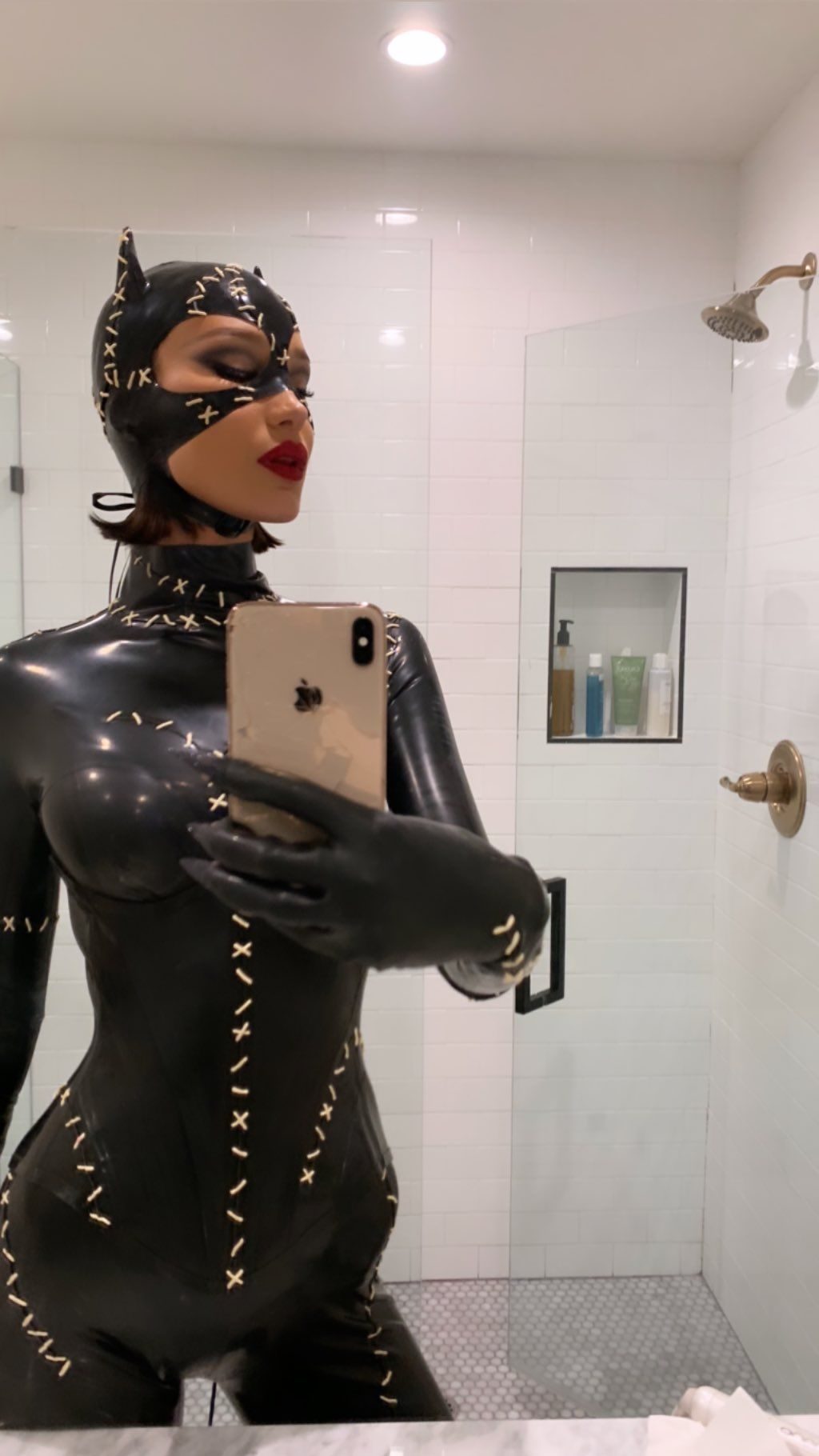 Voici des photos super sexy de Bella Hadid sur Instagram, 11/02/2019. La célèbre mannequin a montré son corps mince, portant un costume en latex de Catwoman pour Halloween, 11/02/19. Elle a besoin de lait Fappening !