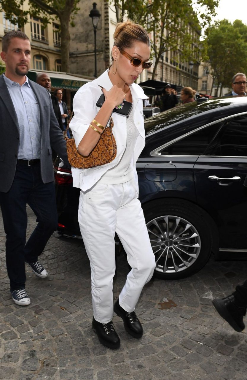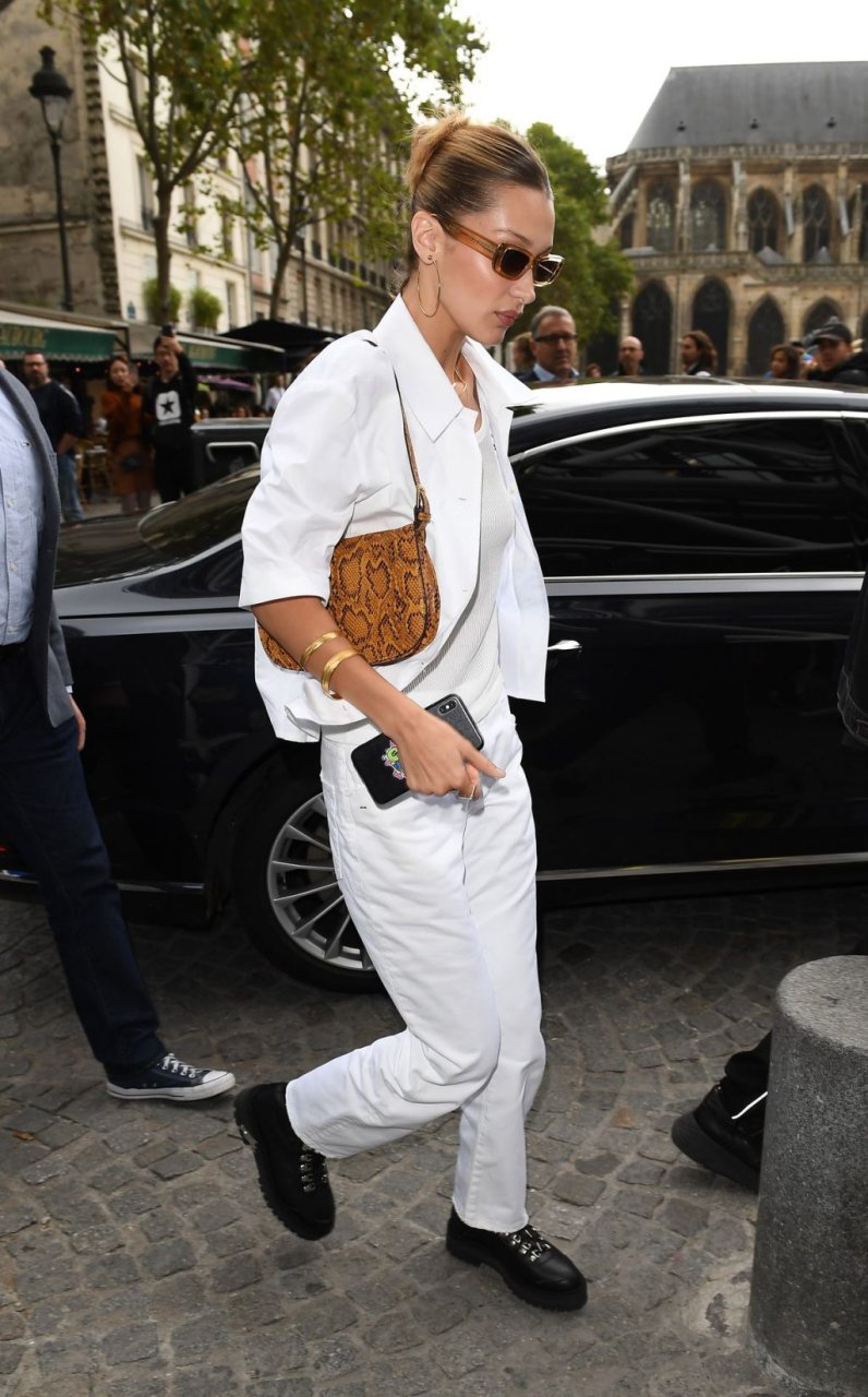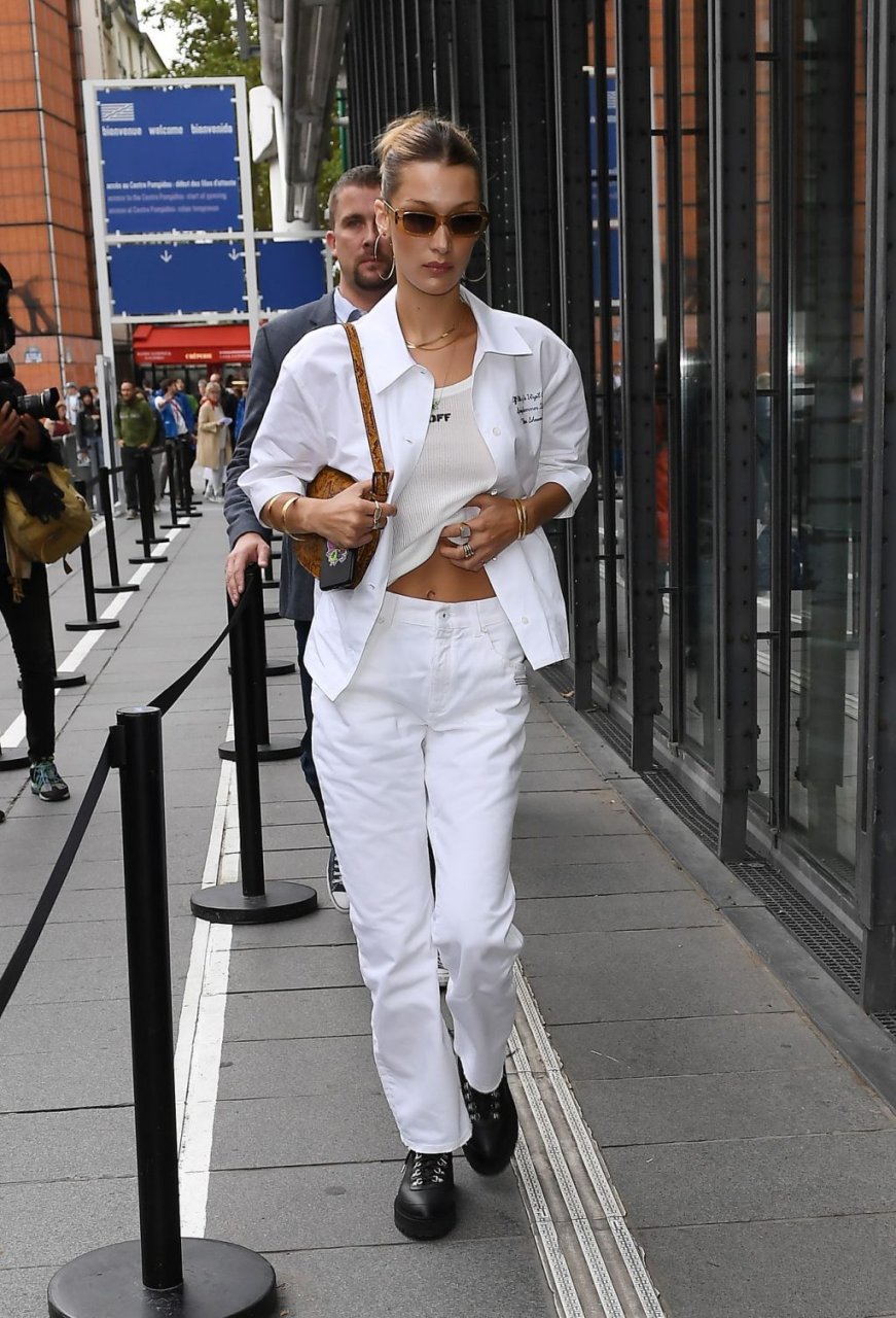 Bella Hadid a été vue quittant leur hôtel Le Royal Monceau, vêtue d’Off-White à l’occasion du défilé de la marque, lors de la Fashion Week de Paris, le 26/09/2019.