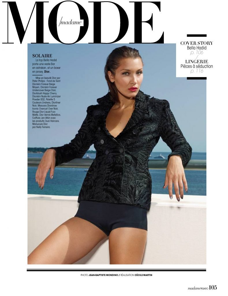 Bella Hadid est dans le magazine Madame Figaro, 27/10/2017. Photos par Jean-Baptiste Mondino. Isabella Hadid est un top modèle américain de la mode, star de la télé-réalité, actrice. Âge – 21 ans.