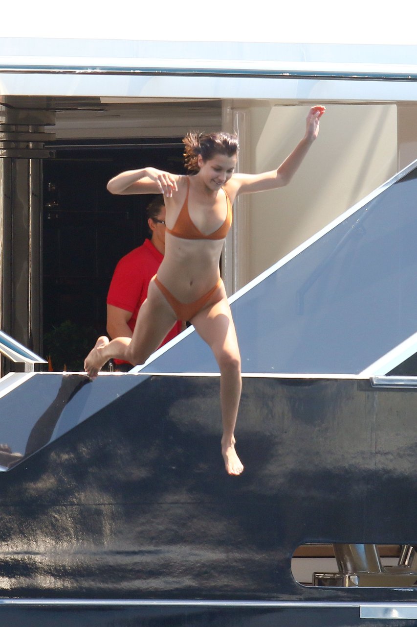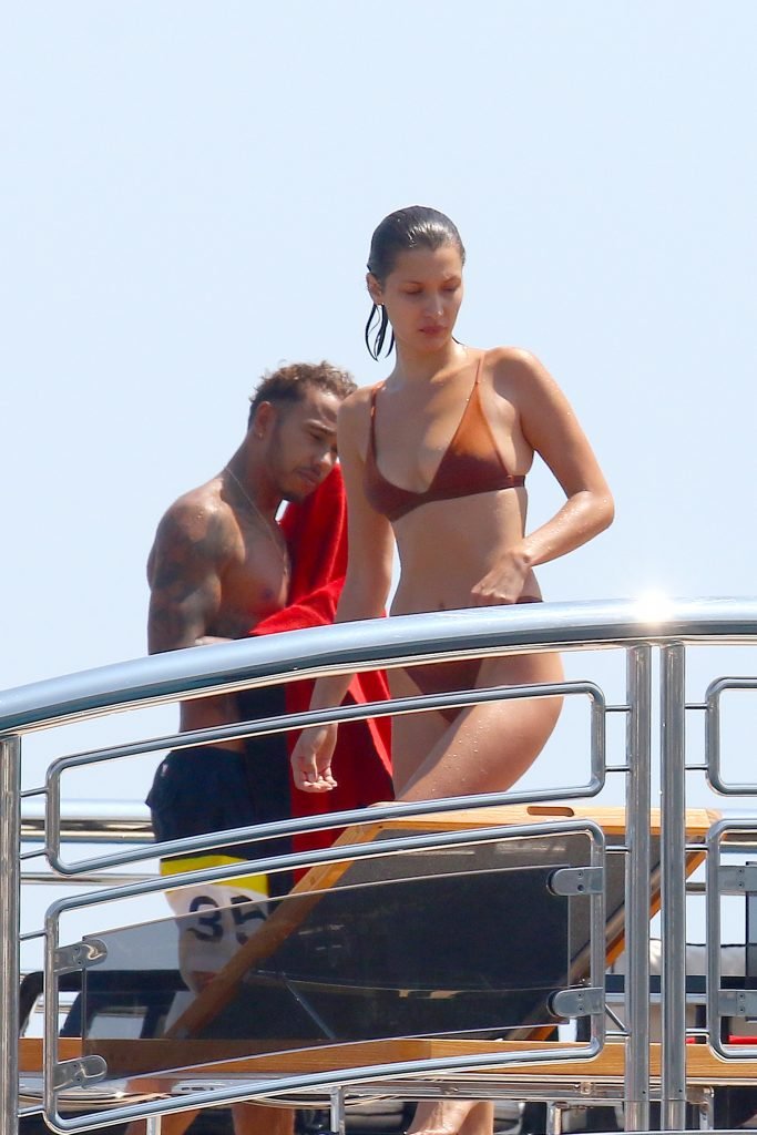 Bella Hadid s’amuse sur un yacht à Monte Carlo, 29/05/2017. Isabella Hadid est un mannequin de mode américain, actrice. Elle est née à Los Angeles (Californie). Âge – 20.