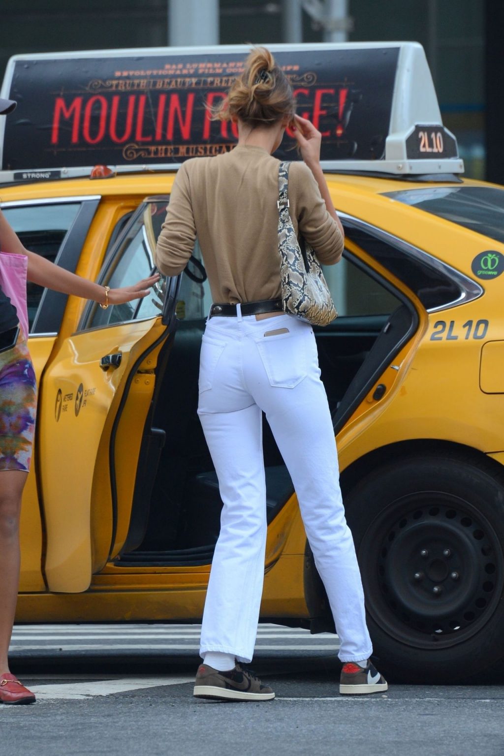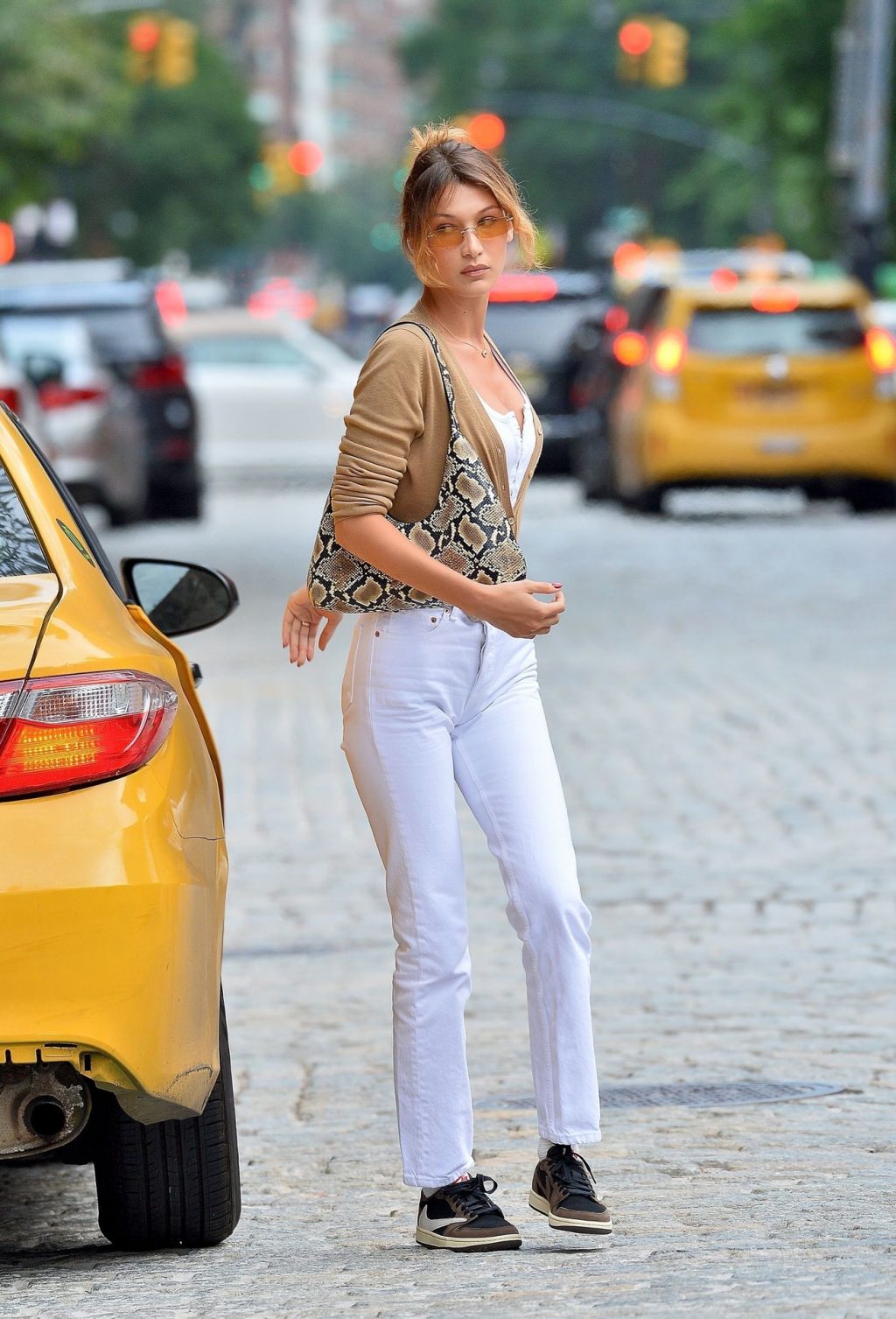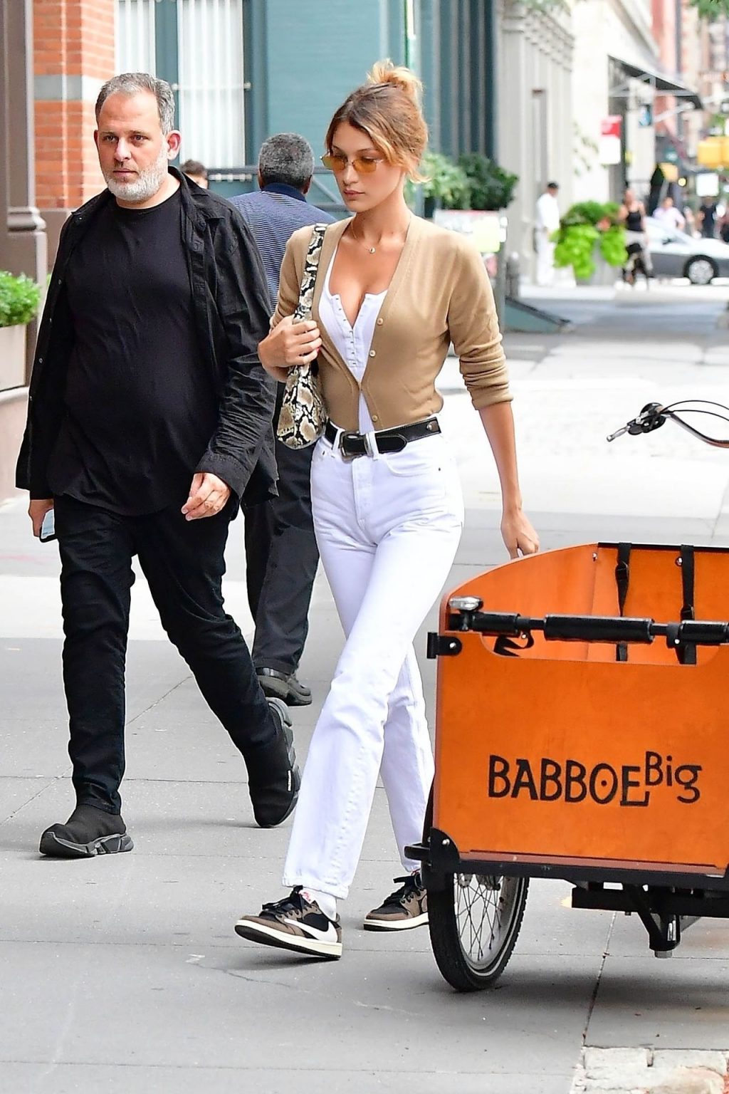 Model Bella Hadid affiche un décolleté et son nouveau style blond alors qu’elle sort à New York, le 17/07/2019. Elle triche avec sa poitrine !