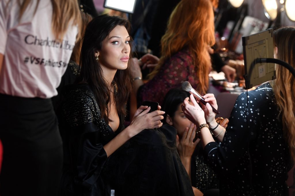 Mannequin/actrice/star de la télévision Bella Hadid est sur le podium du défilé Victoria’s Secret Fashion Show 2018 tenu au Pier 94 à New York, le 08/11/2018 + quelques photos sexy en transparence d’une fête VS.