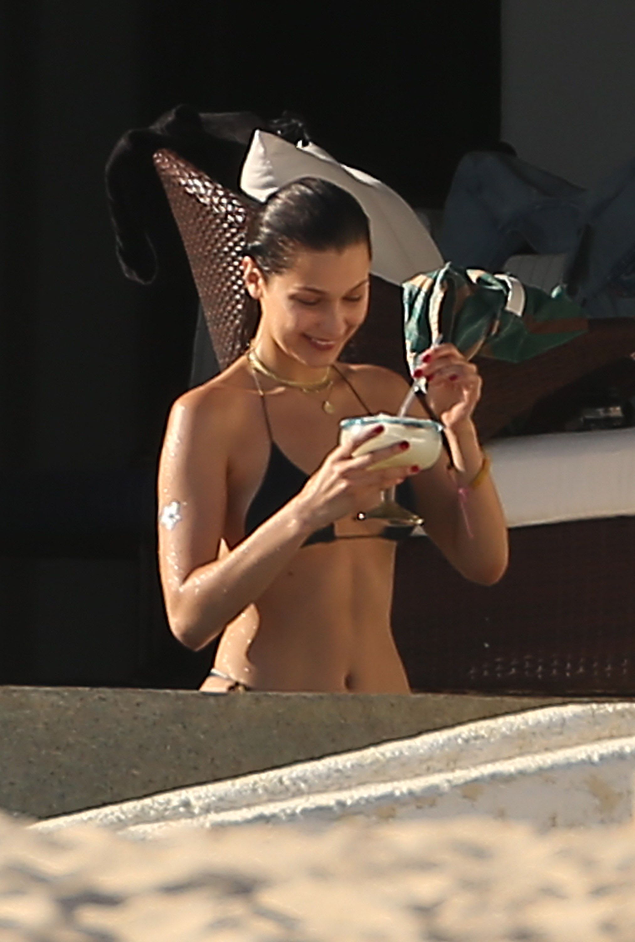 Bella Hadid exhibe son corps mince parfait à Cabo San Lucas, au Mexique, le 01/04/2017. Bella Hadid est mannequin et actrice (Poster Girl (court métrage vidéo, 2017)) de Los Angeles. Âge – 20 ans (née le 9 octobre 1996).