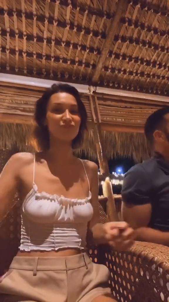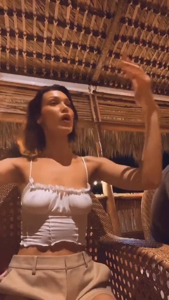 Le mannequin Bella Hadid montre ses poitrines en dansant sans soutien-gorge dans un haut blanc dans cette courte vidéo TikTok, 22/03/2020.