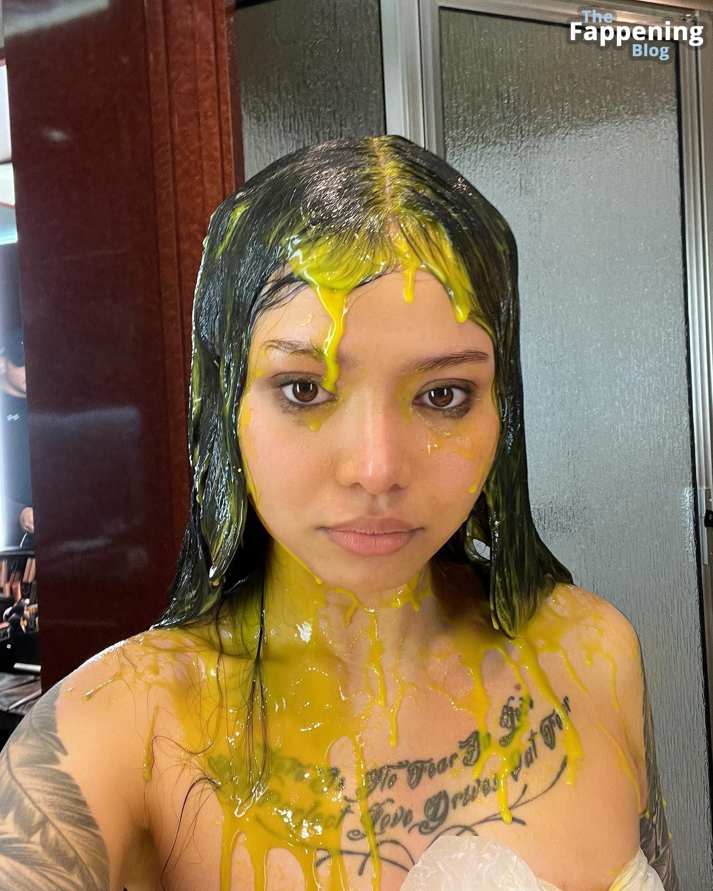 Comment diable est-ce sexy de se parer d'autant de tatouages, de se couvrir de ce qui ressemble à des œufs pourris ou de se faire photographier avec un chien qui semble sur le point de se suicider pour être avec une telle garce moche ? Tout espoir de te sauver, mon amour, est de remonter le moral du chien en sortant le beurre de cacahuète et en faisant l’évidence. Espérons que le chien n’est pas un lâcheur...