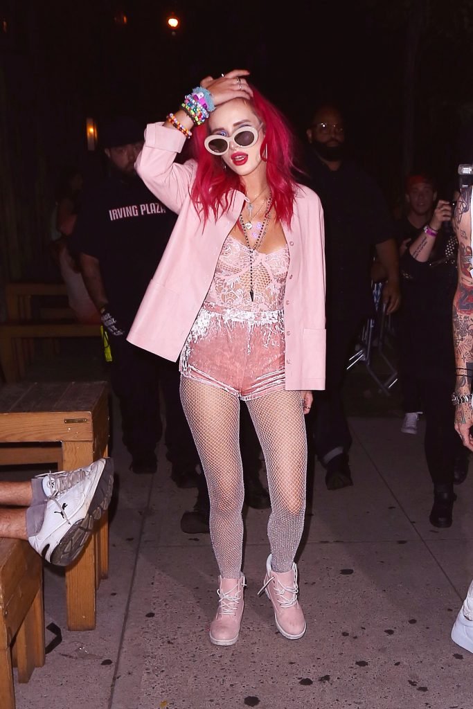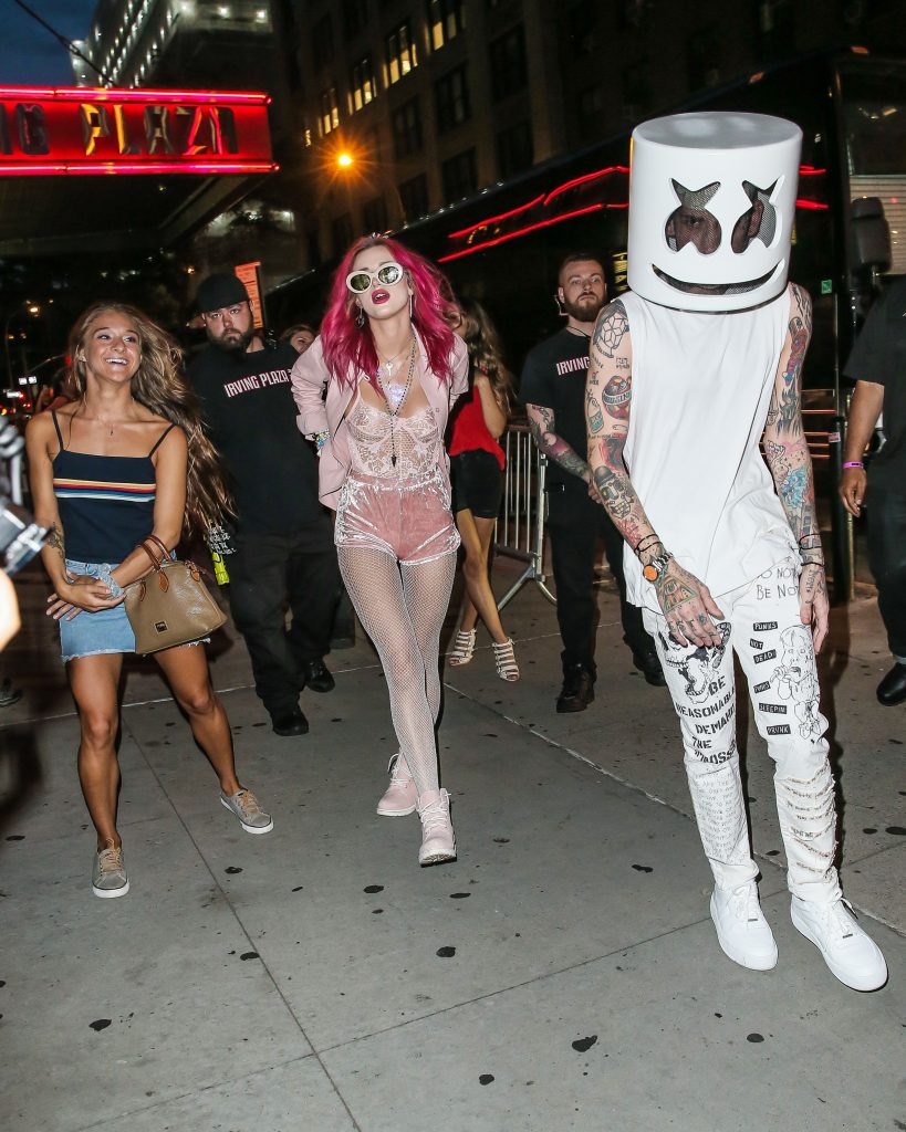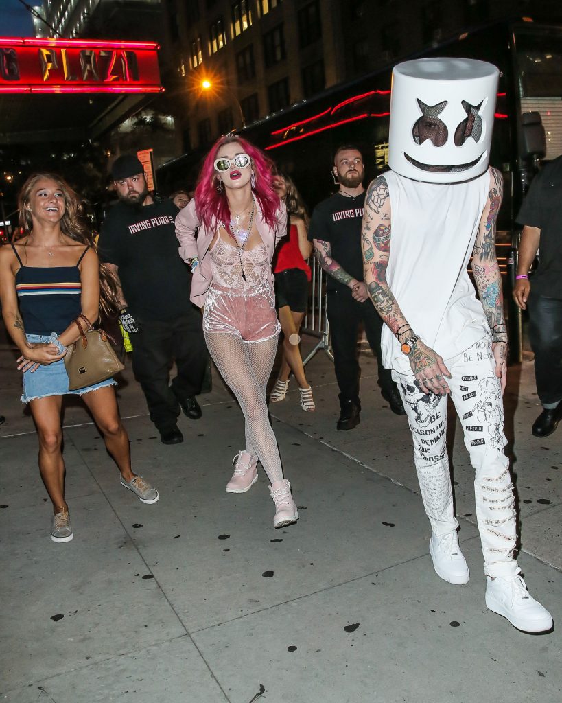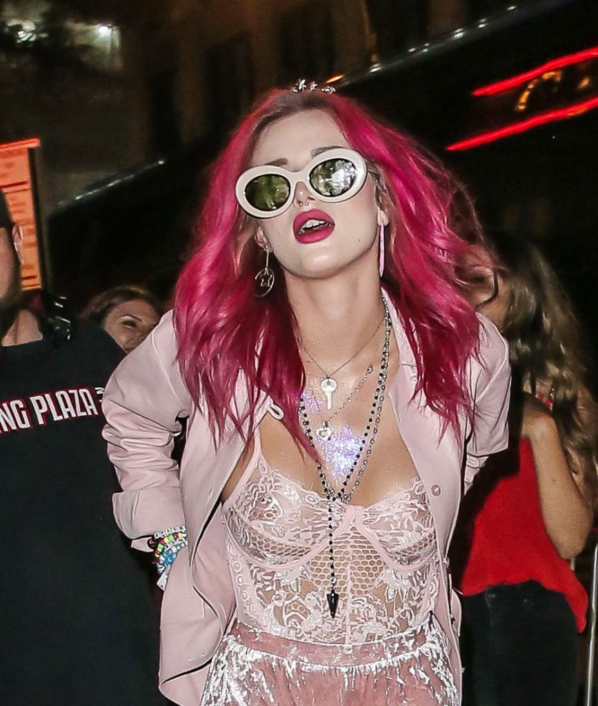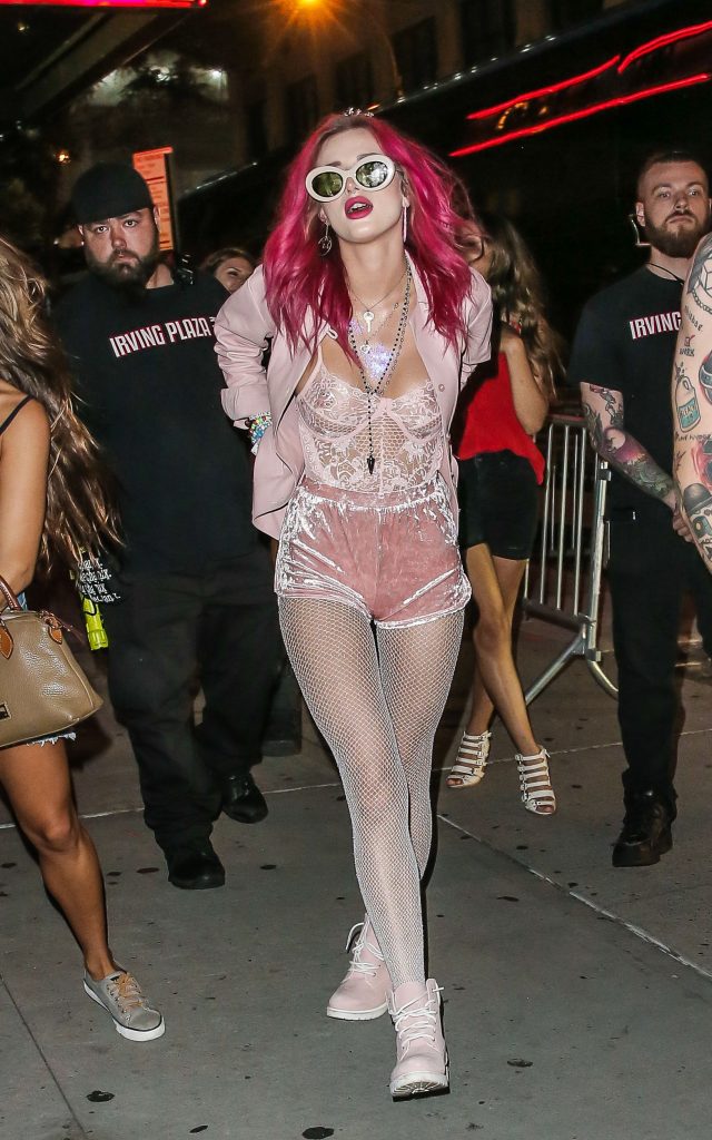 Bella Thorne porte une tenue de lingerie rose transparente à l’Irving Plaza à New York, le 08/07/2017. Bella Thorne est mannequin, actrice (Be Here Now), chanteuse et star des réseaux sociaux. Âge : 19 ans.