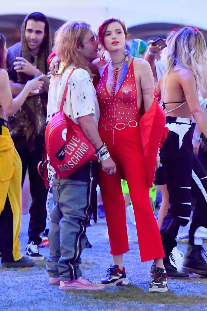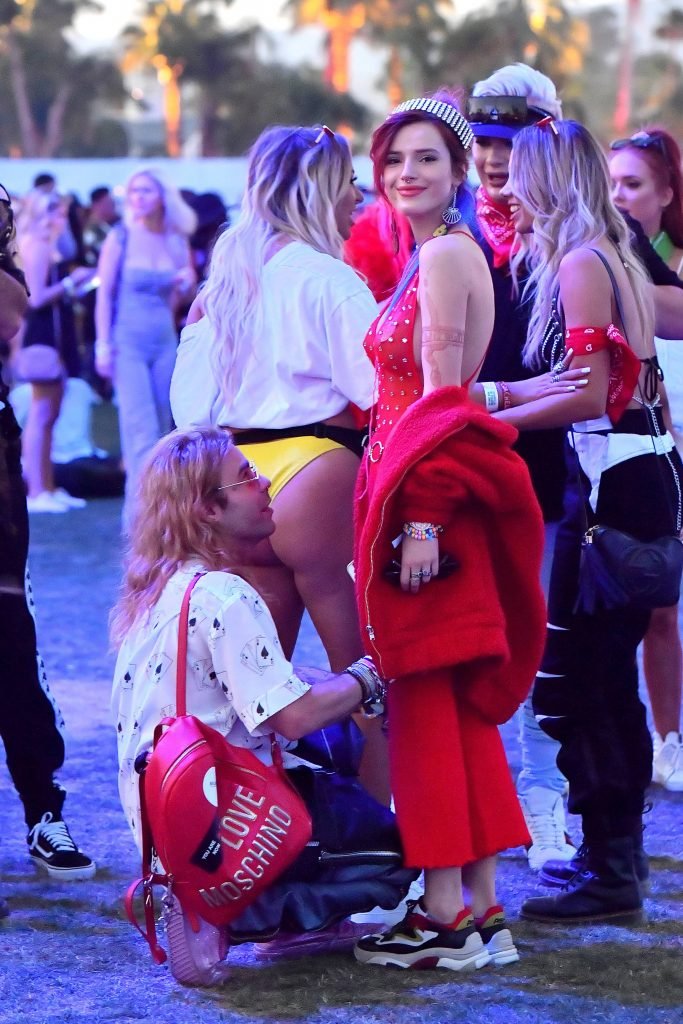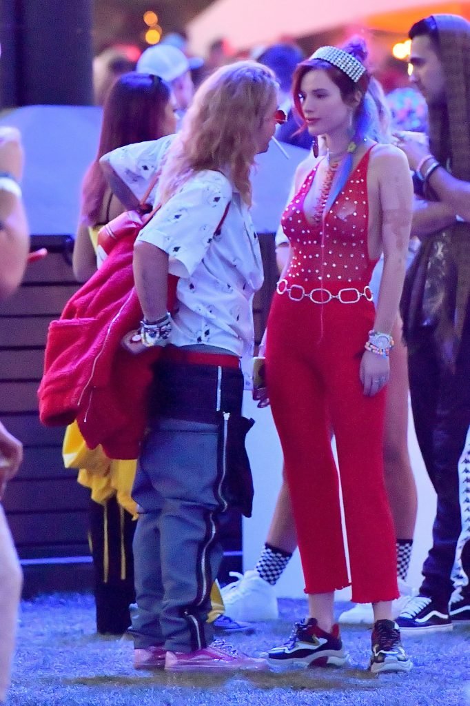 Chanteuse et actrice Bella Thorne, 20 ans, porte une tenue rouge alors qu’elle passe du temps avec Mod Sun à Coachella, le 14/04/2018. Le couple heureux, accompagné d’amis ainsi que de la sœur de Bella Dani et de l’amie Tana, a été vu en train de danser et de passer un excellent moment dans la section VIP avant d’aller regarder la performance de Beyoncé.