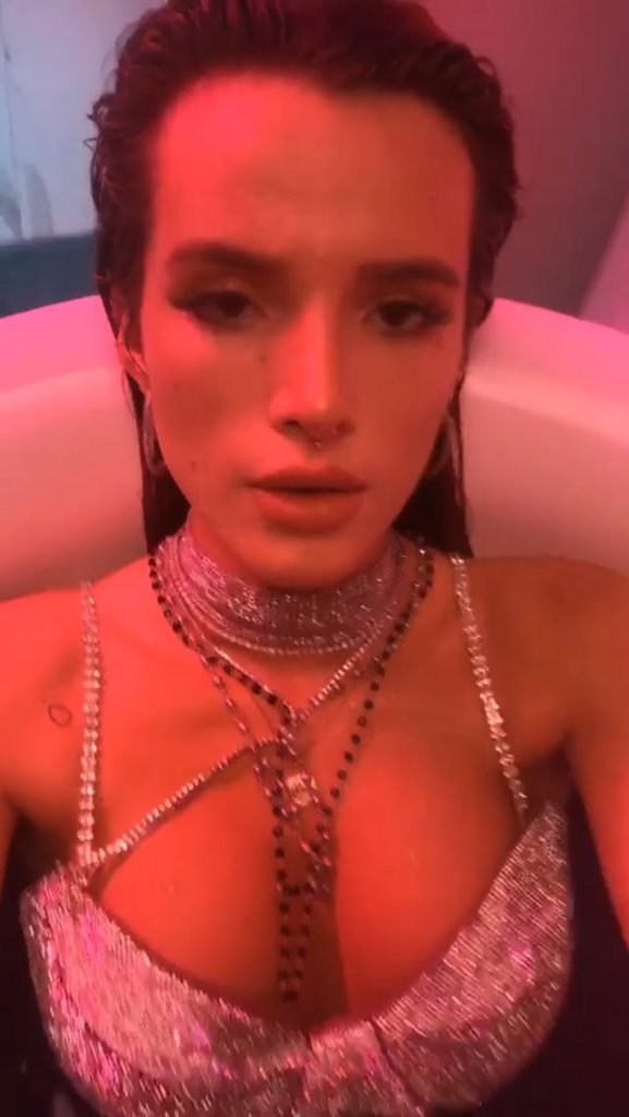 Découvrez des photos BTS et une vidéo tout-en-un avec la célèbre mannequin et actrice Bella Thorne dans un bain – Instagram, Snapchat, 28/07/2017.