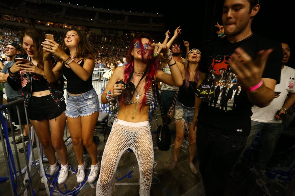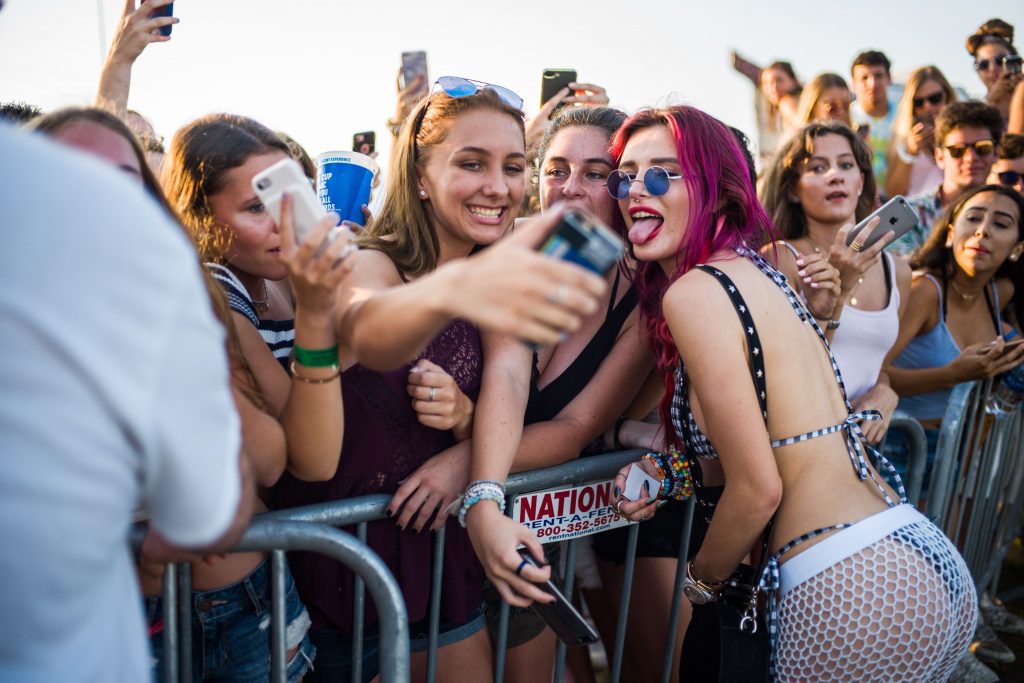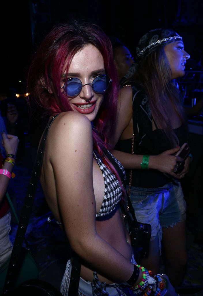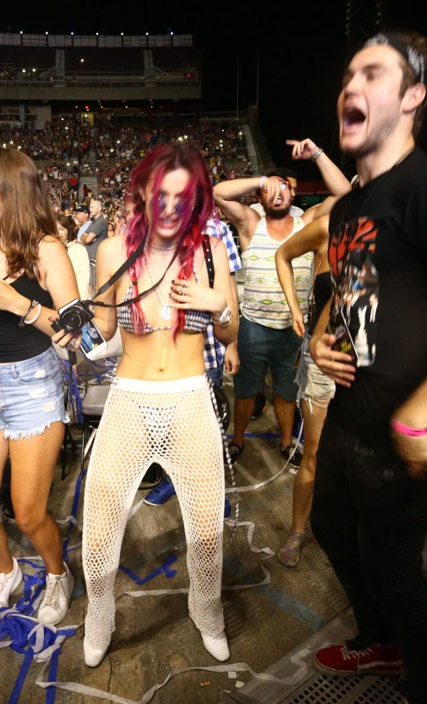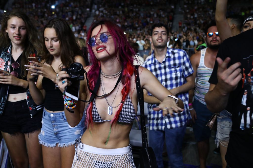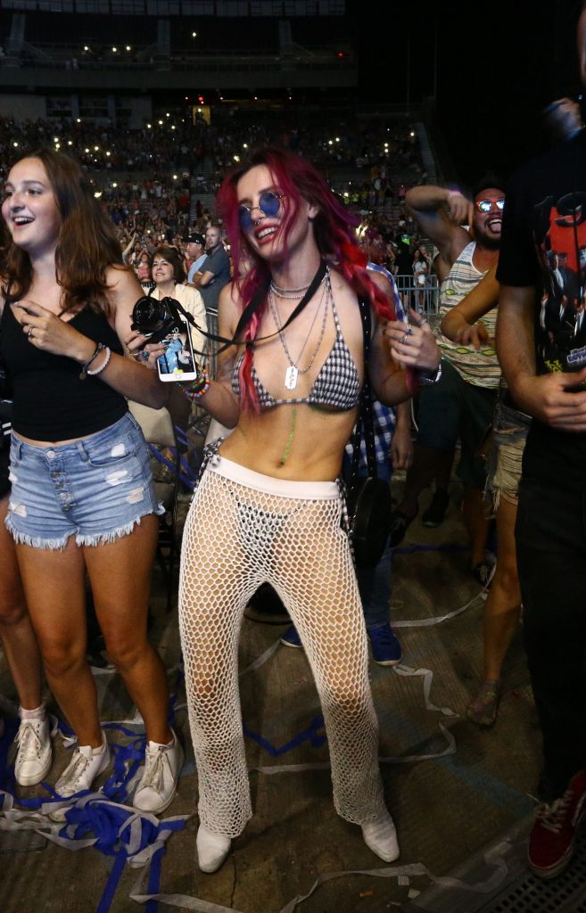 Bella Thorne porte un haut de bikini et un pantalon en résille au Festival Billboard Hot 100 2017 à Wantagh, 0 19/08/17. Bella Avery Thorne est une actrice et chanteuse américaine. Âge : 19.
