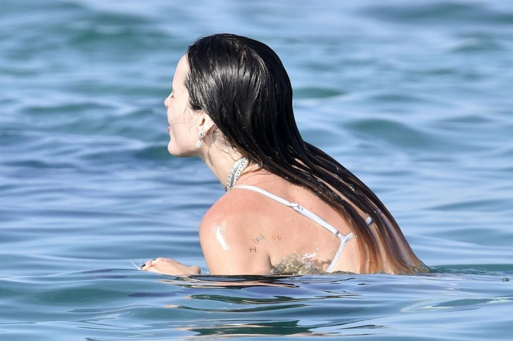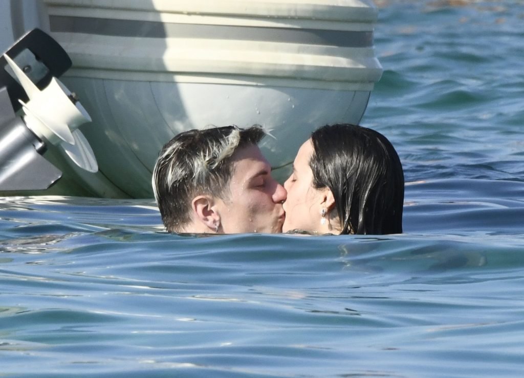 Le couple amoureux est vu en train de nager, de s’embrasser dans l’eau et Bella trouve même le temps de boire une bière en mer ! Pendant ce temps, le couple heureux a l’air incroyable en maillots de bain, Bella porte un bikini argenté.