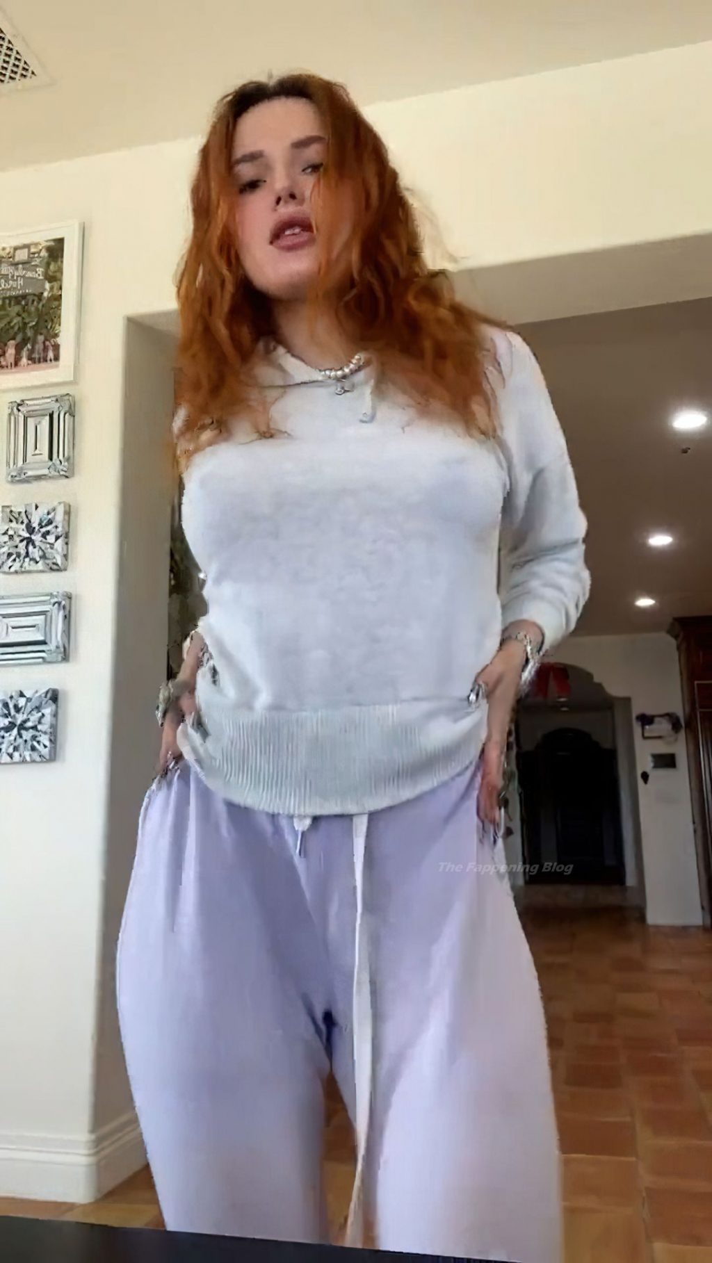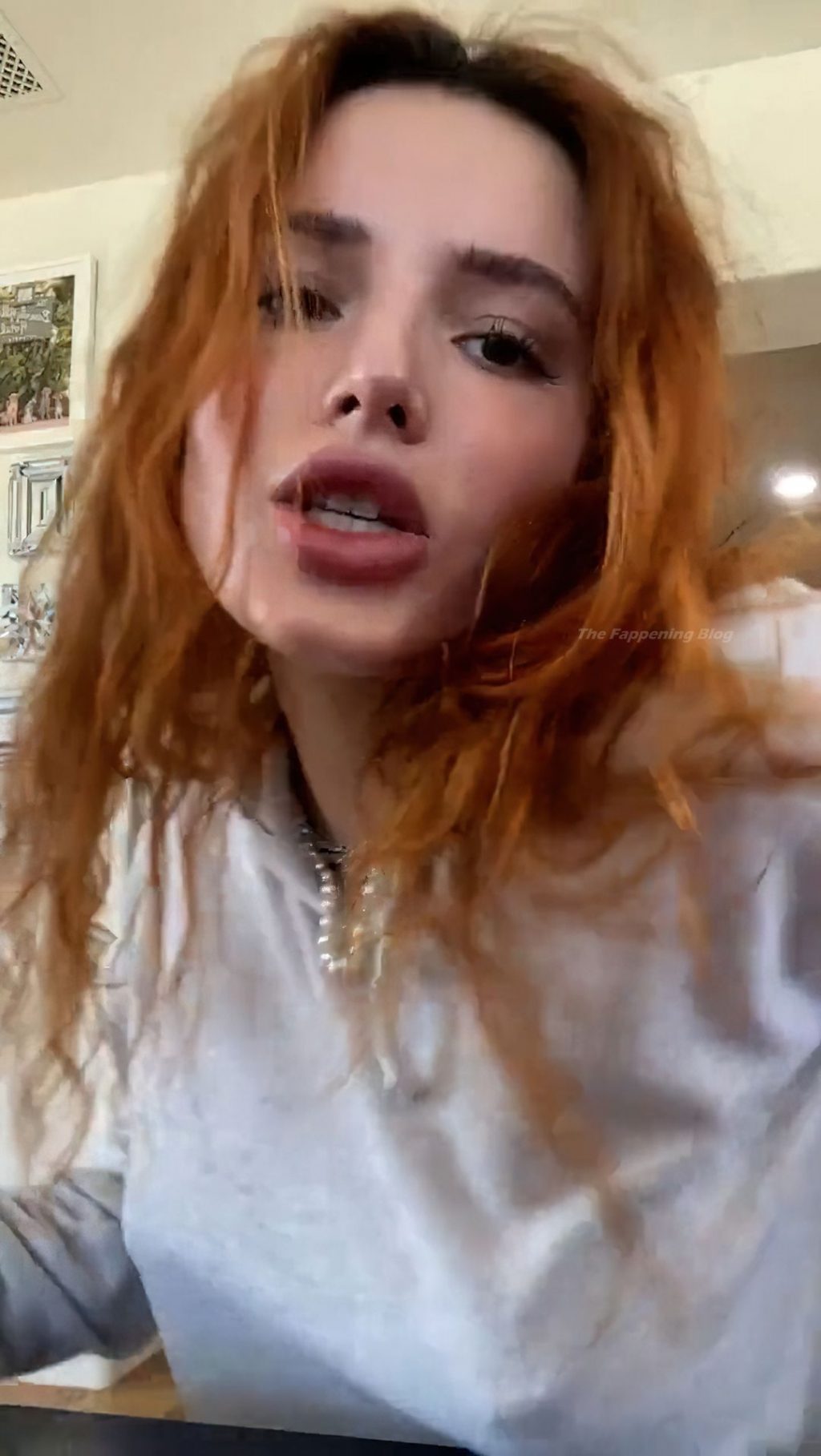 Brassière La star de The Fappening Bella Thorne exhibe ses seins avec des tétons percés et secoue ses fesses dans la vidéo en direct Instagram, 03/04/2021.