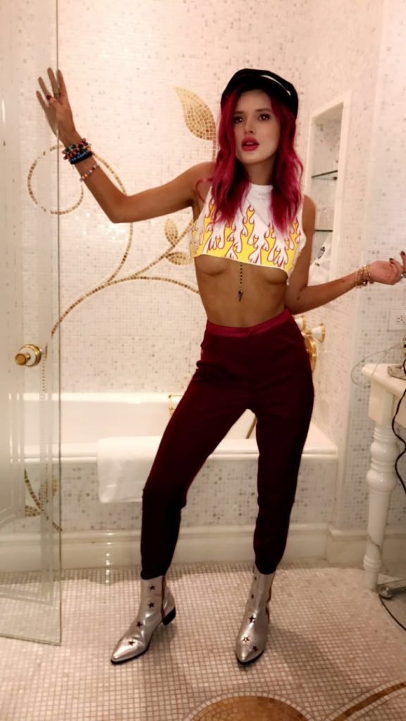 Bella Thorne montre un joli underboob sur Instagram, Snapchat, 07/07/2017. Bella Thorne est mannequin, actrice de cinéma (Be Here Now), chanteuse. Âge : 19 ans.