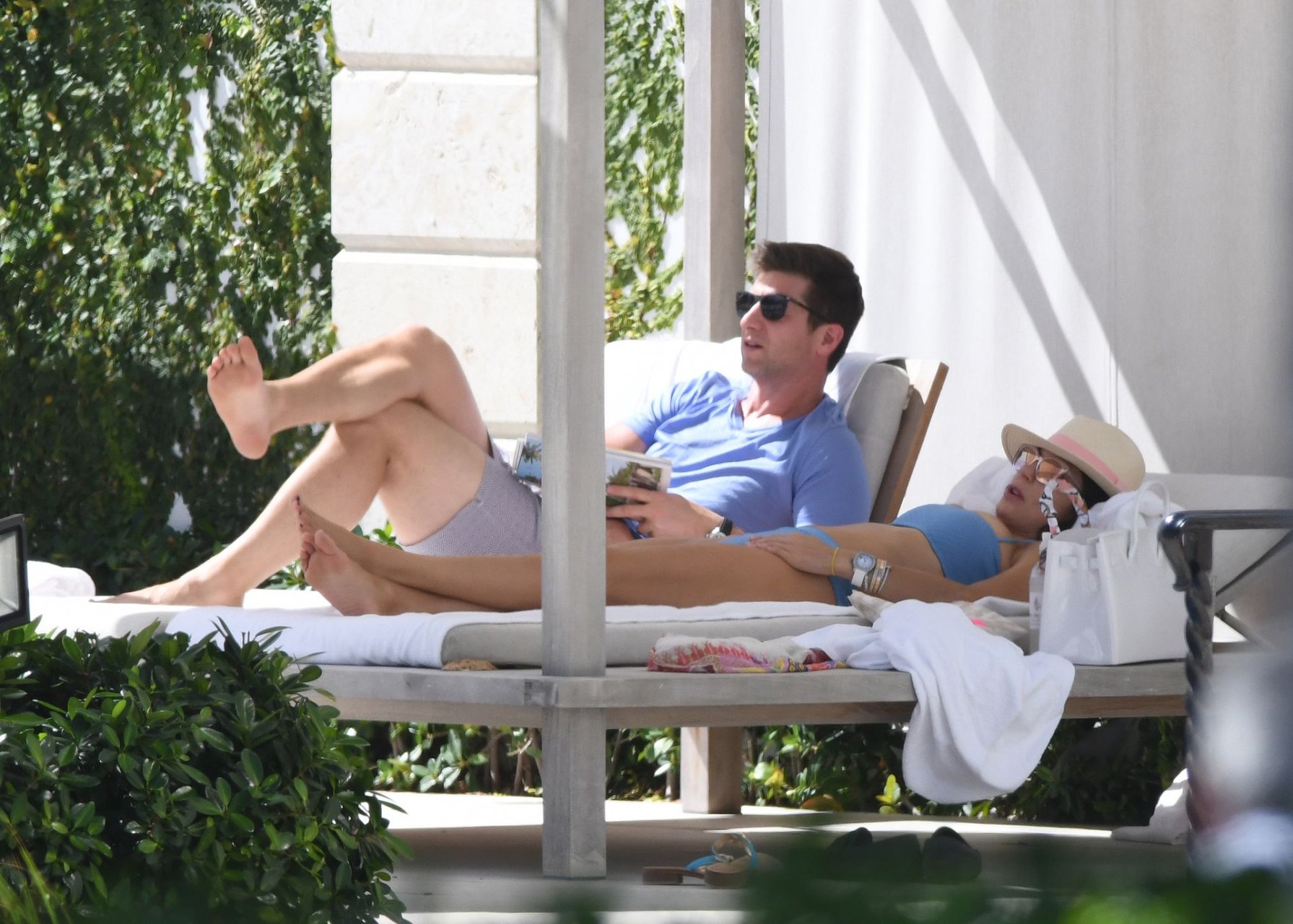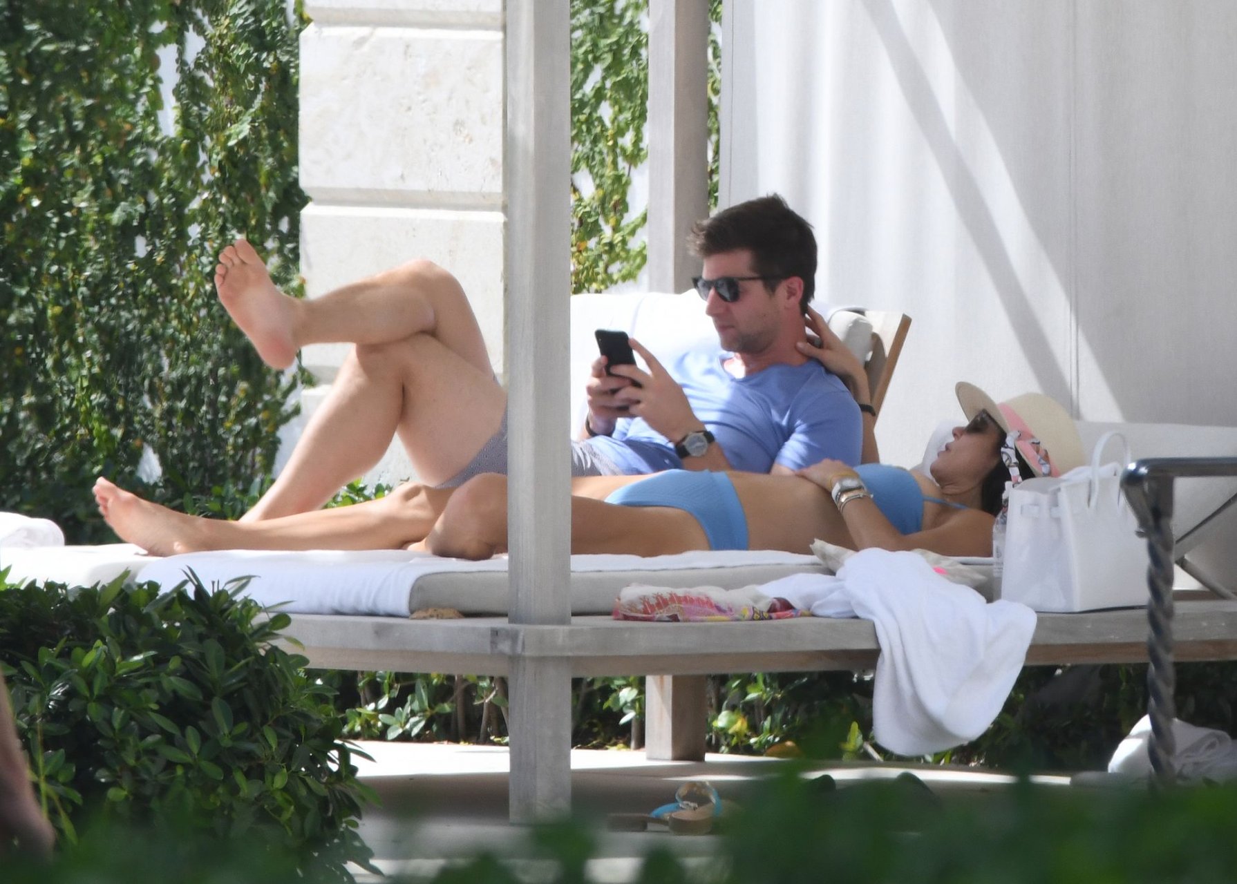 Bethenny Frankel (48 ans) porte un bikini bleu alors qu’elle se détend au bord de la piscine avec son petit ami Paul Bernon à Miami, le 23/02/2019. La star de Real Housewives of New York a même montré un peu d’affection en public avec son nouveau compagnon alors qu’ils se prélassaient sur les transats.