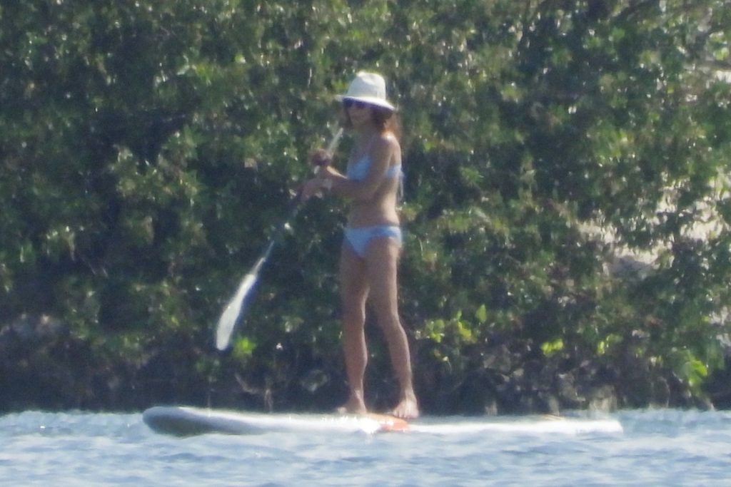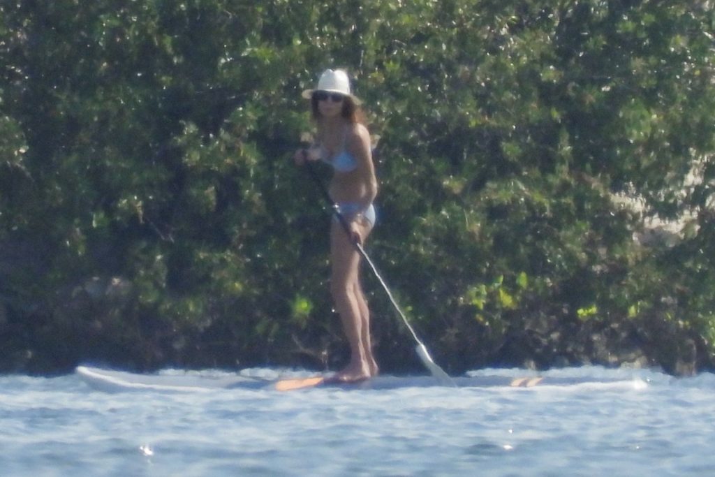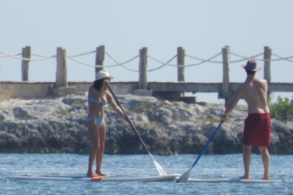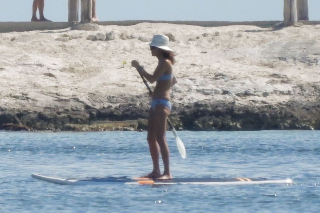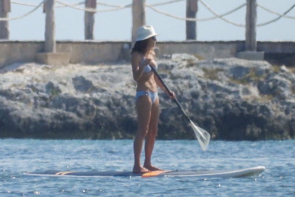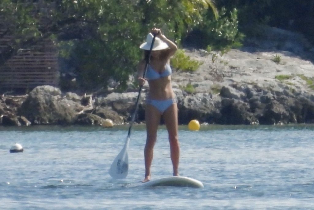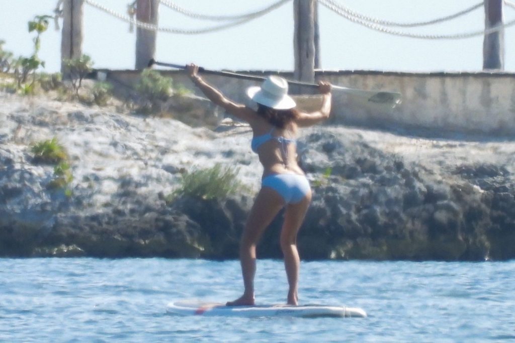 Bethenny Frankel termine 2019 avec un entraînement en paddle board à Cancun, 01/01/2020. La star de la télé-réalité et entrepreneure a montré sa silhouette athlétique dans un bikini bleu clair tout en profitant de vacances avec son partenaire Paul Bernon et sa fille Bryn Hoppy.