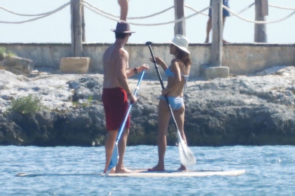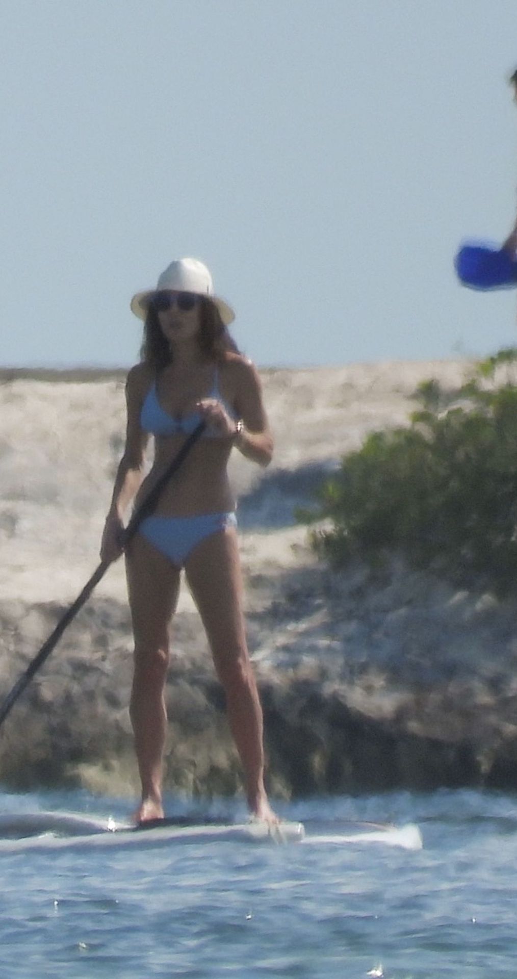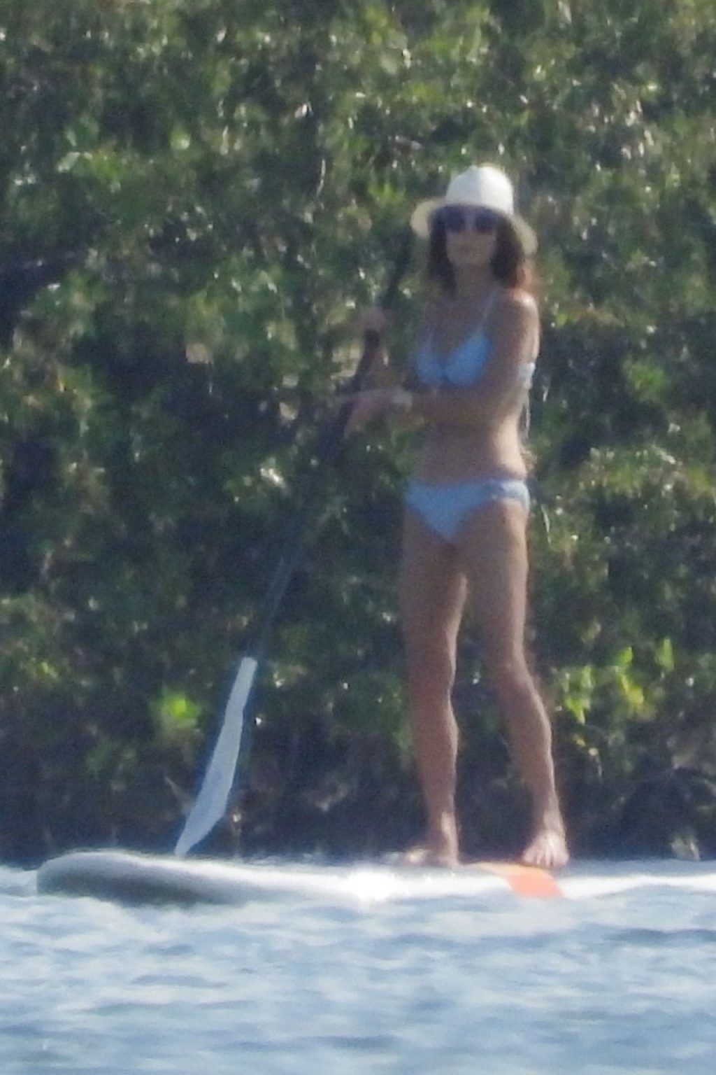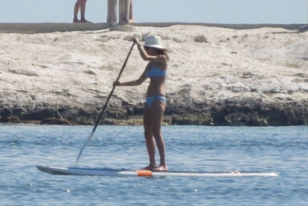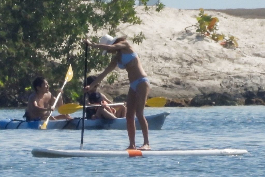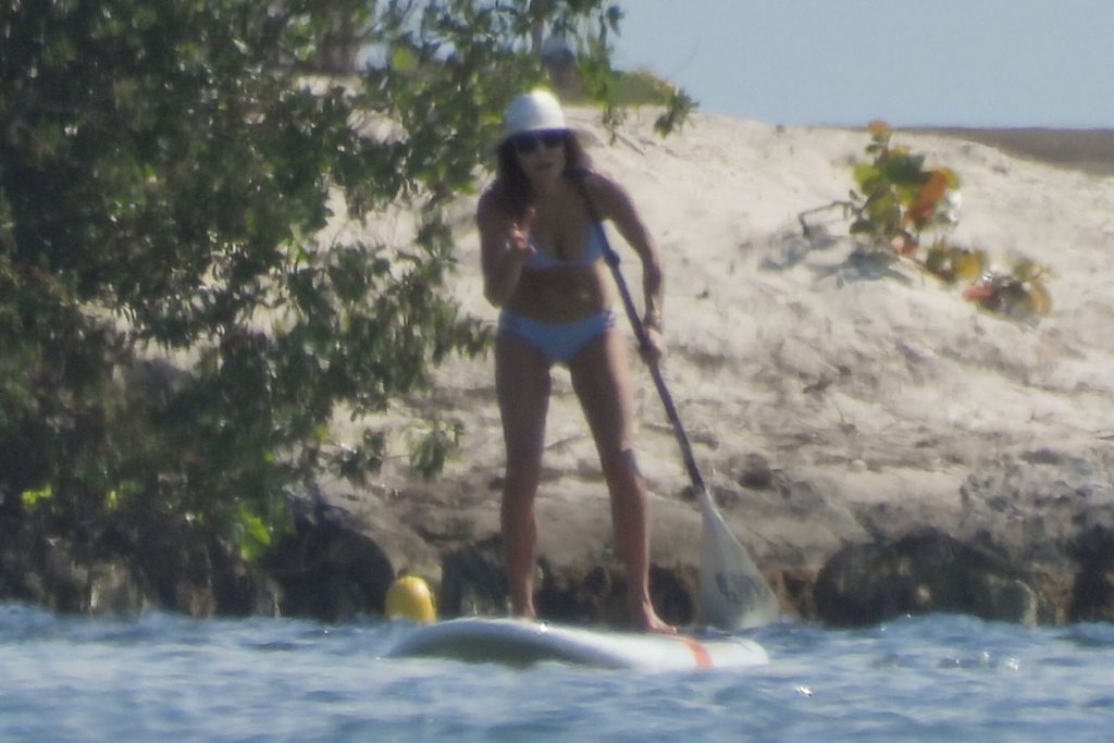 Bethenny Frankel termine 2019 avec un entraînement en paddle board à Cancun, 01/01/2020. La star de la télé-réalité et entrepreneure a montré sa silhouette athlétique dans un bikini bleu clair tout en profitant de vacances avec son partenaire Paul Bernon et sa fille Bryn Hoppy.