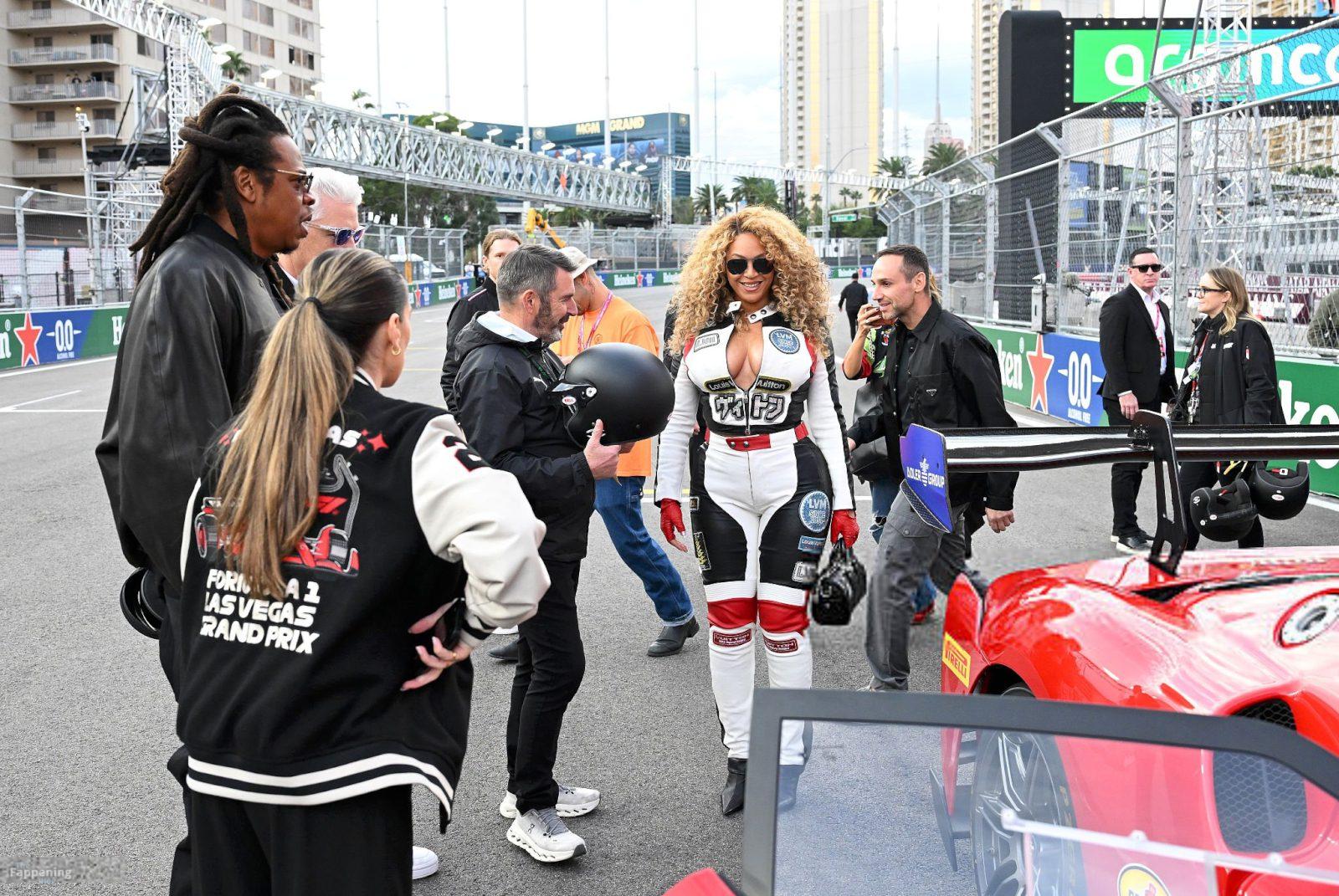 Les énormes seins de Beyoncé débordent d’une combinaison de course moulante à moitié dézippée lors de la journée de course du Grand Prix de Las Vegas 2025 à Las Vegas.