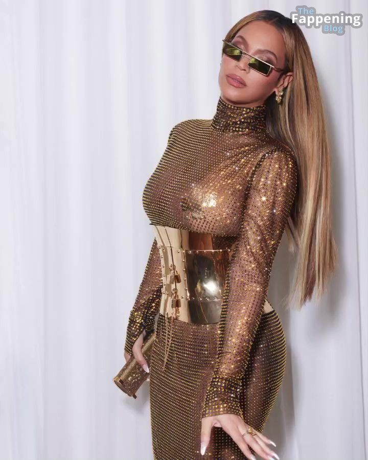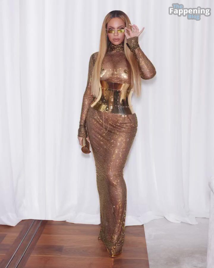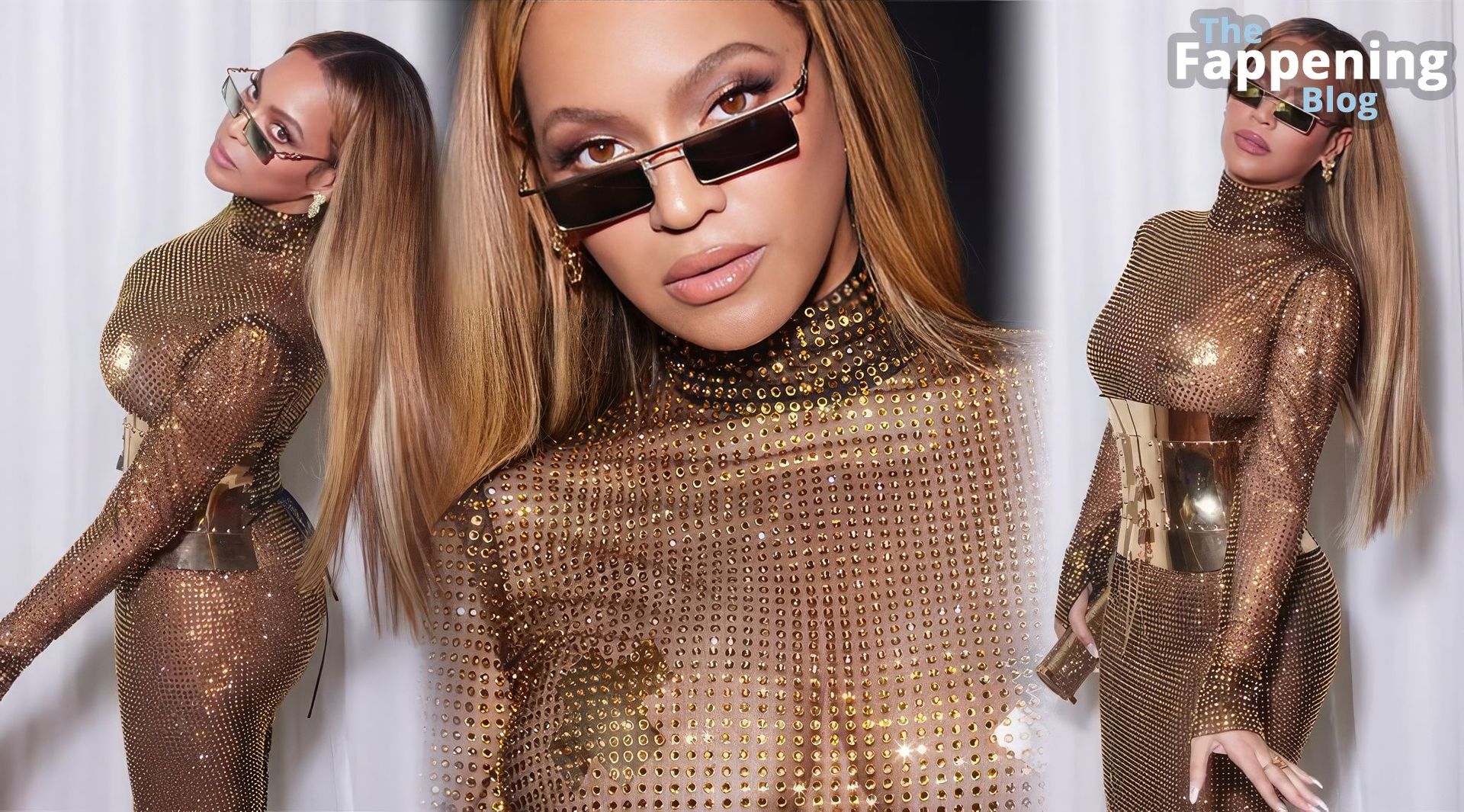 Beyoncé affiche ses courbes dans une robe dorée transparente (12 photos)